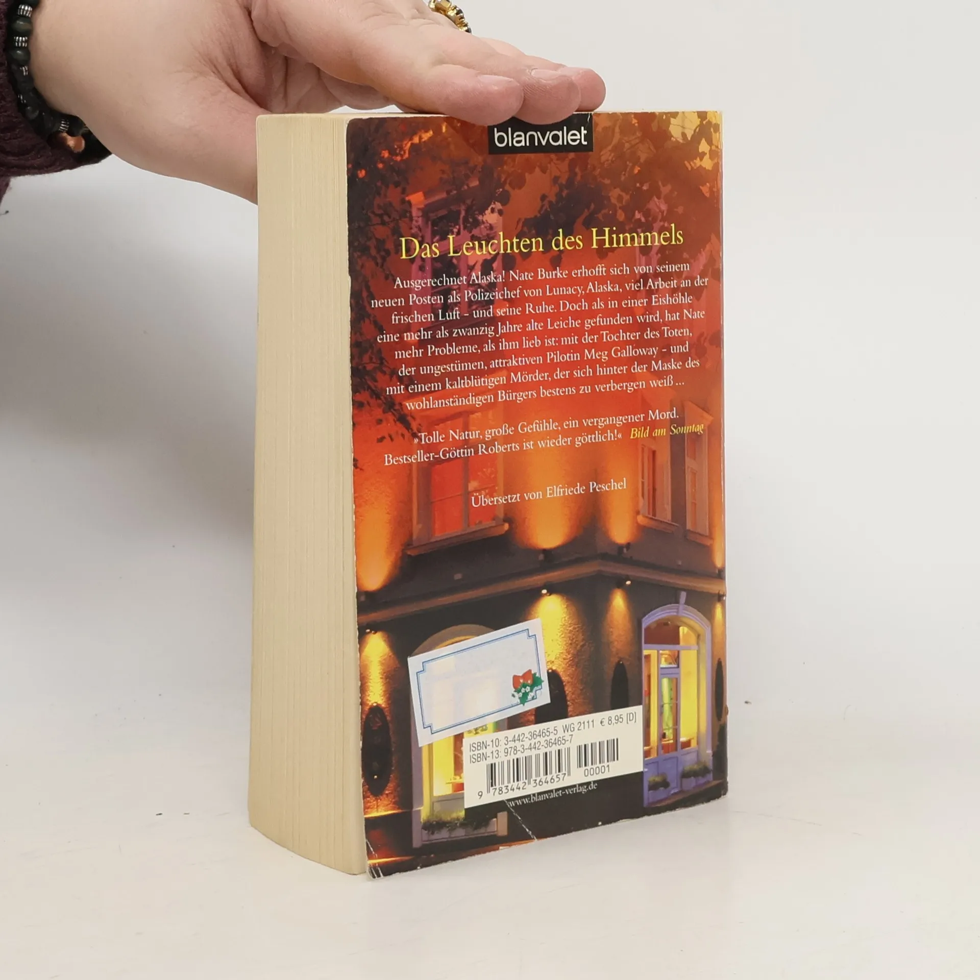 Spannend und romantisch – Nora Roberts in Höchstform! Ausgerechnet Alaska! Nate Burke erhofft sich von seinem neuen Posten als Polizeichef von Lunacy, Alaska, viel Arbeit an der frischen Luft – und seine Ruhe. Doch als in einer Eishöhle eine mehr als zwanzig Jahre alte Leiche gefunden wird, hat Nate mehr Probleme, als ihm lieb ist: mit der Tochter des Toten, der ungestümen, attraktiven Pilotin Meg Galloway – und mit einem kaltblütigen Mörder, der sich hinter der Maske des wohlanständigen Bürgers bestens zu verbergen weiß … „Das Leuchten des Himmels“ ist glänzender Spannungsroman und fesselnde Liebesgeschichte zugleich – angesiedelt vor der faszinierenden Kulisse Alaskas.