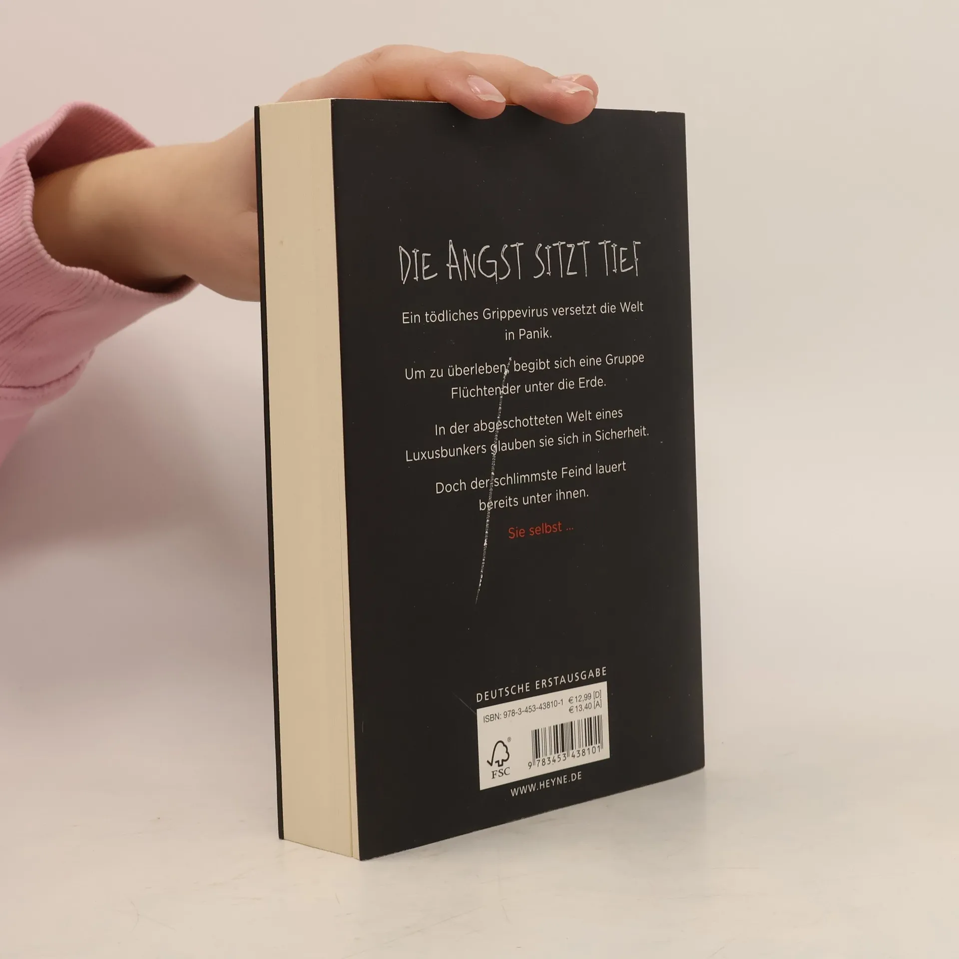 Wie tief sitzt deine Angst? Ein tödliches Grippevirus grassiert in den USA. Während Chaos um sich greift, flieht eine Gruppe ganz unterschiedlicher Menschen in einen unterirdischen Luxusbunker – das Sanctum –, ihre eigene, sich selbst versorgende Welt. Doch schon bald befeuern Abschottung und Enge erste Spannungen unter den Bewohnern. Als der Erbauer des Bunkers tot aufgefunden wird, bricht Panik aus. Mit ihm ist der Code zum Öffnen der Türen verloren. Der Sauerstoff wird knapp. Die Wasservorräte schwinden. Der Kampf ums Überleben beginnt.