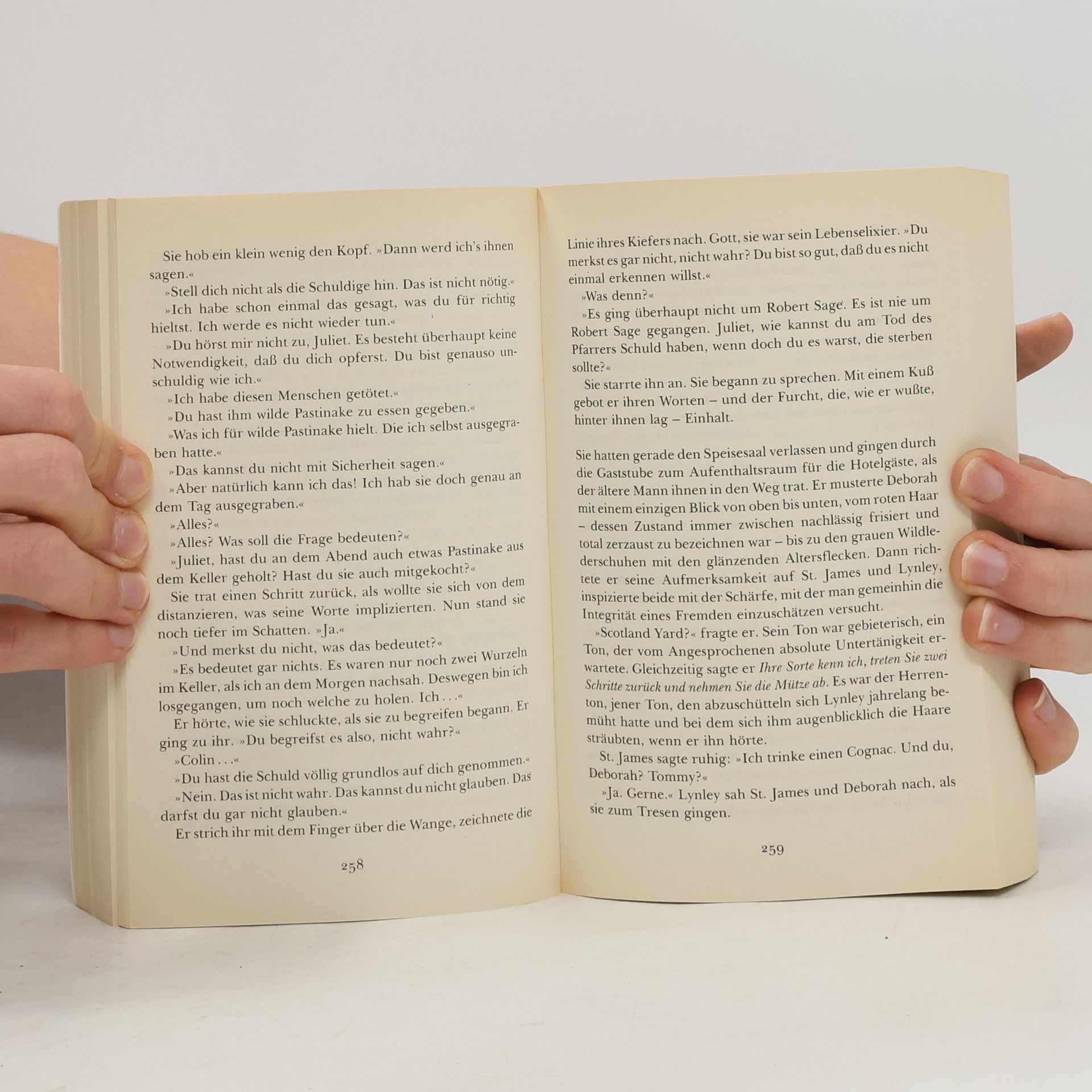 Deborah und Simon St. James glauben nicht an einen Unfall, als der Pfarrer von Winslough stirbt. Gemeinsam mit Inspektor Lynley beginnen sie zu ermitteln. Immer tiefer dringen sie in die sozialen Verstrickungen des Dorfes und die Vergangenheit seiner Bewohner ein. Die Wahrheit, die zutage tritt, läßt alle Beteiligten verstummen, denn plötzlich wird ihnen bewußt, daß die Grenze zwischen liebevoller Aufopferung und zerstörerischem Egoismus beängstigend dünn ist.