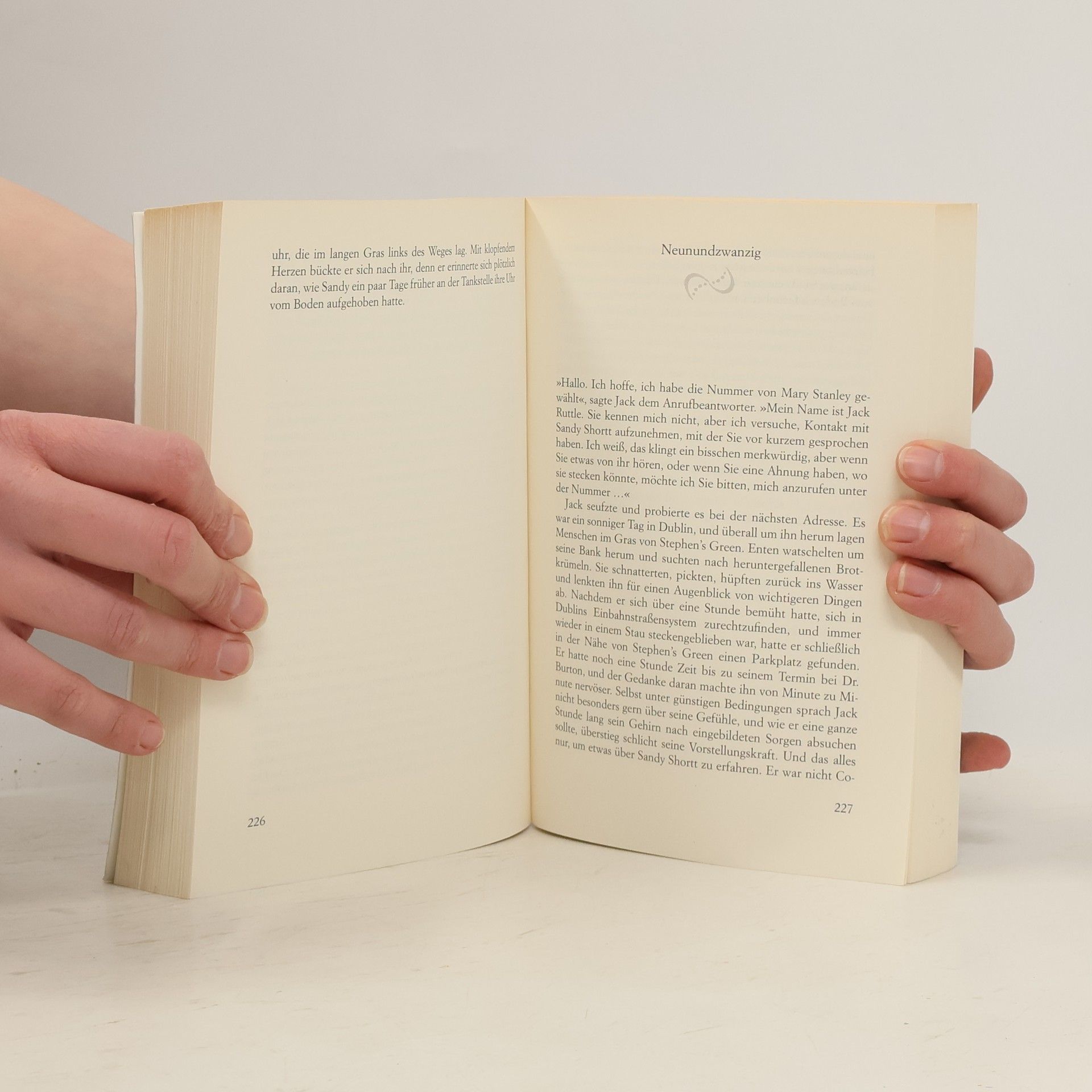 Als Sandy Shortt zehn Jahre alt ist, verschwindet ein Mädchen aus ihrer Klasse. Seit dieser Zeit sucht sie leidenschaftlich nach allem, was vermisst wird: nach Socken, Schlüsseln und später auch nach Menschen. In ihrer Suchagentur macht sie Angehörigen Mut, denn sie gibt niemals auf. Doch als Sandy den Auftrag bekommt, den Bruder von Jack Ruttle wiederzufinden, verirrt sie sich im Wald und verschwindet selbst – an einen geheimnisvollen Ort, den alle nur „Hier“ nennen. Dort begegnet sie Menschen, die sie schon lange gesucht hat, und auch jemandem, den sie fast vergessen hätte: sich selbst. Währenddessen macht sich Jack auf die Suche nach Sandy ...