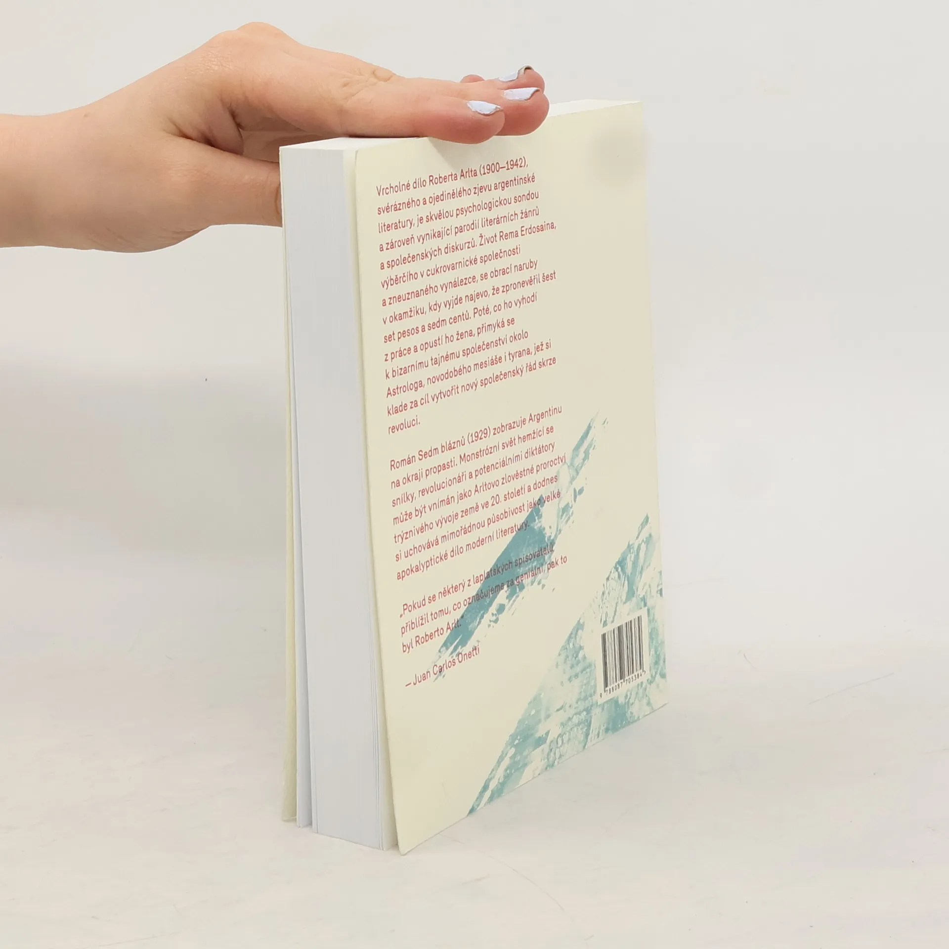 Vrcholné dílo Roberta Arlta (1900–1942), svérázného a ojedinělého zjevu argentinské literatury, je skvělou psychologickou sondou a zároveň vynikající parodií literárních žánrů a společenských diskurzů. Život Rema Erdosaina, výběrčího v cukrovarnické společnosti a zneuznaného vynálezce, se obrací naruby v okamžiku, kdy vyjde najevo, že zpronevěřil šest set pesos a sedm centů. Poté, co ho vyhodí z práce a opustí ho žena, přimyká se k bizarnímu tajnému společenství okolo Astrologa, novodobého mesiáše i tyrana, jež si klade za cíl vytvořit nový společenský řád skrze revoluci. Román Sedm bláznů (1929) zobrazuje Argentinu na okraji propasti. Monstrózní svět hemžící se snílky, revolucionáři a potenciálními diktátory může být vnímán jako Arltovo zlověstné proroctví trýznivého vývoje země ve 20. století a dodnes si uchovává mimořádnou působivost jako velké apokalyptické dílo moderní literatury. „Pokud se některý z laplatských spisovatelů přiblížil tomu, co označujeme za geniální, pak to byl Roberto Arlt.“ Juan Carlos Onetti