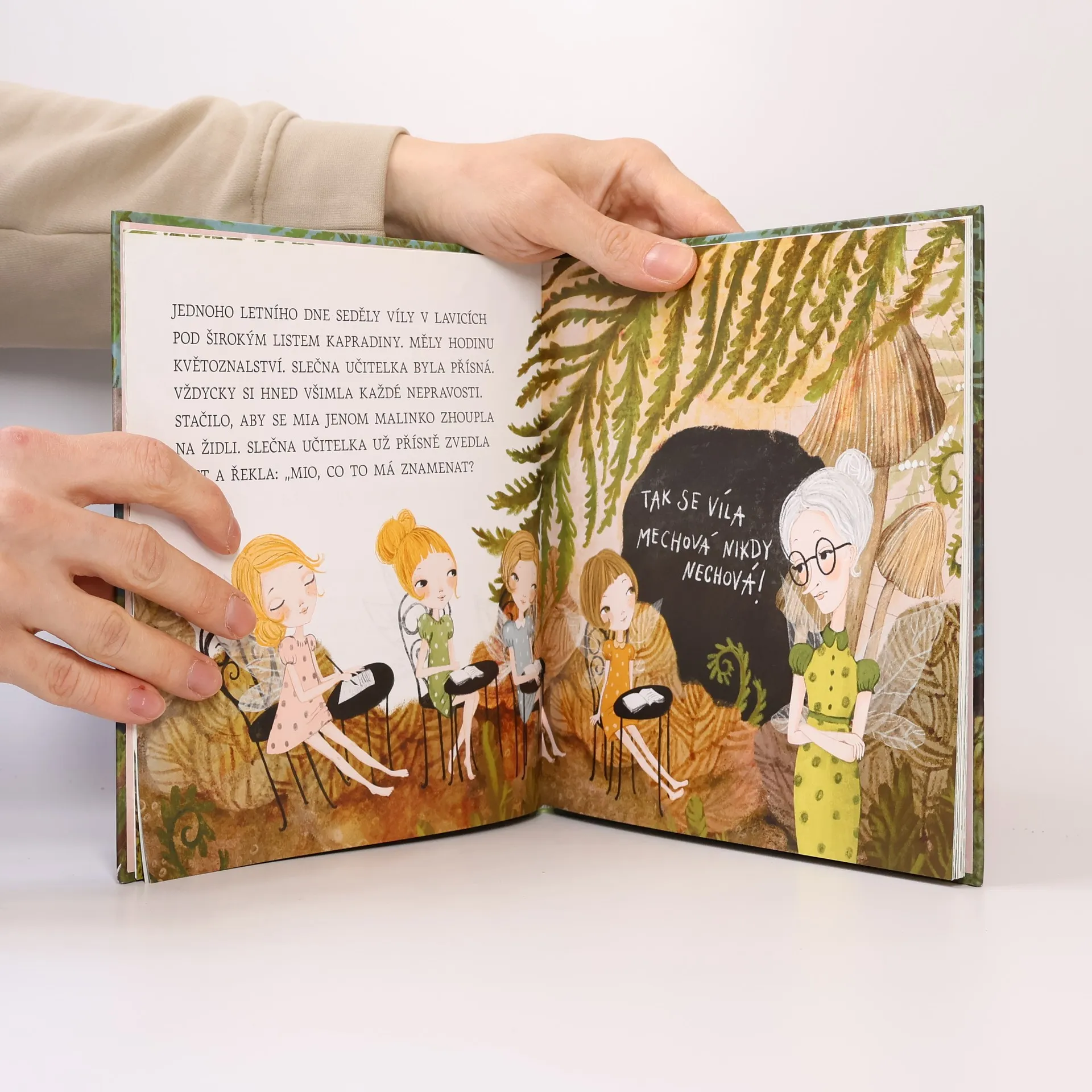 Mechové víly jsou docela maličké. Člověk je snadno přehlédne. Žijí v lese a pečují o mech. Aby se naučily, jak to v lese chodí, musí do školy. Stejně jako děti. A stejně jako děti ve škole občas zlobí a neposlouchají, co říká slečna učitelka. Najdou se dokonce i dny, kdy se jim do školy vůbec nechce! Jenže co se stane, když malá Mia nedává pozor a ještě se rozhodne zkrátit si cestu ze školy přes nebezpečnou slunečnou mýtinu? Milý a poučný příběh o tom, jak se víla mechová nikdy nechová, je určen začínajícím čtenářům od 5 let.