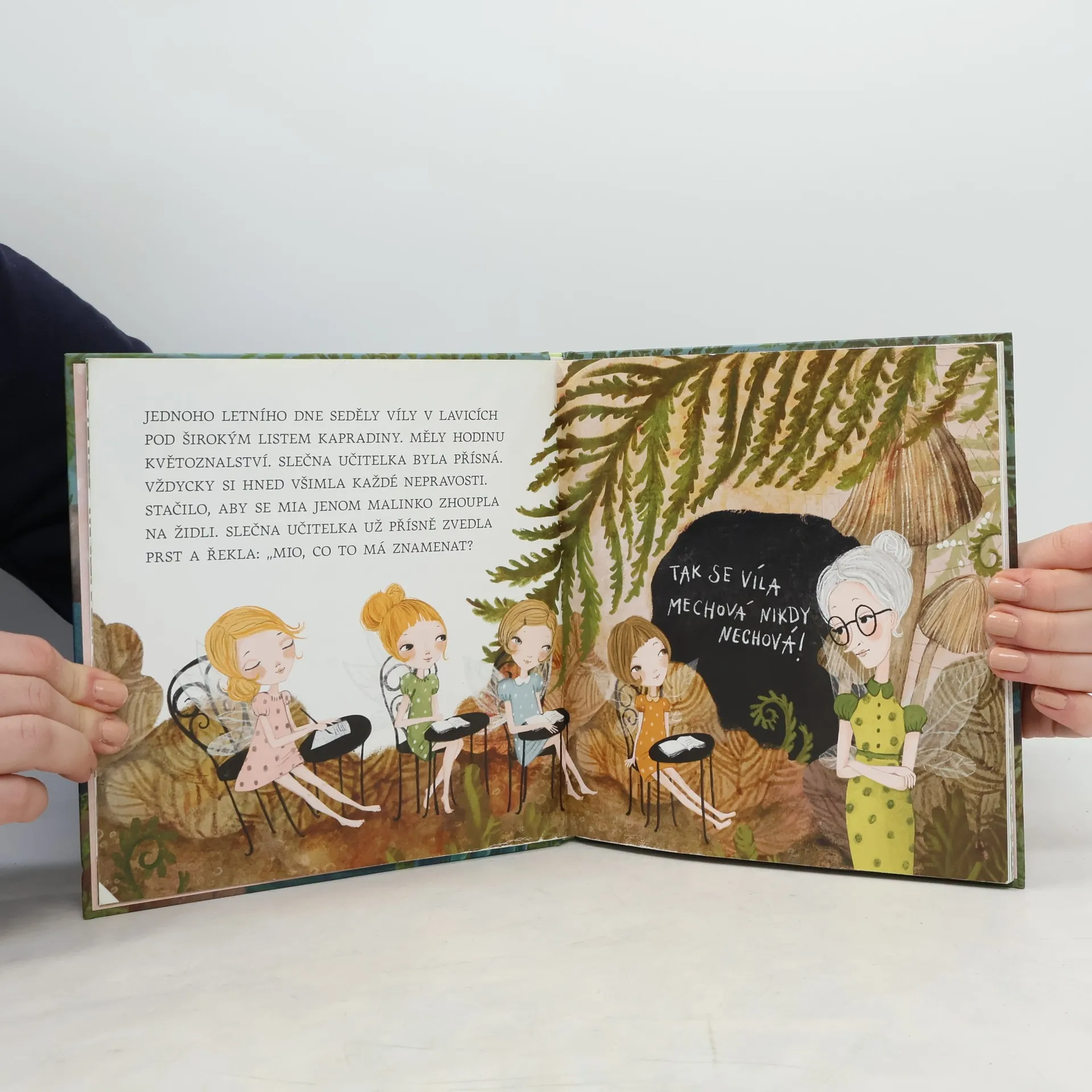 Mechové víly jsou docela maličké. Člověk je snadno přehlédne. Žijí v lese a pečují o mech. Aby se naučily, jak to v lese chodí, musí do školy. Stejně jako děti. A stejně jako děti ve škole občas zlobí a neposlouchají, co říká slečna učitelka. Najdou se dokonce i dny, kdy se jim do školy vůbec nechce! Jenže co se stane, když malá Mia nedává pozor a ještě se rozhodne zkrátit si cestu ze školy přes nebezpečnou slunečnou mýtinu? Milý a poučný příběh o tom, jak se víla mechová nikdy nechová, je určen začínajícím čtenářům od 5 let.