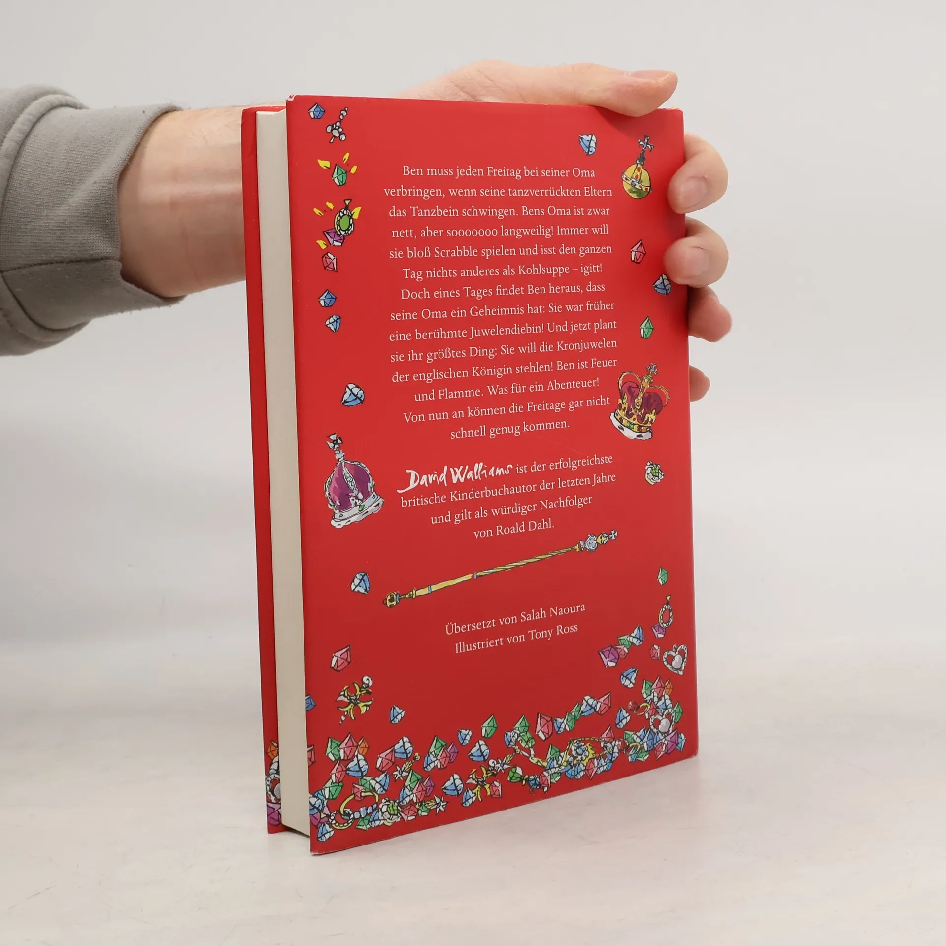 Ben muss jeden Freitag bei seiner Oma verbringen, wenn seine tanzverrückten Eltern das Tanzbein schwingen. Bens Oma ist zwar nett, aber sooooooo langweilig! Immer will sie bloß Scrabble spielen und isst den ganzen Tag nichts anderes als Kohlsuppe – igitt! Doch eines Tages findet Ben heraus, dass seine Oma ein Geheimnis hat: Sie war früher eine berühmte Juwelendiebin! Und jetzt plant sie ihr größtes Ding: Sie will die Kronjuwelen der englischen Königin stehlen! Ben ist Feuer und Flamme. Was für ein Abenteuer! Von nun an können die Freitage gar nicht schnell genug kommen. Ein Buch für Jungen und Mädchen ab 10