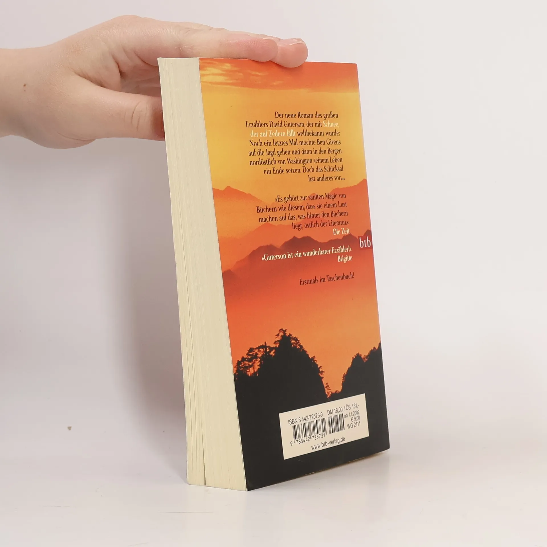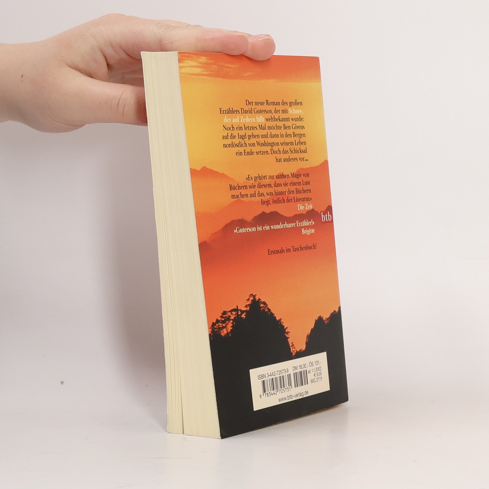 Millionen Menschen haben den Debütroman des bis dahin unbekannten David Guterson verschlungen. Mindestens ebenso viele haben die Verfilmung des preisgekrönten internationalen Bestseller gesehen. In seinem zweiten, ebenso faszinierenden Roman "Östlich der Berge" erzählt Guterson die Geschichte des krebskranken Herzchirugen Ben Givens, der noch einmal auf Jagd gehen und dann in den Bergen nordöstlich von Washington seinem Leben ein Ende setzen will. Doch das Schicksal hat anders vor. Er wird in einen Unfall verwickelt, begegnet Menschen in Not und erkennt schließlich, dass jeder Tag voller Leben ein Geschenk ist. ----------- The national bestseller by the author of Snow Falling on Cedars, now available in paperback