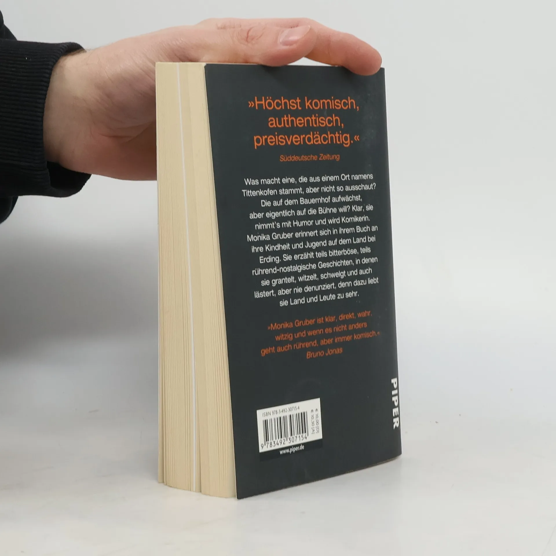 Was macht eine, die aus einem Ort namens Tittenkofen stammt, aber nicht so ausschaut? Die auf dem Bauernhof aufwächst, aber eigentlich auf die Bühne will? Klar, sie nimmt’s mit Humor und wird Komikerin. Monika Gruber erinnert sich in ihrem Buch an ihre Kindheit und Jugend auf dem Land bei Erding. Sie erzählt teils bitterböse, teils rührend-nostalgische Geschichten, in denen sie grantelt, witzelt, schwelgt und auch lästert, aber nie denunziert, denn dazu liebt sie Land und Leute zu sehr.