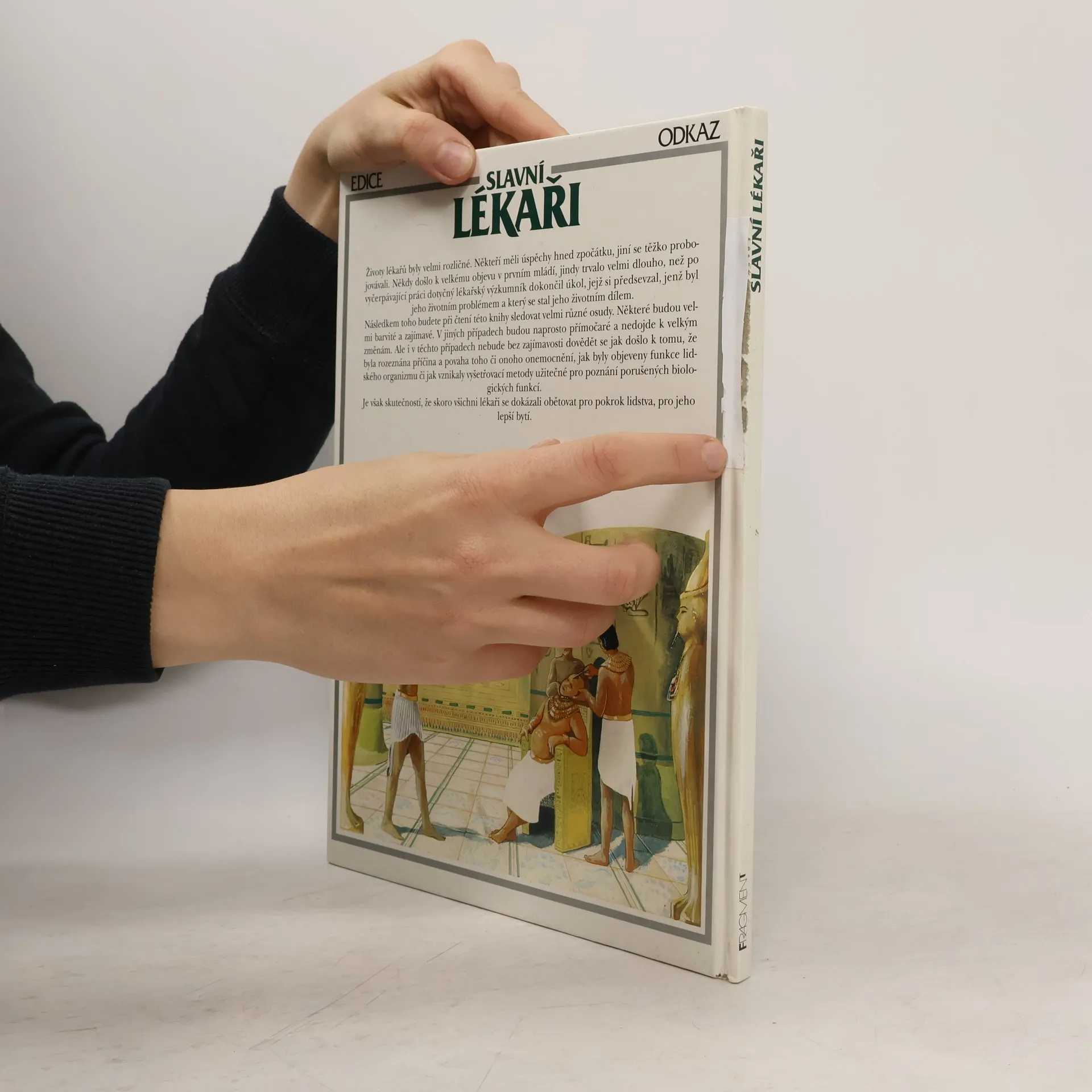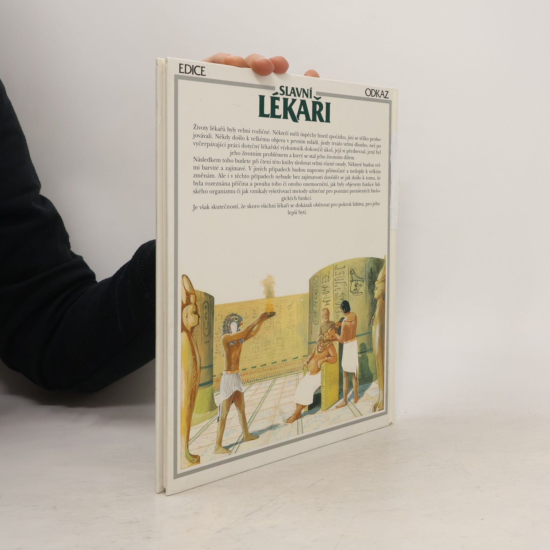 V knize se čtenáři seznámí s osudy nejznámějších lékařů dávné minulosti (počínaje Imhotepem a Hippokratem), přes plejádu lékařů-objevitelů 19. století, jakými byli např. L. Pasteur, W. K. Roentgen nebo I. P. Pavlov, až po slavné lékaře 20. století. Kromě osobností, které se zasloužily o významné lékařské objevy, jsou připomenuti i zakladatelé specializovaných oborů medicíny. Knihu uzavírá portrét slavného kardiochirurga Ch. Barnarda, který jako první na světě provedl transplantaci srdce. Z českých lékařů v knize naleznete životní příběh např. J. E. Purkyně, J. Thomayera nebo J. Janského.