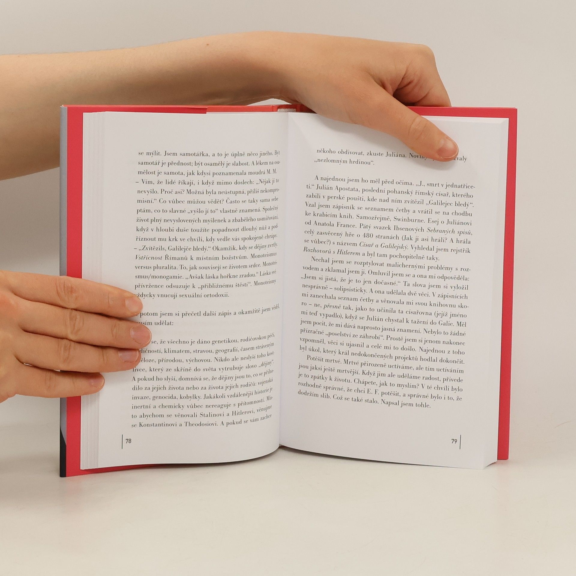 Jak už jsme u Juliana Barnese zvyklí, v jeho textech se elegantně propojuje román a esej. V tomto prozaickém díle jde o přátelský vztah mezi neúspěšným hercem a starší učitelkou Elizabeth Finchovou, která mu po své smrti zanechá knihovnu i poněkud záhadné osobní zápisky. Esejistická část se týká života Juliana Apostaty, římského císaře, který se pokusil zvrátit křesťanský vývoj své říše. Jakkoli pro Elizabeth Finchovou platí to, co pro předcházející autorova díla, dost možná je román jeho nejhlubším i nejradikálnějším textem, pokud jde o úvahy o historii a křesťanství či o koncepci alternativních dějin. Navíc jde o román vysoce aktuální, neboť v sobě odráží pochybnosti a roztříštěnost současného světa.