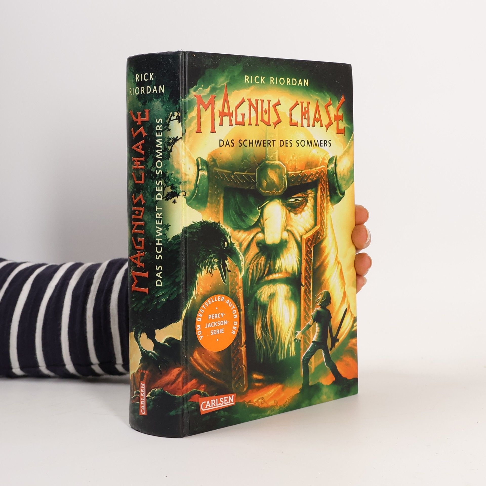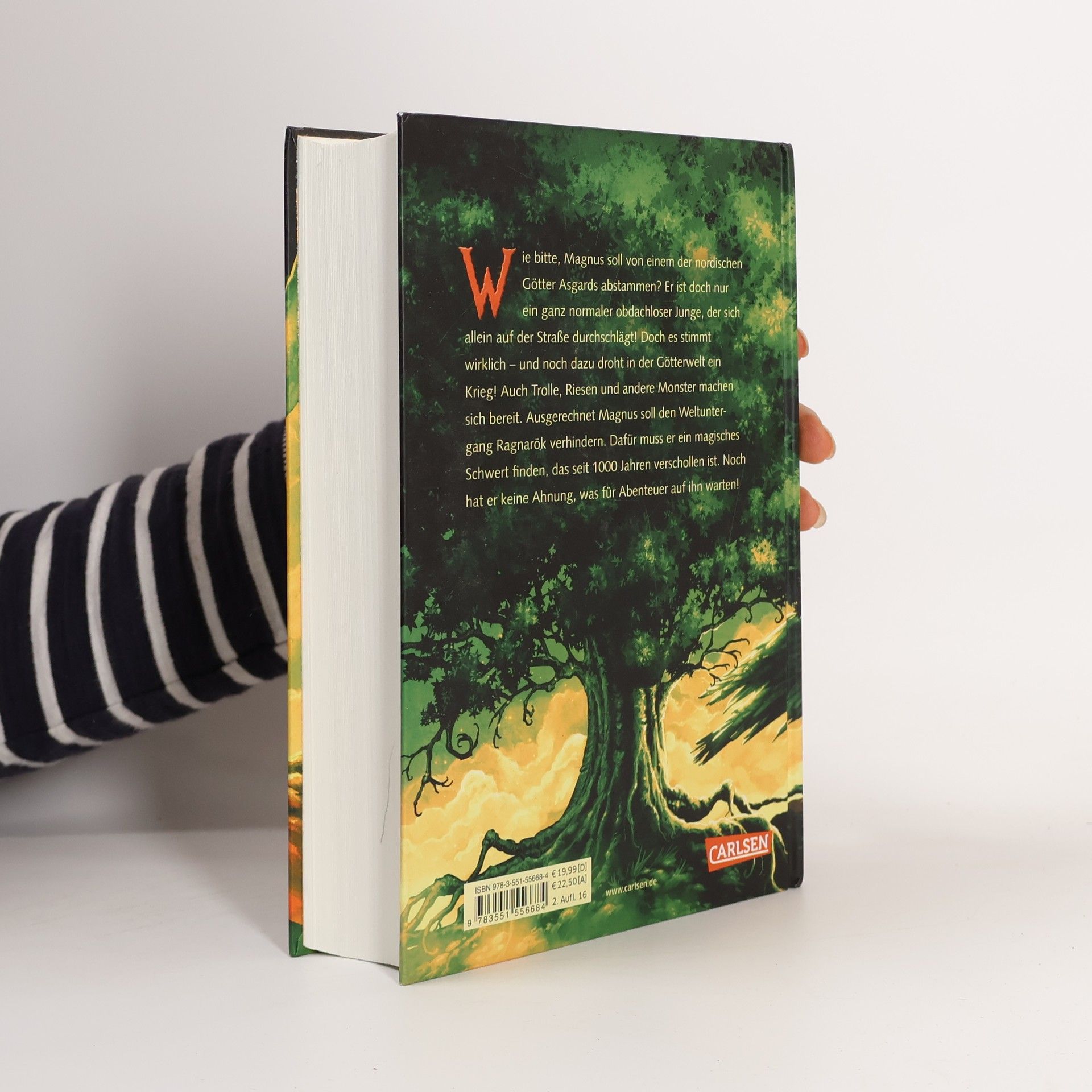 Nach dem Tod seiner Mutter lebt Magnus allein auf der Straße, ohne seinen Vater zu kennen. Als sein Onkel ihn findet, erfährt er, dass er von einem der nordischen Götter Asgards abstammt. Doch die Götter rüsten sich für den Krieg, während Trolle, Riesen und andere Monster sich ebenfalls vorbereiten. Magnus wird auserwählt, Ragnarök, den Weltuntergang, zu verhindern. Um dies zu erreichen, muss er ein seit 1000 Jahren verschwundenes magisches Schwert finden. Seine Reise erfordert zahlreiche Abenteuer, Kämpfe gegen gefährliche Kreaturen und Verhandlungen mit Göttern und Riesen. Zudem muss er seine göttlichen Fähigkeiten trainieren und lernen, Freundschaften zu schließen. In dieser Fantasy-Trilogie bringt der Autor alte Sagen und Legenden in moderne Geschichten und begeistert Leser*innen weltweit für die nordische Mythologie. Die Geschichte ist geprägt von Humor, Heldenmut und fantastischen Elementen, die sowohl junge Leser ab 12 Jahren als auch Fans der nordischen Mythologie fesseln. Feuerriesen, Walküren und Götter machen diese Erzählung zu einem packenden Erlebnis.