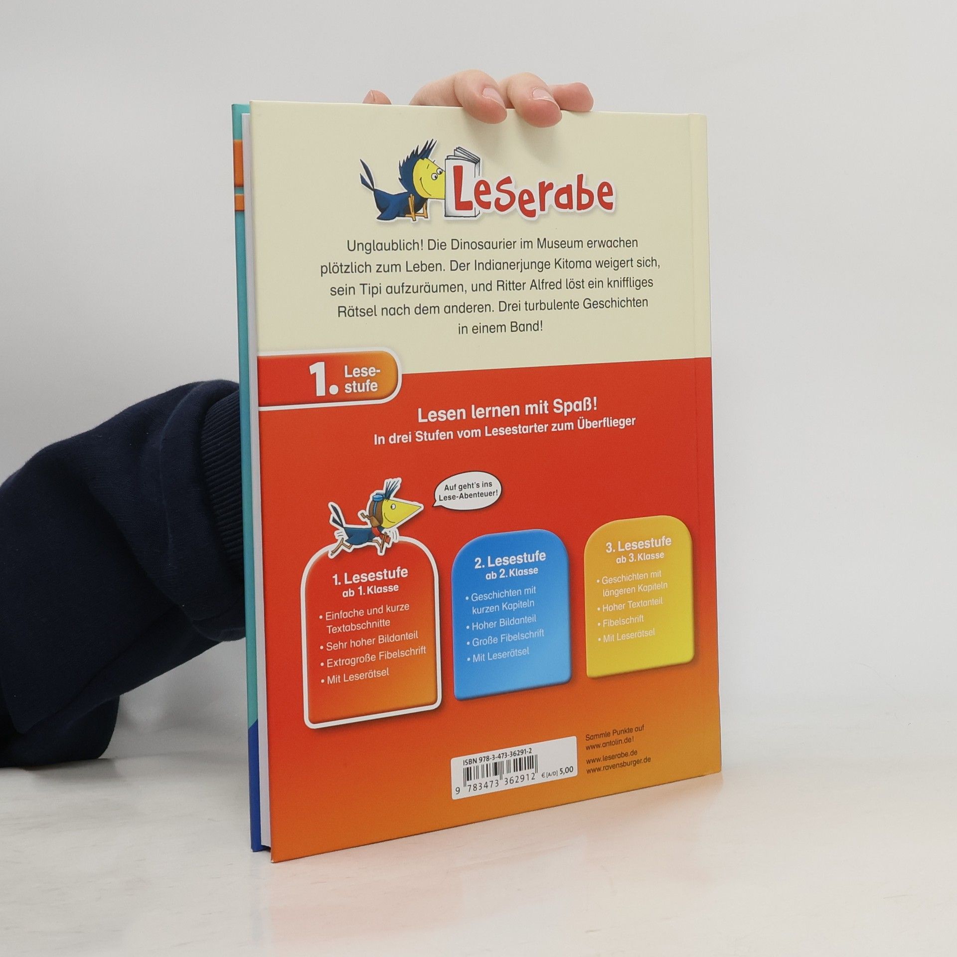 Die Dinosaurier im Museum erwachen plötzlich zum Leben, Ritter Alfred geht auf Schatzsuche und ein Indianerjunge entdeckt auf der Bärenjagd verdächtige Spuren. Drei abenteuerliche Geschichten in einem Band! Lesen lernen wie im Flug! Die Kinderbücher der Reihe Leserabe - 1. Lesestufe wurden mit Pädagogen entwickelt und richten sich an Leseanfänger ab der 1. Klasse. Kurze Texte in großer Fibelschrift sichern erste Leseerfolge und steigern die Lesekompetenz von Mädchen und Jungen ab 6 Jahren. Empfohlen von Stiftung Lesen, gelistet bei Antolin. Weitere Informationen auf leserabe. de.