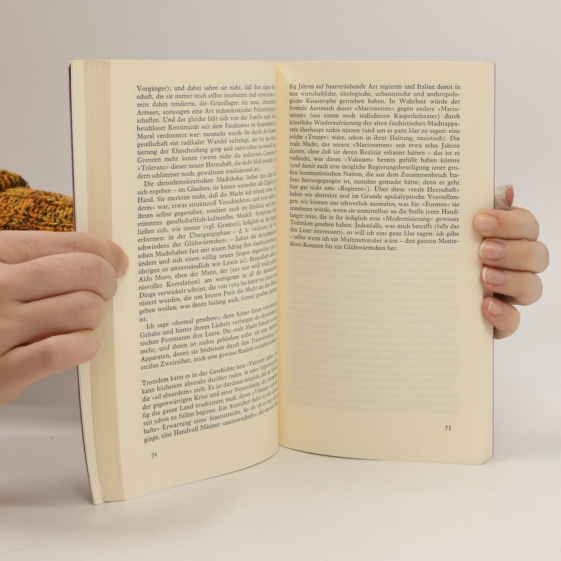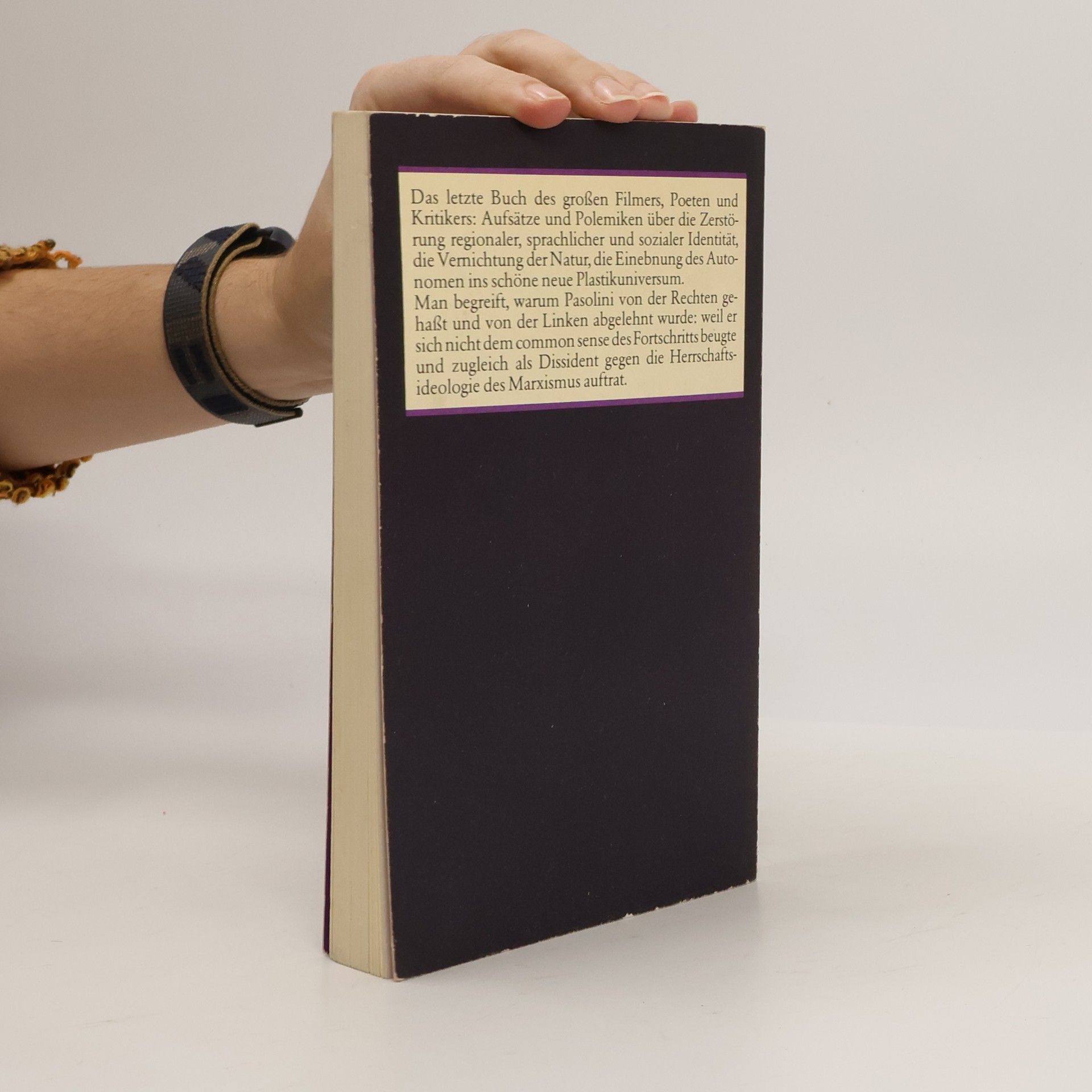 Als die Freibeuterschriften Pasolinis zum ersten Mal erschienen, waren sie – mit über 70.000 Exemplaren im ersten Jahr – nicht nur sehr erfolgreich, sondern bewirkten auch eine Wende in der Diskussion über den >Fortschritt<. Galt es bis dahin als ausgemacht, daß Demokratie und Massenkultur einander bedingten, so machte Pasolini auf die Kehrseite aufmerksam: auf die Radikalität eines Konsumismus, der sich als aufklärerisch tarnt, aber das Eigenartige nivelliert und das Einzelne zerstört. »Pasolinis Aufsätze können auch heute noch anregen, verschrecken, polarisieren – ihre andauernde Zauberkraft wird bleiben.« Henning Klüver, Süddeutsche Zeitung
