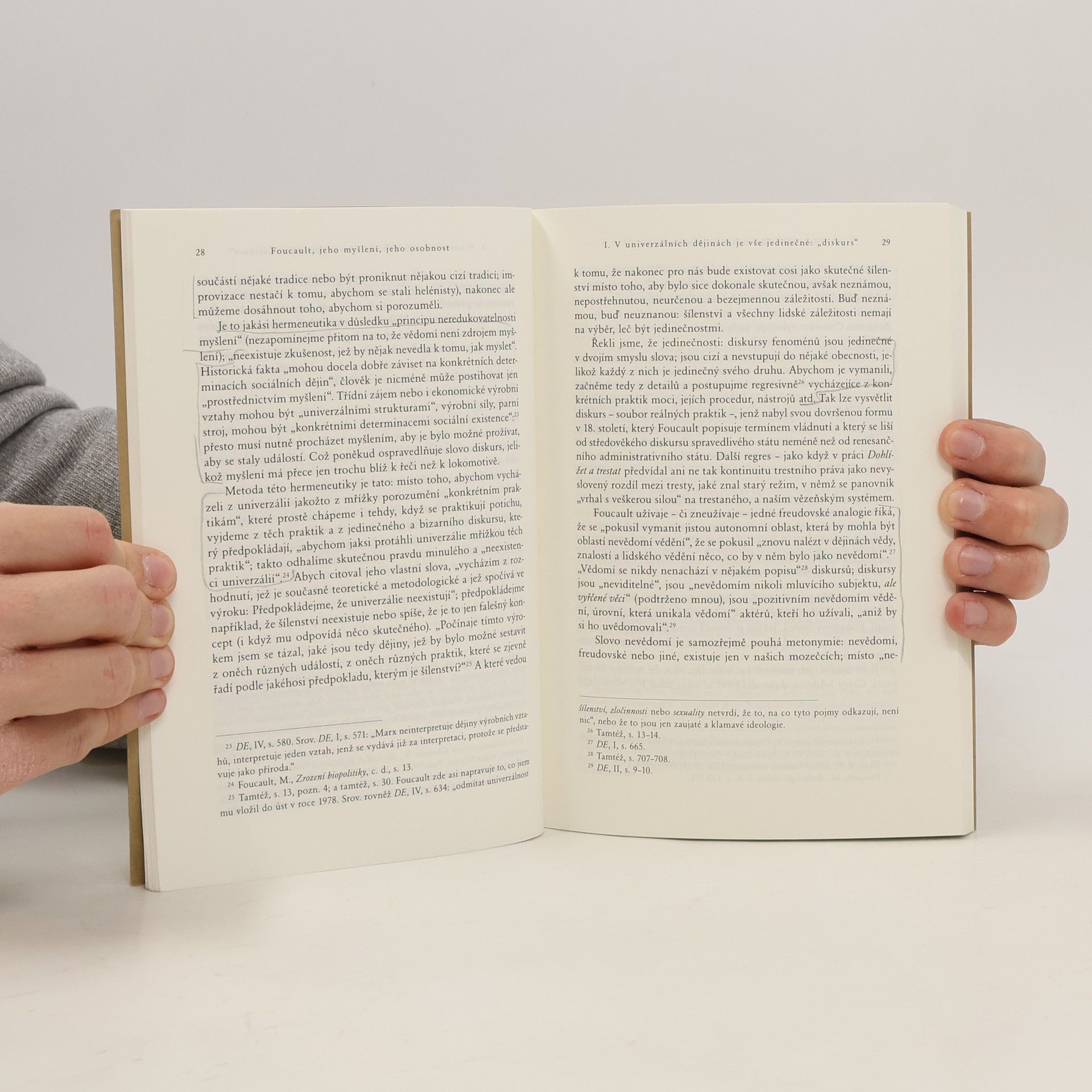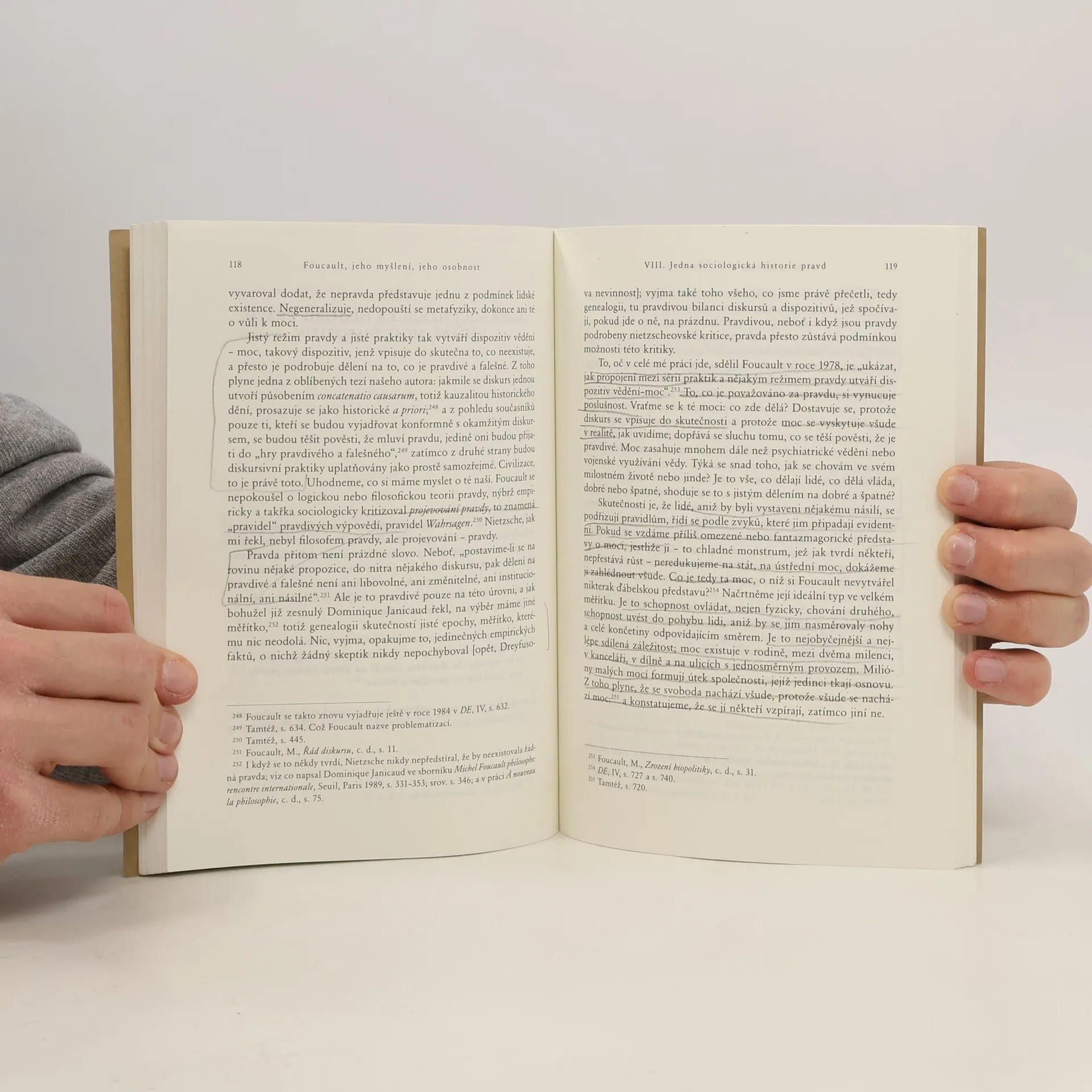 Autor knihy, francouzský historik antiky, je znám českými vydáními svých knih, mezi nimiž titul Jak se píšou dějiny obsahoval část věnovanou právě Michelu Foucaultovi. V této nové knize se Paul Veyne k Michelu Foucaultovi vrací, aby ho představil jako originálního skeptického myslitele, jenž nepřestává zkoumat „hry pravdy“ vlastní každé historické epoše. Veynova kniha je rovněž svědectvím o blízkém přátelství, které ho k Foucaultovi, tomuto „samuraji s ostrým mečem“, poutalo, a v neposlední řadě představuje vlastní Veynovu filosofii.