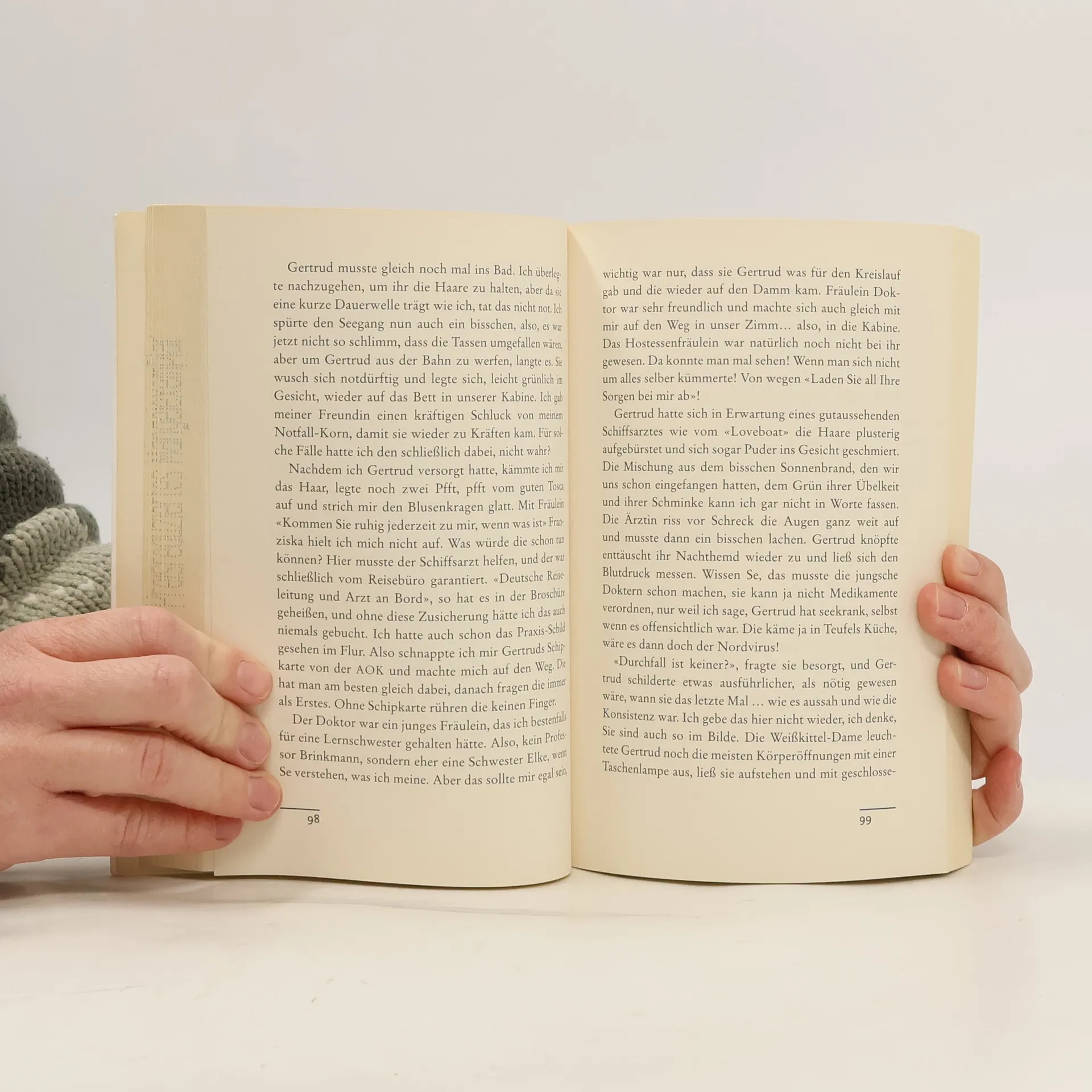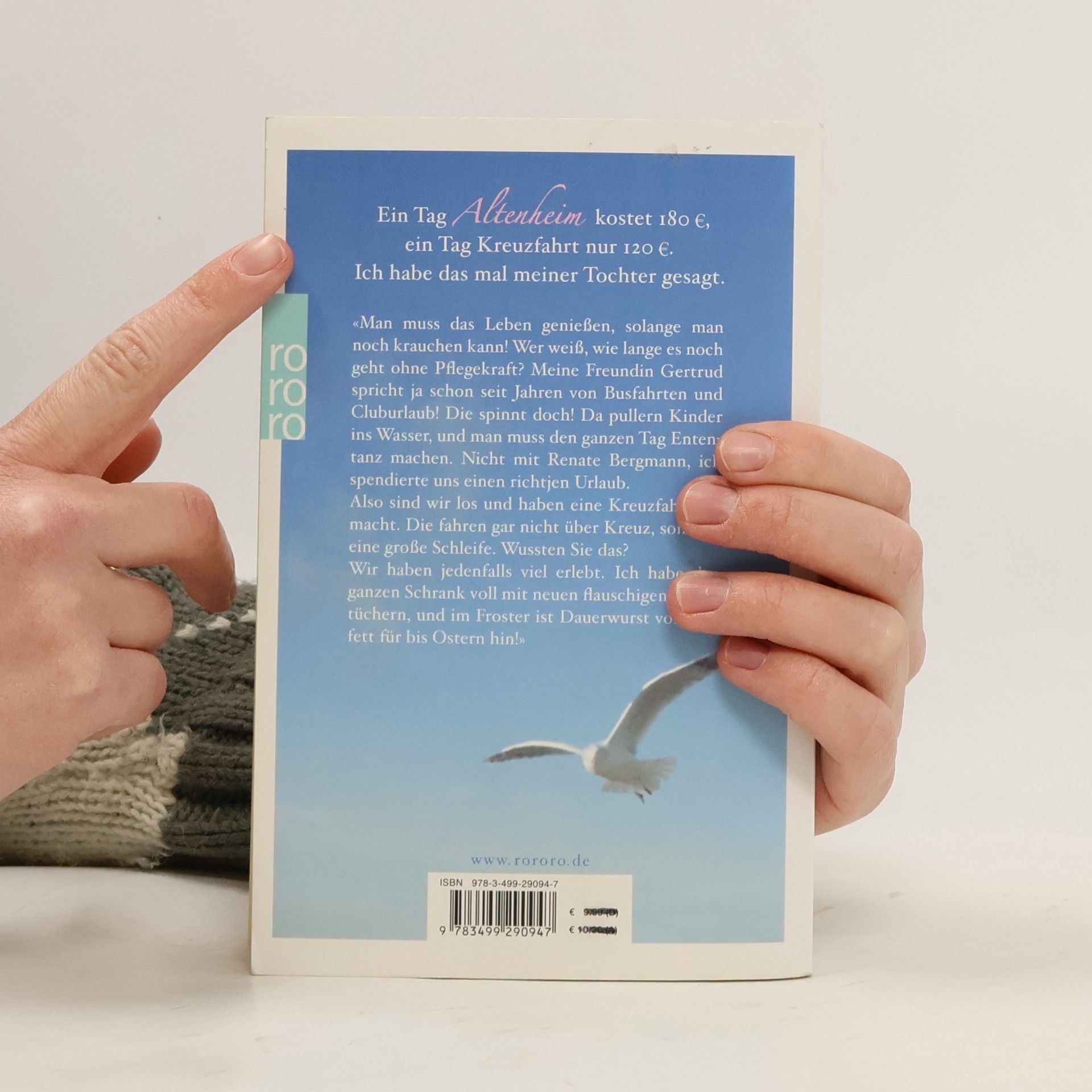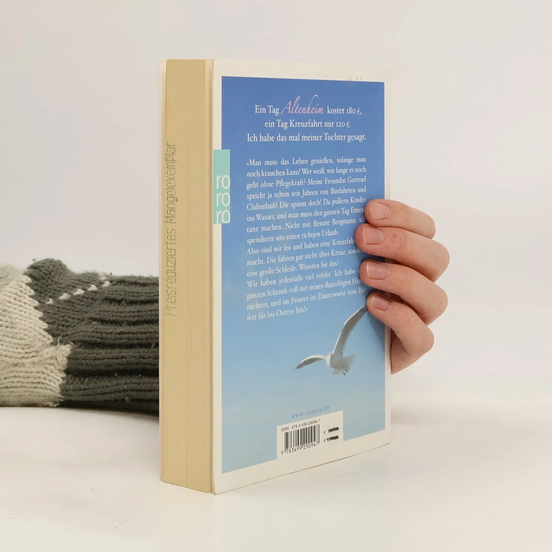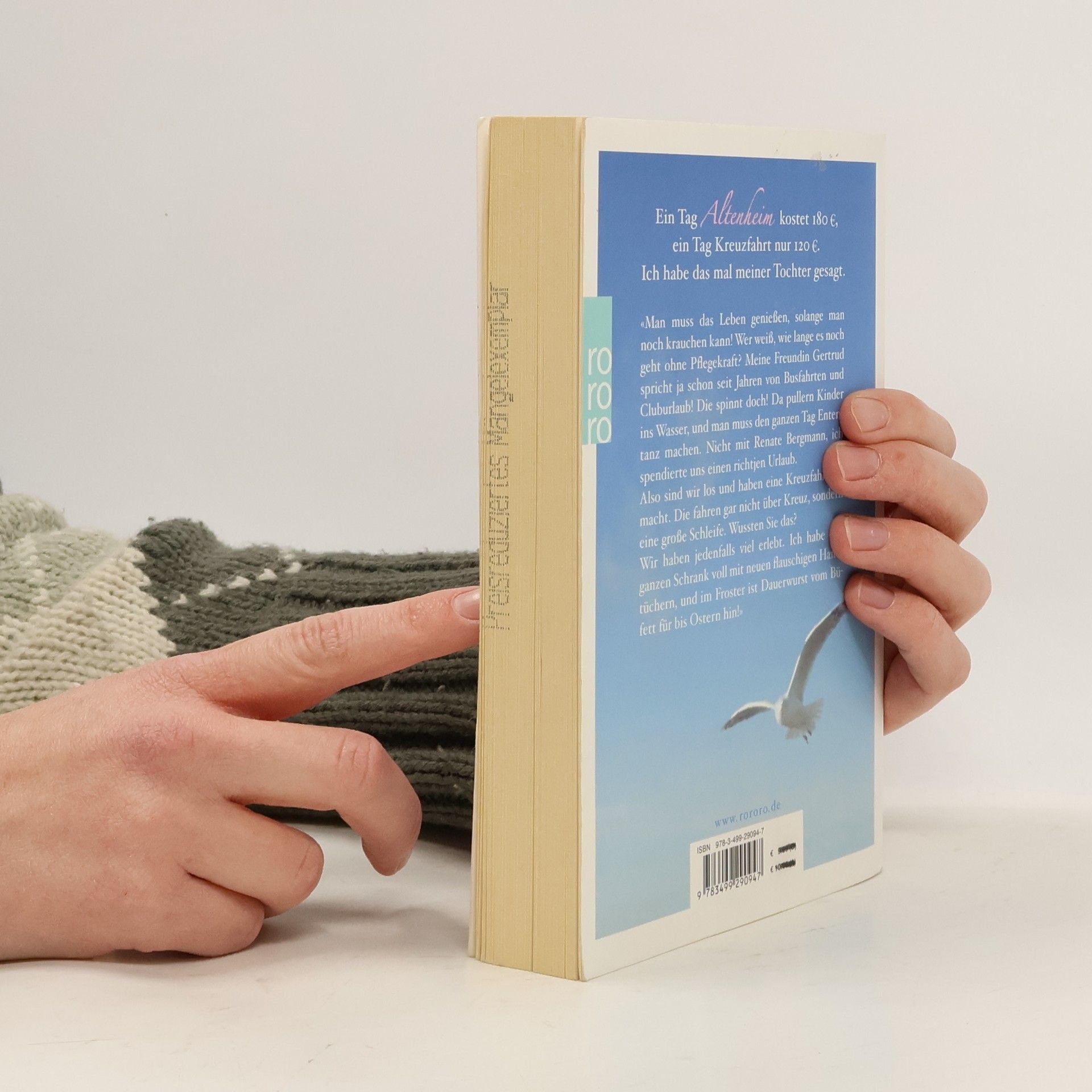 Ein Tag Altenheim kostet 180 €, ein Tag Kreuzfahrt nur 120 €. Ich habe das mal meiner Tochter gesagt.«Man muss das Leben genießen, solange man noch krauchen kann! Wer weiß, wie lange es noch geht ohne Pflegekraft? Meine Freundin Gertrud spricht ja schon seit Jahren von Busfahrten und Kluburlaub! Die spinnt doch! Da pullern Kinder ins Wasser und man muss den ganzen Tag Ententanz machen. Nicht mit Renate Bergmann, ich spendierte uns einen richtjen Urlaub.Also sind wir los und haben eine Kreuzfahrt gemacht. Die fahren gar nicht über Kreuz, sondern eine große Schleife. Wussten Sie das?Wir haben jedenfalls viel erlebt. Ich habe den ganzen Schrank voll mit neuen flauschigen Handtüchern, und im Froster ist Dauerwurst vom Büfett für bis Ostern hin!»