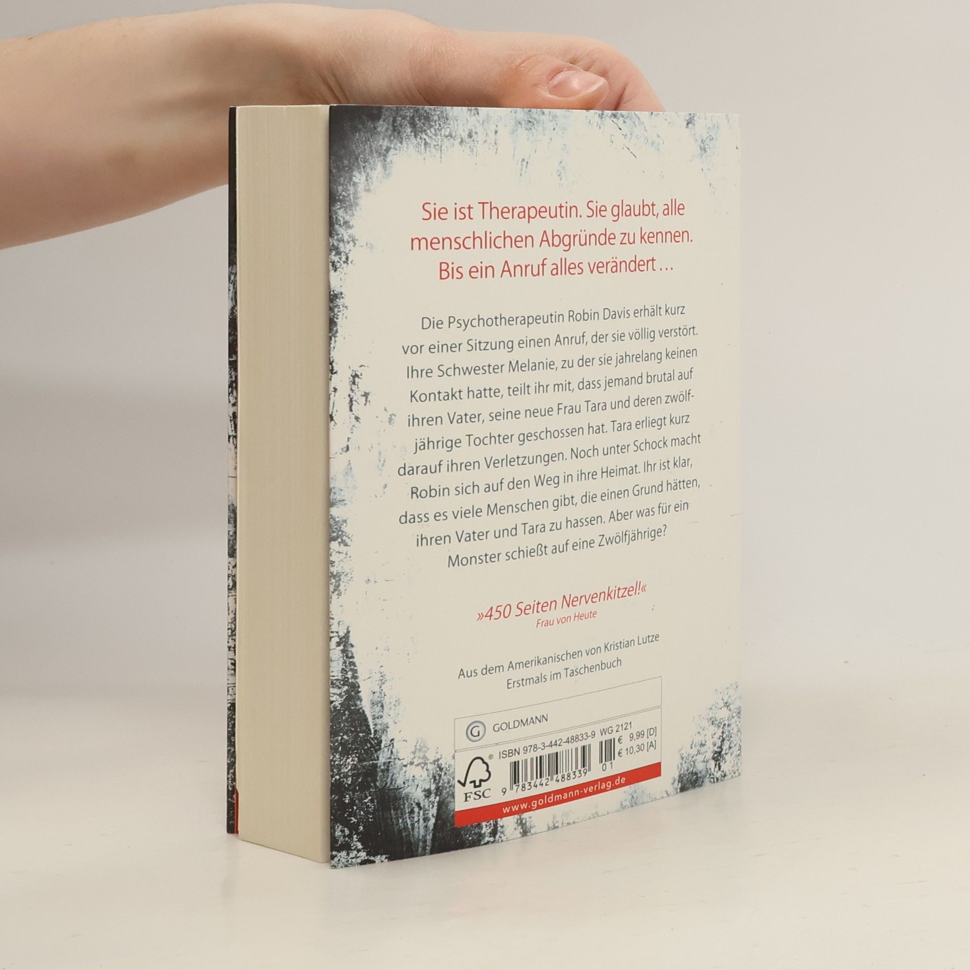 Die Psychotherapeutin Robin Davis erhält kurz vor einer Sitzung einen Anruf, der sie völlig aus der Fassung bringt. Ihre Schwester Melanie, zu der sie jahrelang keinen Kontakt hatte, teilt ihr mit, dass jemand brutal auf ihren Vater, seine neue Frau Tara und deren zwölfjährige Tochter geschossen hat. Tara erliegt kurz darauf ihren Verletzungen. Noch unter Schock macht Robin sich auf den Weg in ihren Heimatort. Ihr ist klar, dass es viele Menschen gibt, die einen Grund hätten, ihren Vater und Tara zu hassen – allen voran ihre eigene Familie. Aber was für ein Monster schießt auf eine Zwölfjährige?