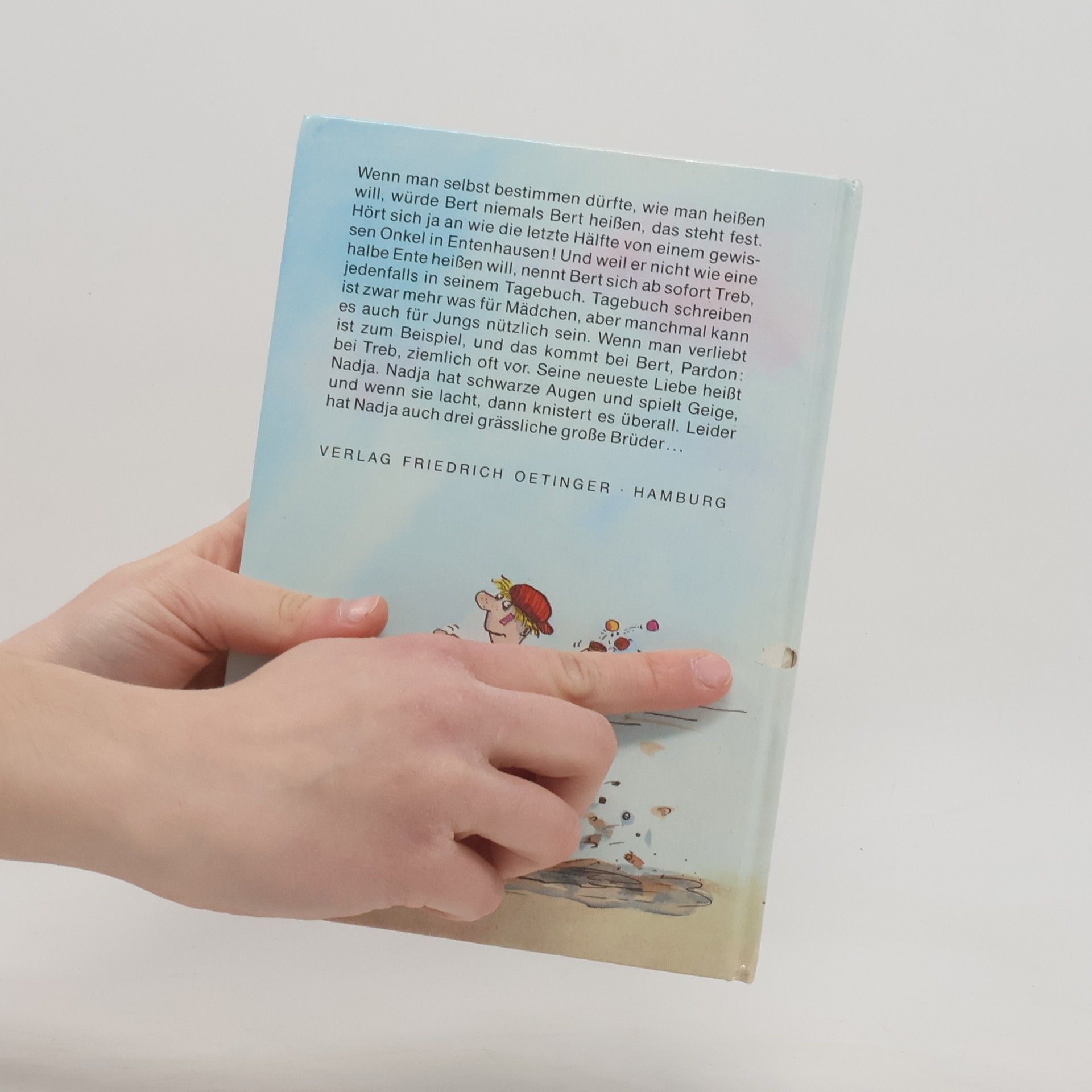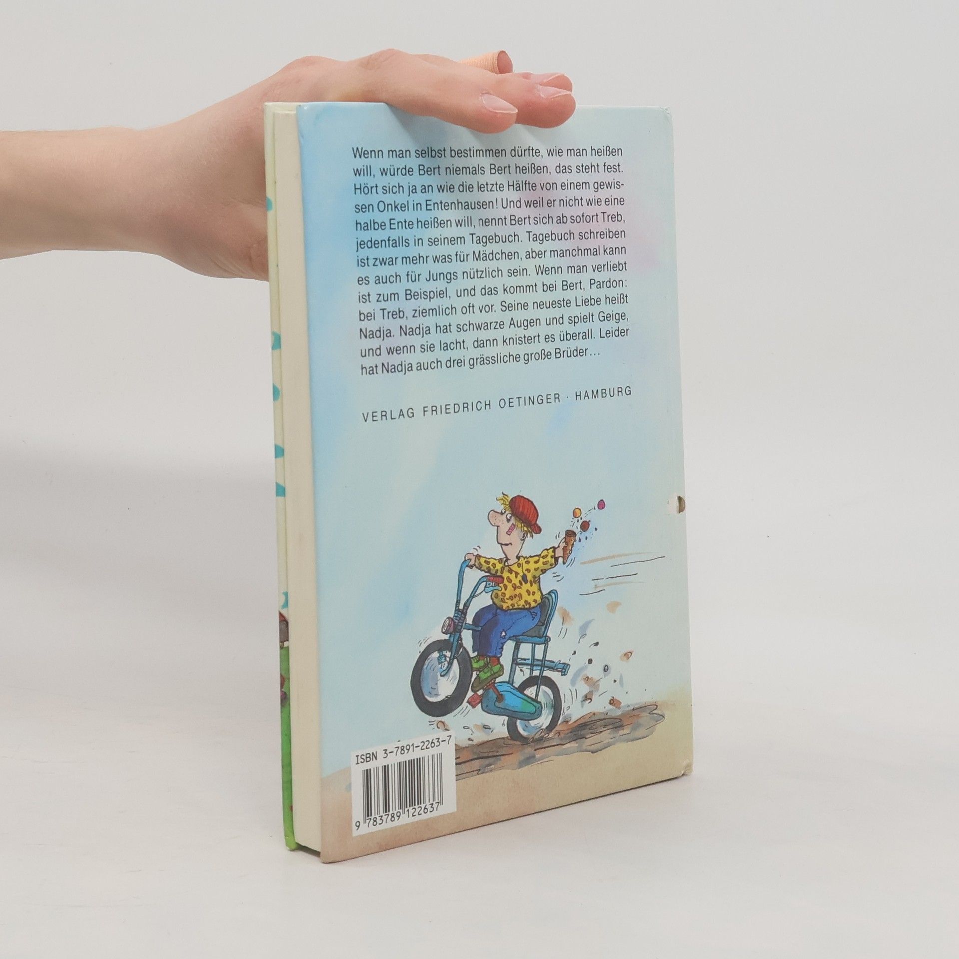 Wenn man selbst bestimmen dürfte, wie man heißen will, würde Bert niemals Bert heißen, das steht fest. Hört sich ja an wie die letzte Hälfte von einem gewissen Onkel in Entenhausen! Und weil er nicht wie eine halbe Ente heißen will, nennt Bert sich ab sofort Treb, jedenfalls in seinem Tagebuch. Tagebuch schreiben ist zwar mehr was für Mädchen, aber manchmal kann es auch für Jungs nützlich sein. Wenn man verliebt ist zum Beispiel, und das kommt bei Bert, Pardon: bei Treb, ziemlich oft vor. Seine neueste Liebe heißt Nadja. Nadja hat schwarze Augen und spielt Geige, und wenn sie lacht, dann knistert es überall. Leider hat Nadja auch drei grässliche große Brüder...