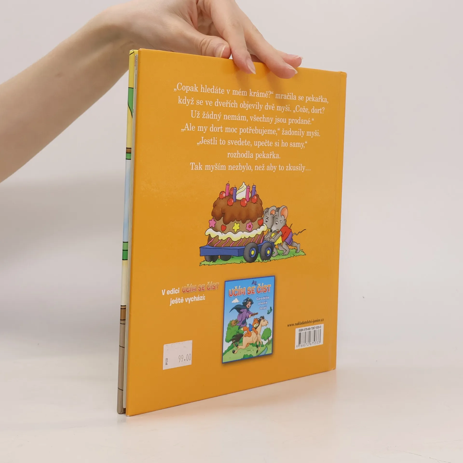 Copak hledáte v mém krámě? mračila se pekařka, když se ve dveřích objevily dvě myši. Cože, dort? Už žádný nemám, všechny jsou prodané! Ale my dort moc potřebujeme, žadonily myši. Jestli to svedete, upečte si ho samy, rozhodla pekařka. Tak myším nezbylo, než aby to zkusily V edici Učím se číst vychází čtení pro začínající čtenáře.
