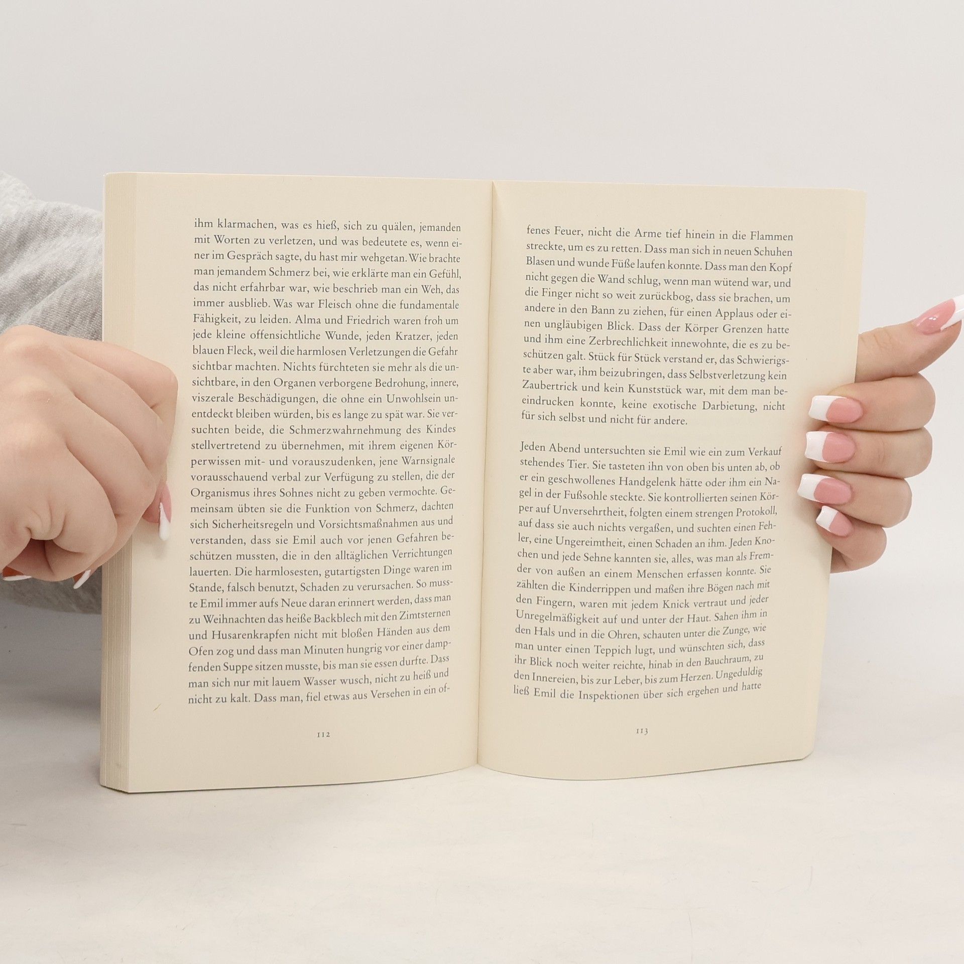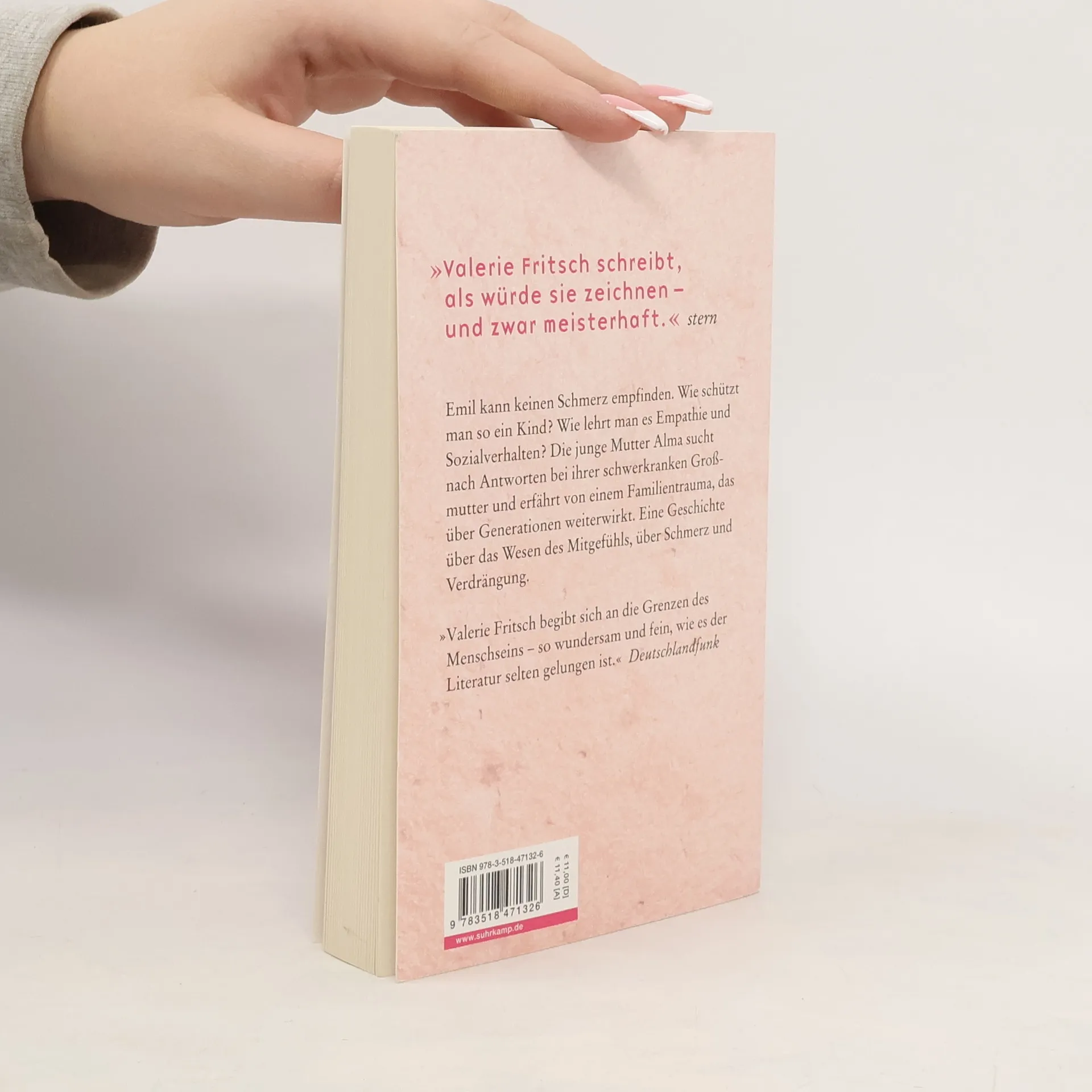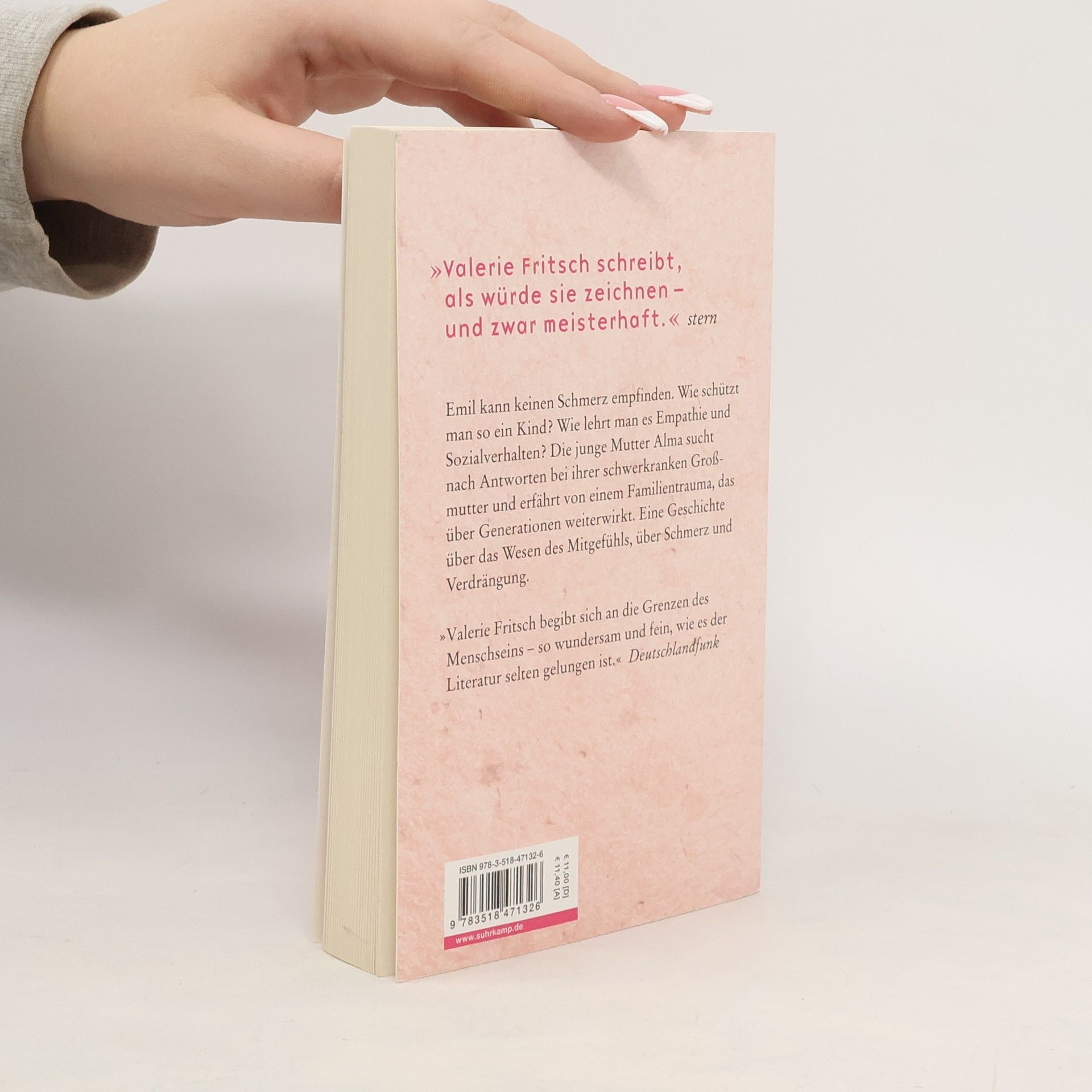 Wie wird ein Kind zu einem mitfühlenden sozialen Wesen, wenn es die Verwundbarkeit nicht kennt? Wenn es nicht versteht, wie sehr etwas wehtun kann? In eindringlichen Bildern erzählt Valerie Fritsch von einem Trauma, das über die Generationen weiterwirkt. Alma und Friedrich bekommen ein Kind, das keinen Schmerz empfinden kann. In ständiger Sorge um ihren Jungen kontrolliert Alma unaufhörlich seine körperliche Unversehrtheit. Halt findet Alma bei ihrer hochbetagten Großmutter, die nach lebenslangem Schweigen zu erzählen beginnt: vom Krieg, von Flucht, Hunger und Entbehrungen. Mit dem Kind auf dem Schoß, das keinen Schmerz kennt, sitzt Alma am Bett der alten Frau, die sich nichts mehr wünscht, als ihren Schmerz zu überwinden. Und in den Geschichten der Großmutter findet sie eine Erklärung für jene Gefühle der Schuld, der Ohnmacht und der Verlorenheit, die sie ihr Leben lang begleiten.