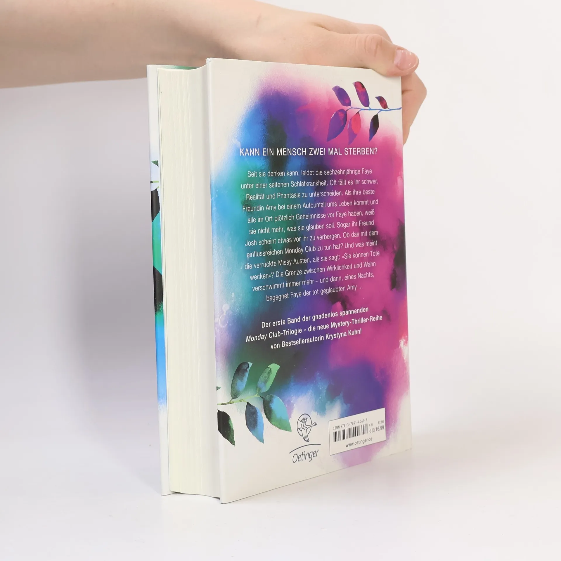 Kann ein Mensch zwei Mal sterben? Ein perfides Spiel um Wahn und Wahrheit! Bei der sechzehnjährigen Faye Mason wurde bereits in früher Kindheit idiopathische Insomnie diagnostiziert, eine seltene Schlafkrankheit. Die schlaflosen Nächte hinterlassen Spuren: Oft kann sie Wirklichkeit und Fantasie nicht unterscheiden. Da geschieht etwas Entsetzliches: Fayes beste Freundin Amy kommt bei einem Autounfall ums Leben. Doch wenig später begegnet sie der totgeglaubten Amy auf der Straße. Halluziniert sie? Oder ist Amy noch am Leben? Faye sollte besser nicht zu viele Fragen stellen, auch nicht zum Monday Club, in dem alle wichtigen Leute der Stadt Mitglied sind. Eine Tote, die lebt, und eine schlaflose Heldin, deren Alpträume wahr werden: der erste Band der Mädchen-Mystery-Trilogie der Extraklasse! Alles über das Buch, viele Extras und tolle Mitmachaktionen unter: www. Monday-Club. de Leseprobe Auch als E-Book erhältlich