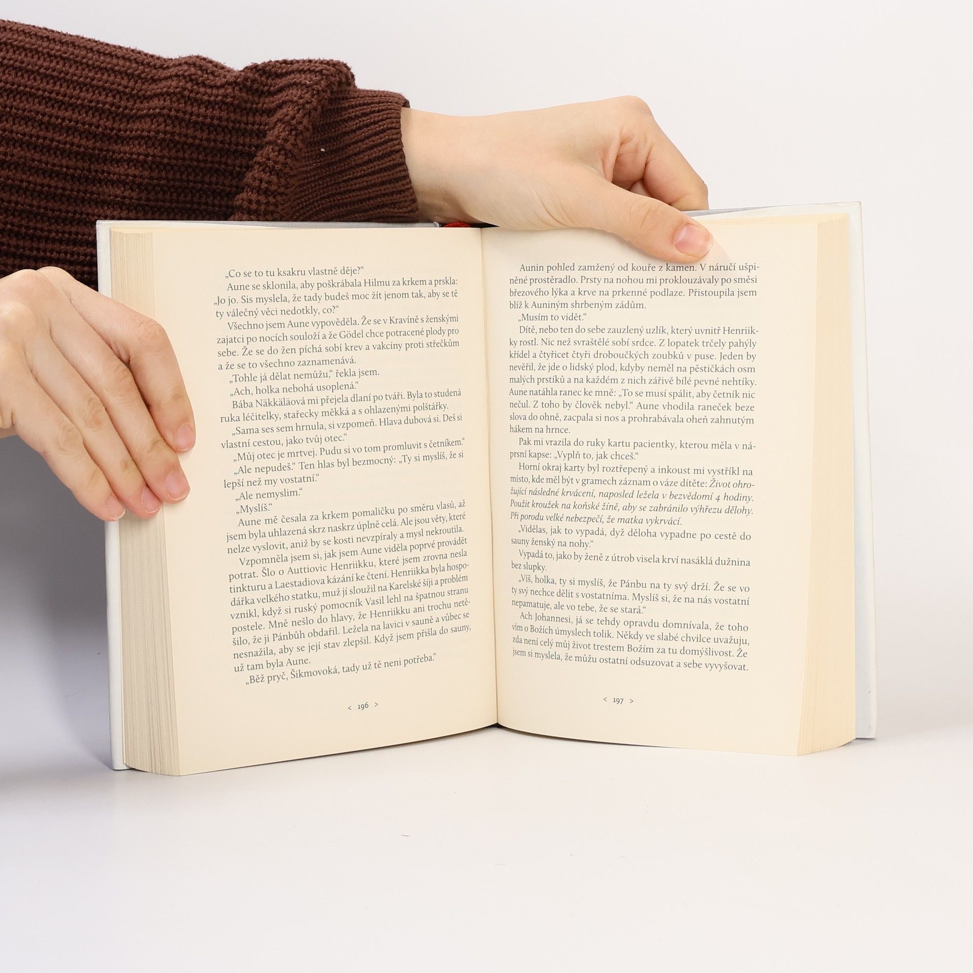 Je pozdní léto roku 1944 a v oblasti Pečenga na severu Finska probíhá laponská válka. Nemanželská dcera ze šamanské rodiny, odmalička odsunutá na okraj společnosti, vykonává důležité povolání porodní báby. Její život, to jsou cesty v nočním mrazu, pach dezinfekce a krev. Všechno se však změní, když potká nacistického důstojníka Johannese, který se „na ni podívá, jak se ještě nikdy nikdo nedíval“, a bezhlavě se do sebe zamilují. Hrdinka pak z vlastní vůle následuje německé šiky do vojenských a vězeňských táborů, kde pomáhá jako polní zdravotní sestra. Zatímco dříve však děti vítala do světa, zde se z ní stává anděl smrti a nakonec i ji semelou nemilosrdná kola dějin. Příběh je ojedinělým ztvárněním palčivé a rozporuplné kapitoly v dějinách Finska, z níž dodnes některé rodiny nesou cejch. Kniha získala v roce 2012 významnou Runebergovu cenu, byla přeložena do více než deseti jazyků a na její motivy se natáčí i film.