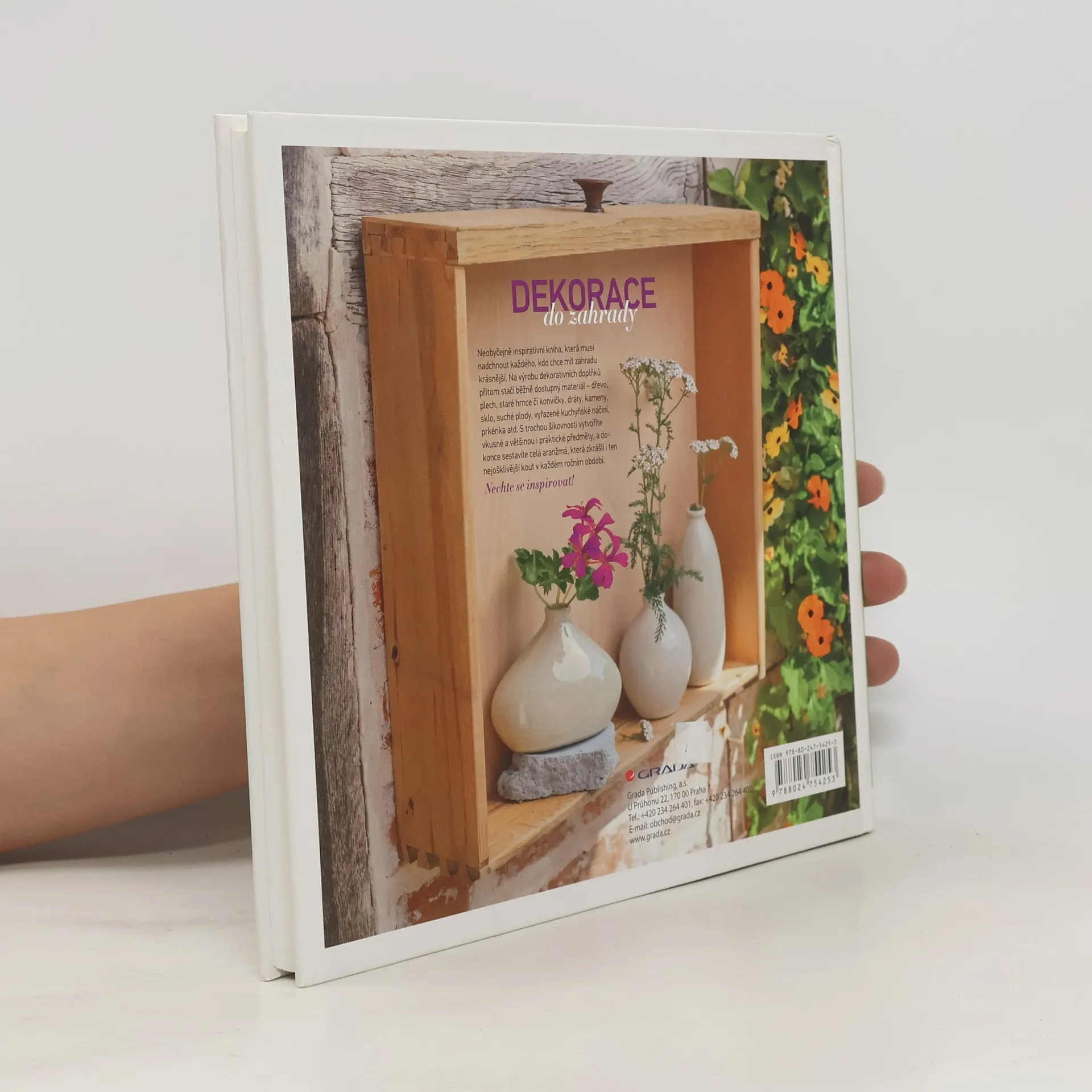 Velice inspirativní kniha, která musí nadchnout každého, kdo chce mít zahradu krásnější. Na výrobu dekorativních doplňků přitom stačí běžně dostupný materiál - dřevo, plech, staré hrnce či konvičky, dráty, kameny, sklo, suché plody, vyřazené kuchyňské náčiní, prkénka atd. S trochou šikovnosti vytvoříte vkusné a většinou i praktické předměty, a dokonce sestavíte celá aranžmá, která zkrášlí i ten nejošklivější kout v každém ročním období. Ze zobrazených příkladů si určitě vyberete i vy, přičemž se v doprovodných krátkých, přesto výstižných textech dozvíte, jaký materiál použít, jak postupovat při výrobě dekorací, kam a jak je umístit nebo ošetřovat, jakým barvám dát přednost, jaké zásady při aranžmá zachovávat a spoustu jiných užitečných rad.
