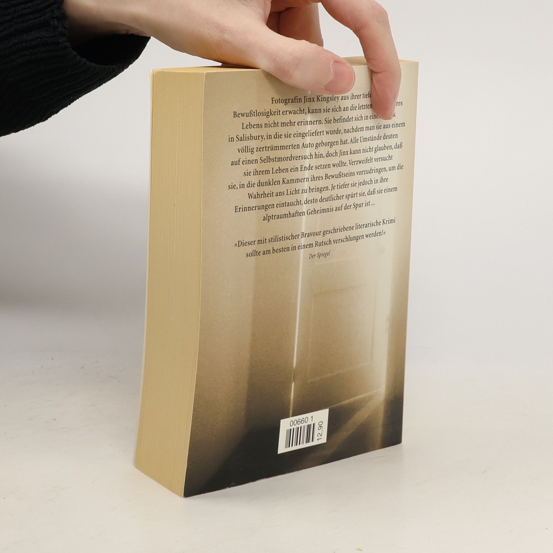 Als die Fotografin Jinx Kingsley aus tiefer Bewusstlosigkeit erwacht, kann sie sich an die letzten Wochen ihres Lebens nicht mehr erinnern. Sie wurde aus einem zertrümmerten Autowrack geborgen. Hatte sie versucht, sich umzubringen? Mühsam beginnt Jinx, sich in die dunklen Kammern ihres Bewusstseins vorzutasten, und spürt mit wachsender Angst, dass sie einem alptraumhaften Geheimnis auf der Spur ist.