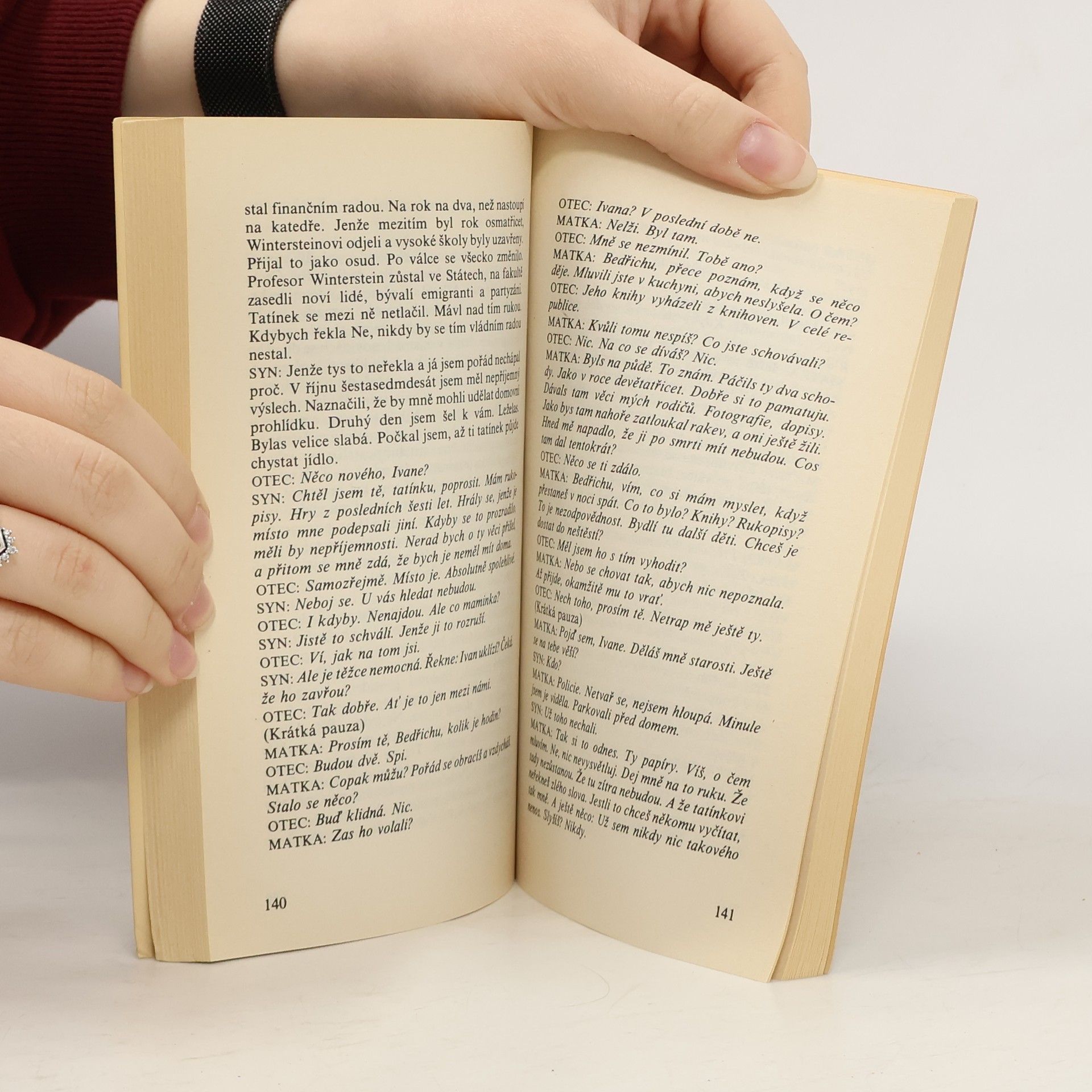 Šest divadelních a rozhlasových her. Děj titulní rozhlasové hry se odehrává převážně v rodinném kruhu. Postavy jsou nazvány jednoduše Matka, Syn, Otec. Syn se baví se zesnulou matkou o minulosti a životě, který prožili v útrapách minulého režimu. Rozhovor, prodchnutý vzpomínkami, je pokusem o objasnění minulých věcí. Další hry: Pán plamínků (televizní hra); Zubařovo pokušení (rozhlasová hra); Hodina obrany; Modrý anděl (vyprávění jediné ženy); Zvěstování aneb Bedřichu, jsi anděl. První, exilové vydání. Obálku s použitím malby Josefa Tichého navrhla Barbora Munzarová. Grafická úprava Věra Držmíšková.