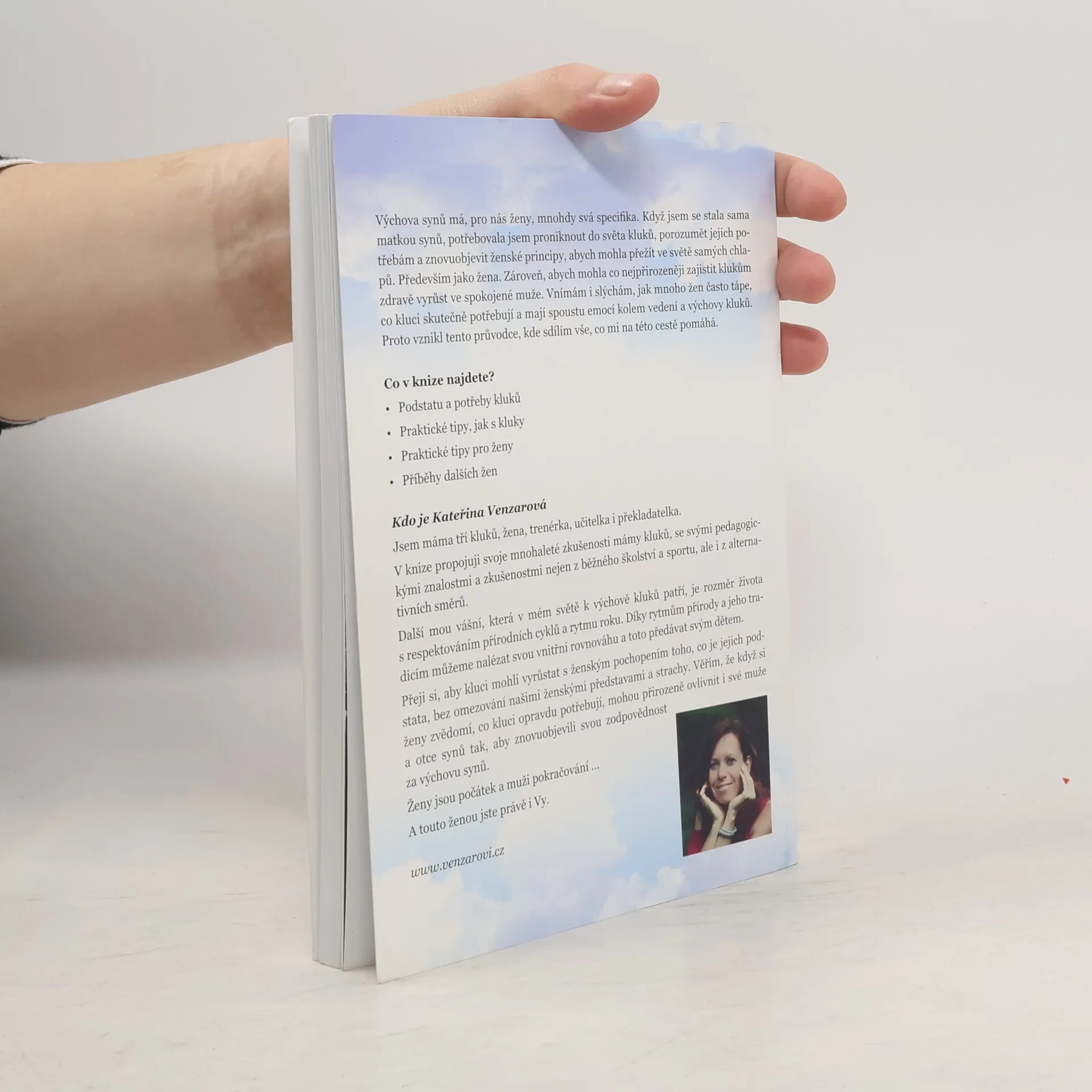 Výchova synů má, pro nás ženy, mnohdy svá specifika. Když jsem se stala sama matkou synů, potřebovala jsem proniknout do světa kluků, porozumět jejich potřebám a znovuobjevit ženské principy, abych mohla přežít ve světě samých chlapů. Především jako žena. Zároveň, abych mohla co nejpřirozeněji zajistit klukům zdravě vyrůst ve spokojené muže. Vnímám i slýchám, jak mnoho žen často tápe, co kluci skutečně potřebují a mají spoustu emocí kolem vedení a výchovy kluků. Proto vznikl tento průvodce, kde sdílím vše, co mi na této cestě pomáhá.