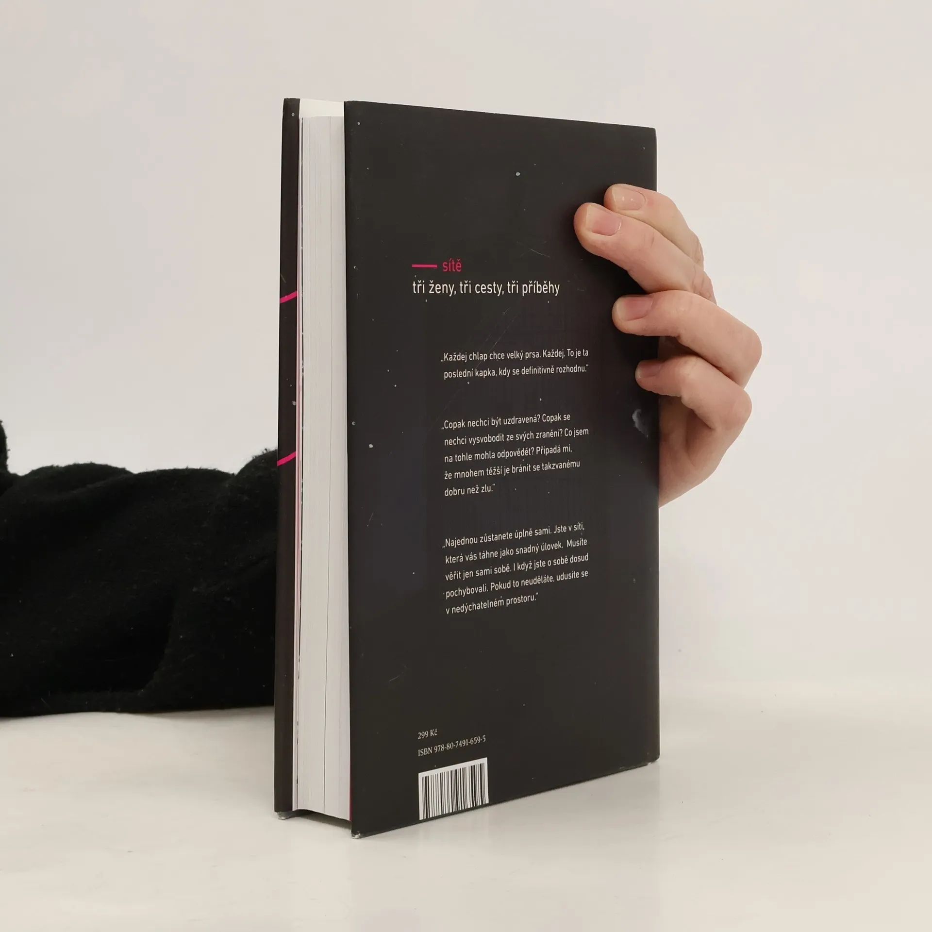 Tři příběhy o tom, jak nízké sebevědomí ovlivňuje náš život. Jste ohroženi jen do té míry, do jaké sami sobě nevěříte. Kde je nízké sebevědomí, stojí nablízku i manipulátor. A hledá, jak by vás využil ve svůj prospěch. Tři současné ženy, tři příběhy, které se zdaleka netýkají jen jich. Kristýna se svým malým synem konečně zakotví ve vztahu s charismatickým a movitým Jáchymem. Jediným jejich problémem je, že Kristýna si „trochu nevěří“. Začíná tedy navštěvovat psychoterapii, která ji však velmi rychle přivádí k dramatickému poznání i změně života. Karolína čeká čtvrté dítě a definitivně si přiznává, že opakuje nenáviděné chyby své matky. Touha vymanit se z vlivu nábožensky fanatického manžela, který striktně odmítá antikoncepci, ji přiměje oslovit starého kněze Ambrože. Dokáže ale vystoupit z bludného kruhu? Stačilo by mít jen o trochu větší prsa a život by byl mnohem lepší. Nadinu touhu po dokonalosti neumenšuje ani fakt, že jako zdravotní sestra se denně setkává s opravdovým utrpením a smrtí. Postupně se stává cynickou obchodnicí s důvěrou a před čtenářem se na pozadí příběhu rozkrývá i zákulisí kontroverzního obchodu s ukládáním pupečníkové krve. Není lhostejné, zda budete vně, nebo uvnitř sítí. Rybolov začíná!