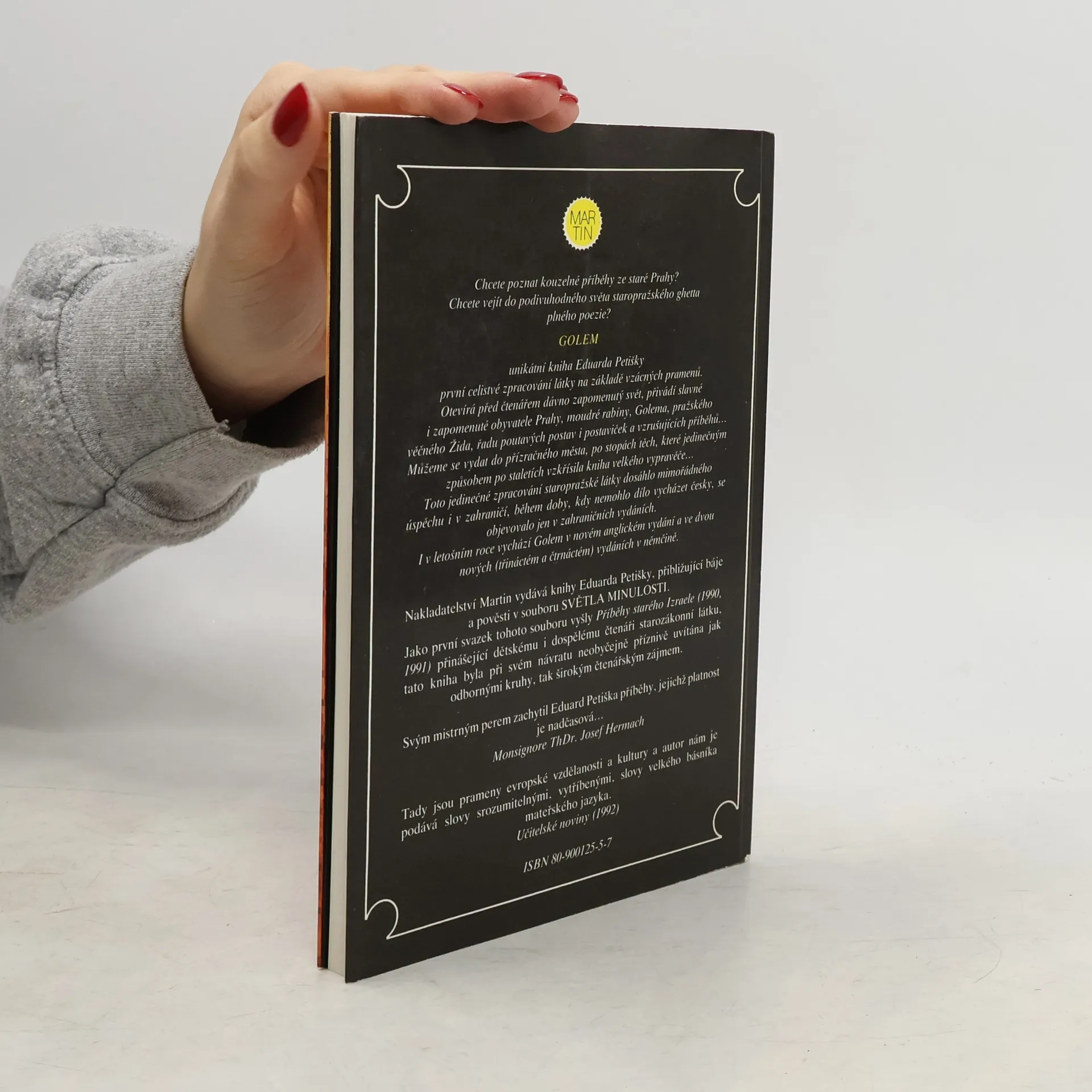 Unikátní kniha Eduarda Petišky. První celistvé zpracování látky na základě vzácných pramenů. Otevírá před čtenářem dávno zapomenutý svět, přivádí slavné i zapomenuté obyvatele Prahy, moudré rabíny, Golema, pražského věčného Žida, řadu poutavých postav i postaviček a vzrušujících příběhů... Můžeme se vydat do přízračného města, po stopách těch, které jedinečným způsobem po staletích vzkřísila kniha velkého vypravěče... Toto jedinečné zpracování staropražské látky dosáhlo mimořádného úspěchu i v zahraničí, během doby, kdy nemohlo dílo vycházet česky, se objevovalo jen v zahraničních vydáních.