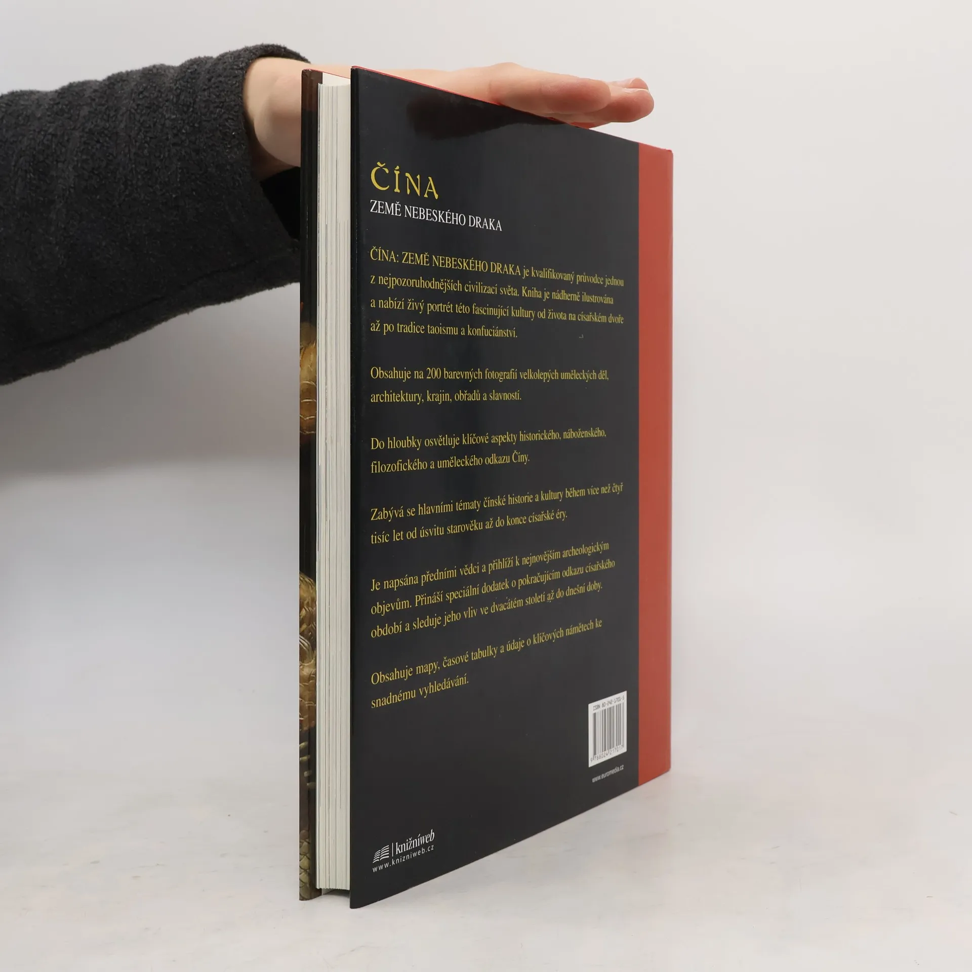 Pro západní oči je Čína jednou z nejtajemnějších a nejúžasnějších civilizací vůbec. Odkaz její dlouhé dynastické vlády, sahající až před rok 1500 př. n. l., zahrnuje fascinující pojetí filozofie, náboženství, umění, vědy a mytologie, které i nadále ovlivňují moderní svět. Publikace Čína: Země nebeského draka se zabývá idejemi této jedinečné kultury, čerpá z nejnovějších archeologických objevů a teorií a představuje dějiny, společnost a náboženství Číny od prehistorických legend až do konce císařské vlády v roce 1912. Zkoumá klíčové kulturní, duchovní a umělecké tradice této obrovské civilizace a líčí hlavní vědecké a technické čínské vynálezy jako střelný prach, tisk a kompas. Vyvrací konvenční názor, že Čína je izolovanou civilizací a zdůrazňuje mezinárodní a kosmopolitní charakter jejích dějin. Závěrečná část se zabývá pokračujícím odkazem císařského období v bouřlivých letech dvacátého století až do dnešních dnů. Množství barevných fotografií a reprodukcí uměleckých děl v kombinaci se čtivým a erudovaným textem zobrazuje zvyky a tradice čínského světa od života v nejodlehlejších vesnicích až po dění na císařském dvoře. 2. vydání.