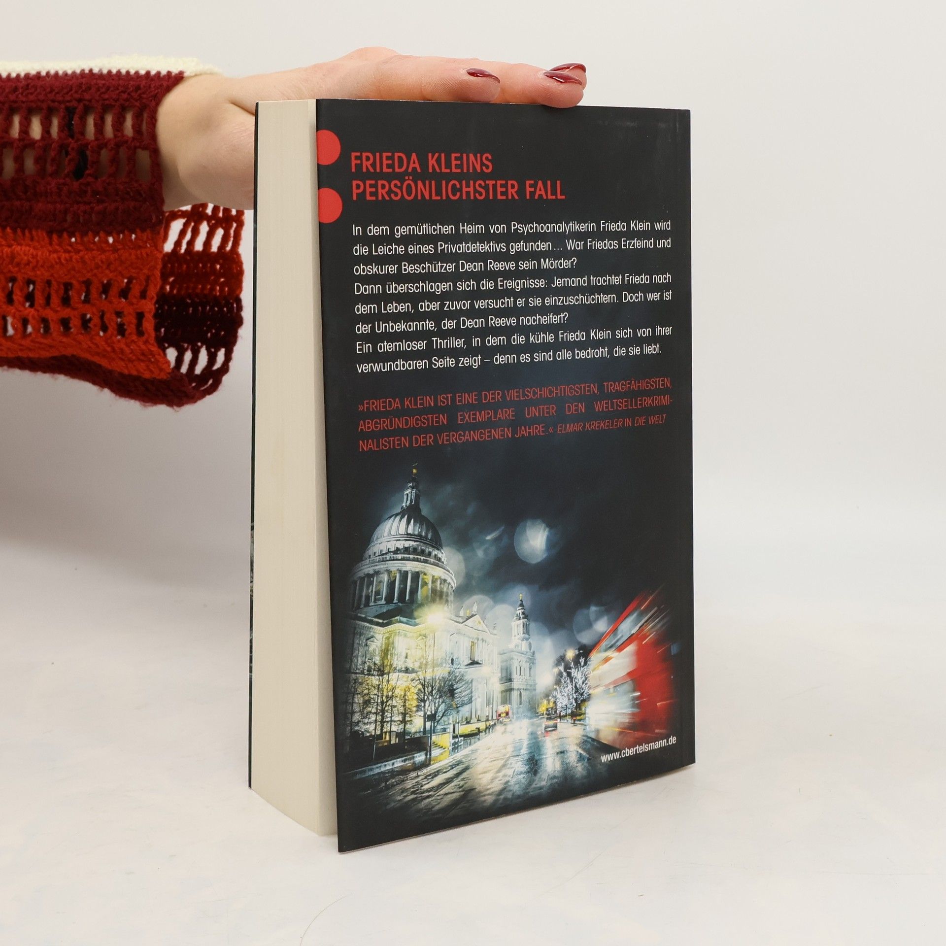 In dem gemütlichen Heim von Psychoanalytikerin Frieda Klein wird die Leiche eines Privatdetektivs gefunden ... War Friedas Erzfeind und obskurer Beschützer Dean Reeve der Mörder? Dann überschlagen sich die Ereignisse: Jemand trachtet Frieda nach dem Leben, doch zuvor versucht er sie einzuschüchtern. Ihre Nichte Chloe, Freund Jack, der schwer krebskranke Reuben und Josefs kleiner Sohn – sie alle werden Opfer von Anschlägen. Die Polizei tappt im Dunkeln, aber Frieda ist bald klar, dass die Verbrechen nicht Reeves Handschrift tragen. Doch wer ist der Unbekannte, der ihm nacheifert? Ein atemloser Thriller, in dem Frieda sich von ihrer verwundbaren Seite zeigt – denn es sind alle bedroht, die sie liebt ...