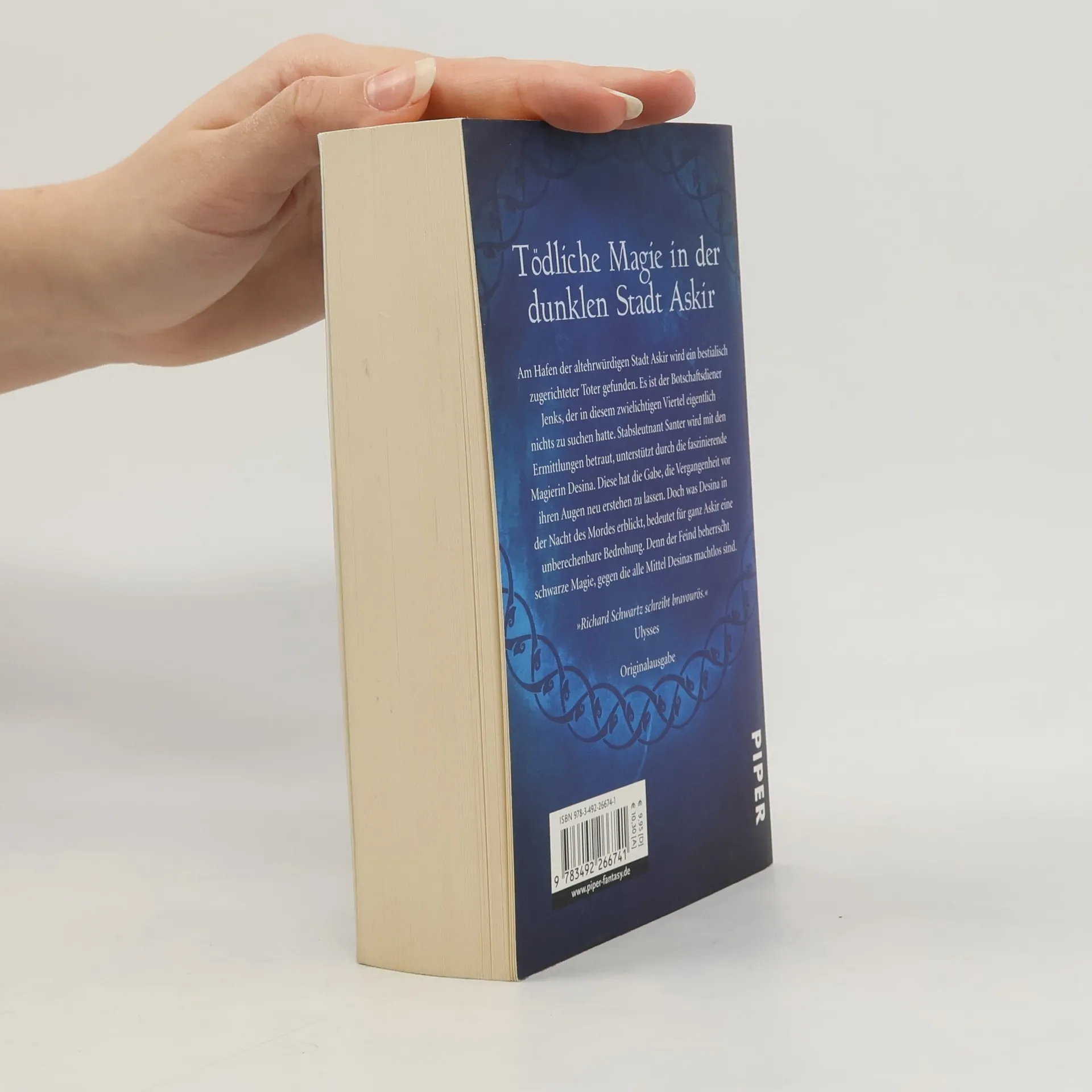 Am Hafen der altehrwürdigen Stadt Askir wird ein bestialisch zugerichteter Toter gefunden. Es ist der Botschaftsdiener Jenks, der in diesem zwielichtigen Viertel eigentlich nichts zu suchen hatte. Stabsleutnant Santer wird mit den Ermittlungen betraut, unterstützt durch die faszinierende Magierin Desina. Diese hat die Gabe, die Vergangenheit vor ihren Augen neu erstehen zu lassen. Doch was Desina in der Nacht des Mordes erblickt, bedeutet für ganz Askir eine unberechenbare Bedrohung. Denn der Feind beherrscht schwarze Magie, gegen die alle Mittel Desinas machtlos sind.