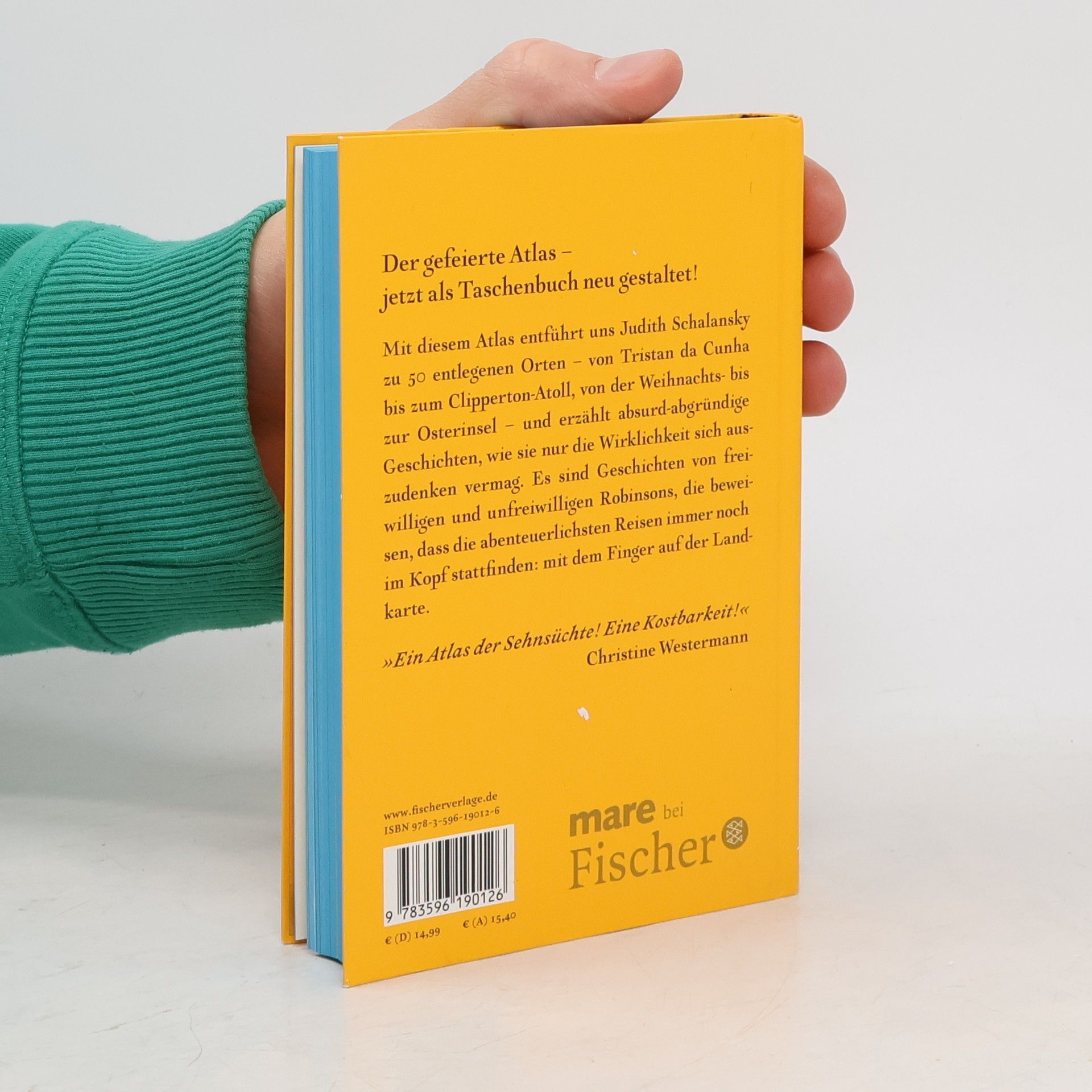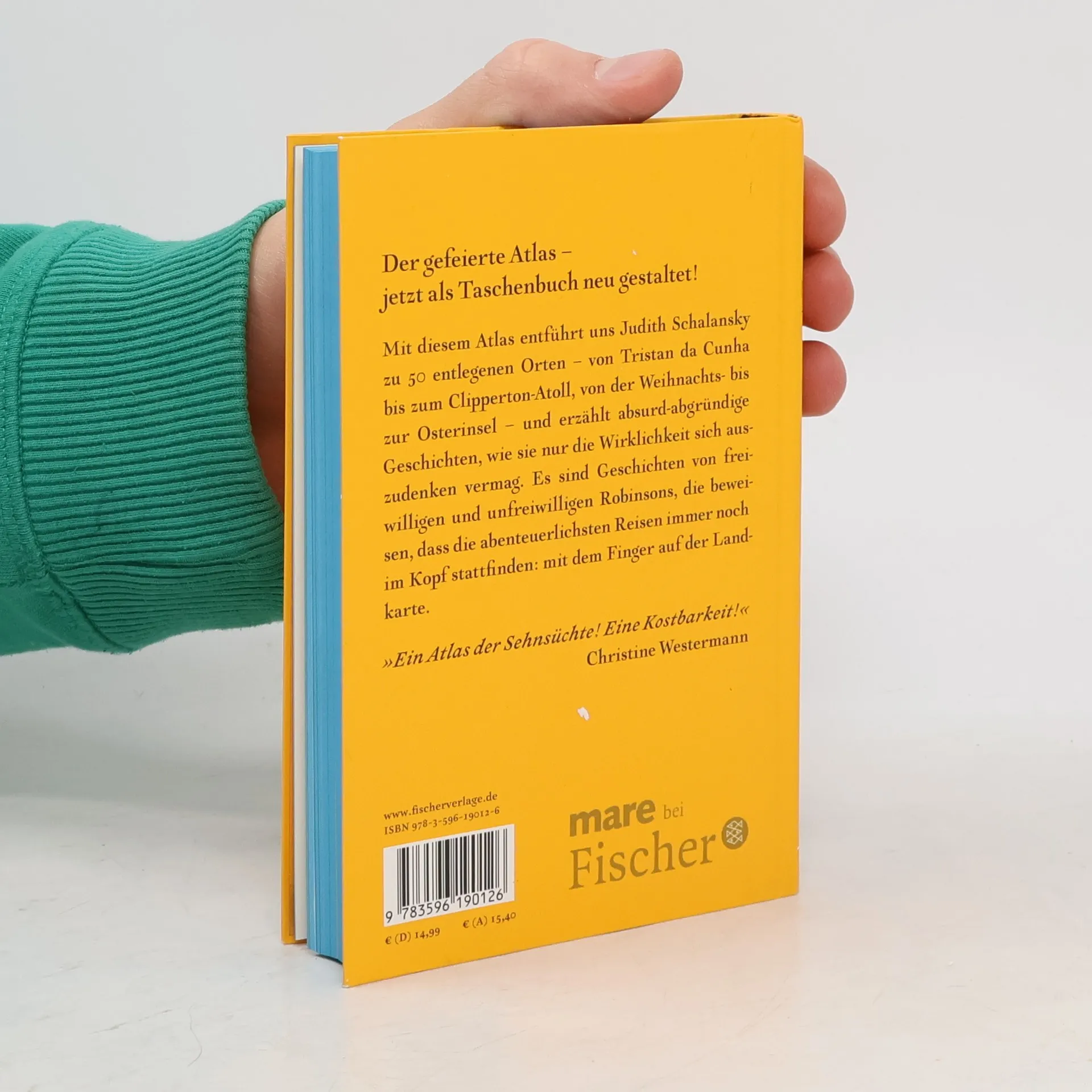 Der gefeierte Atlas – jetzt als Taschenbuch neu gestaltet! Mit diesem Atlas entführt uns Judith Schalansky zu 50 entlegenen Orten – von Tristan da Cunha bis zum Clipperton-Atoll, von der Weihnachts- bis zur Osterinsel – und erzählt absurd-abgründige Geschichten, wie sie nur die Wirklichkeit sich auszudenken vermag. Es sind Geschichten von freiwilligen und unfreiwilligen Robinsons, die beweisen, dass die abenteuerlichsten Reisen immer noch im Kopf stattfinden: mit dem Finger auf der Landkarte. 'Ein Atlas der Sehnsüchte! Eine Kostbarkeit!' Christine Westermann