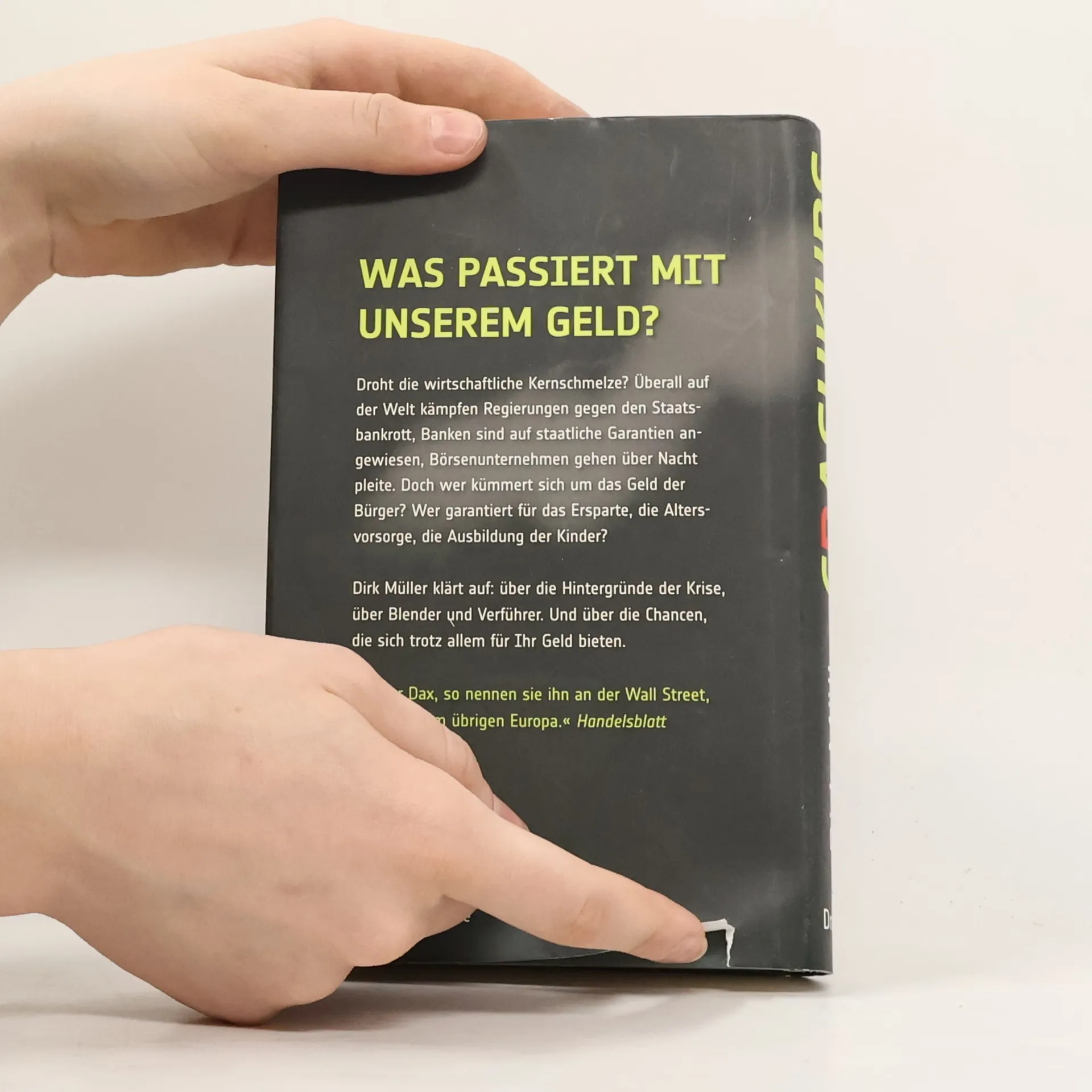 Was passiert mit unserem Geld? Droht die wirtschaftliche Kernschmelze? Überall auf der Welt kämpfen Regierungen gegen den Staatsbankrott, Banken sind auf staatliche Garantien angewiesen, Börsenunternehmen gehen über Nacht pleite. Doch wer kümmert sich um das Geld der Bürger? Wer garantiert für das Ersparte, die Altersvorsorge, die Ausbildung der Kinder? Dirk Müller klärt auf: Über die Hintergründe der Krise, über Blender und Verführer. Und über die Chancen, die sich trotz allem für Ihr Geld bieten. »›Mister Dax‹, so nennen sie ihn an der Wall Street, in London, im übrigen Europa.« Handelsblatt