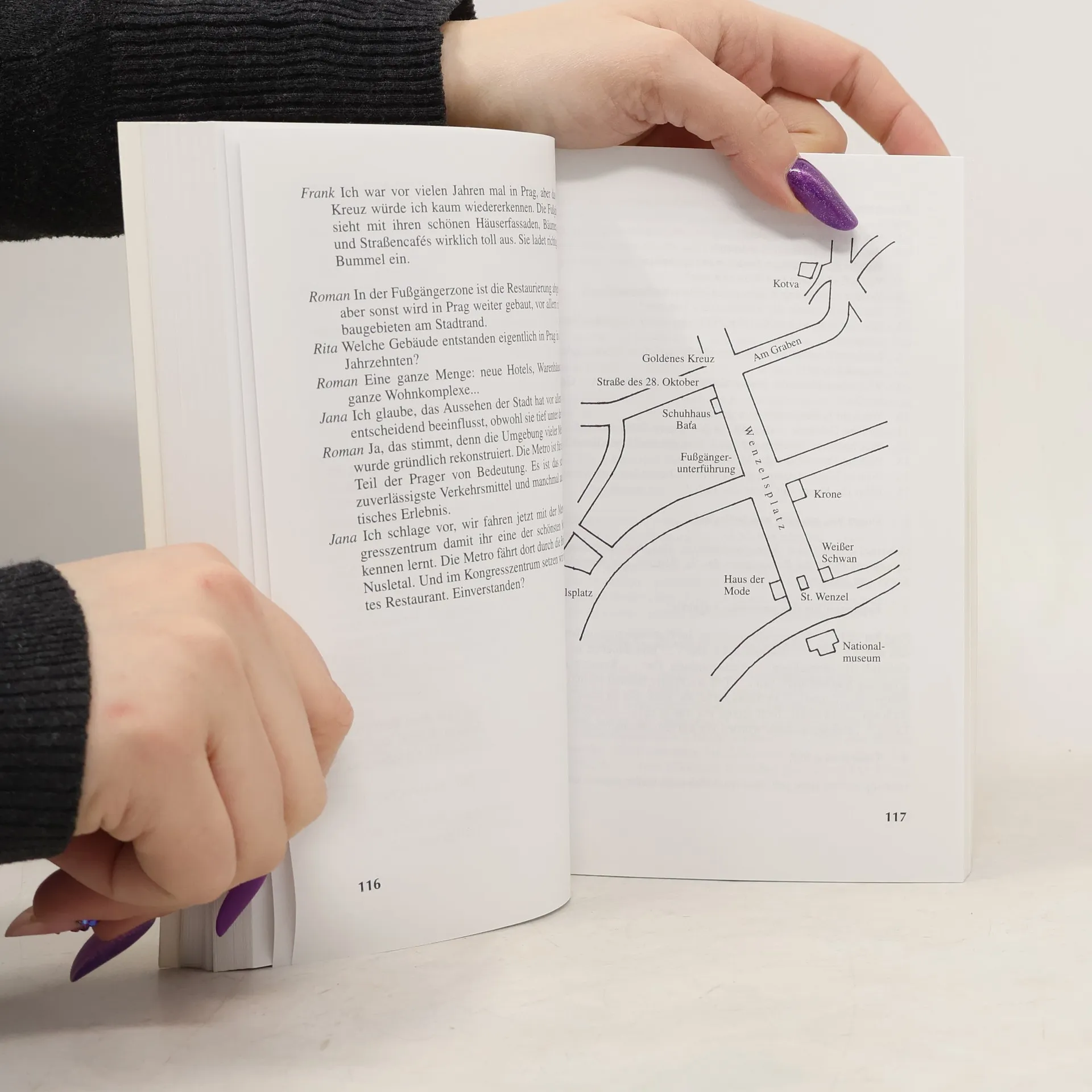 Učebnice německé konverzace je určena středně pokročilým uživatelům, kteří chtějí zlepšit své mluvení a ovládají základní mluvnické učivo. Obsahuje 30 témat, reflektujících každodenní situace. Lekce nejsou seřazeny podle obtížnosti, ale podle tematických celků, což umožňuje učitelům vybírat témata podle zájmů a úrovně studentů. Uživatelé se seznamují s reáliemi německy mluvících zemí a s českou realitou, což zahrnuje školství, sociální podmínky a zvyky. Lekce mají pevnou strukturu, začínají úvodními texty, následují cvičení na porozumění a procvičování slovní zásoby. Důležité výrazy jsou graficky znázorněny, což usnadňuje jejich zapamatování. Cvičení se zaměřují na řečové dovednosti a čtení, přičemž se procvičují mluvnické jevy důležité pro komunikaci. Anekdoty obohacují lekce a rozšiřují slovní zásobu. Závěrečný slovníček shrnuje výrazy a následují komunikativní obraty pro různé situace. Texty k četbě jsou pestré a obsahují aktuální slovní zásobu, přičemž neznámá slova jsou ihned vysvětlena. Písemné vyjadřování se rozvíjí prakticky, aby studenti uměli reagovat v běžných situacích. Klíč k cvičením s jednoznačnými reakcemi je užitečný pro uživatele i vyučující.