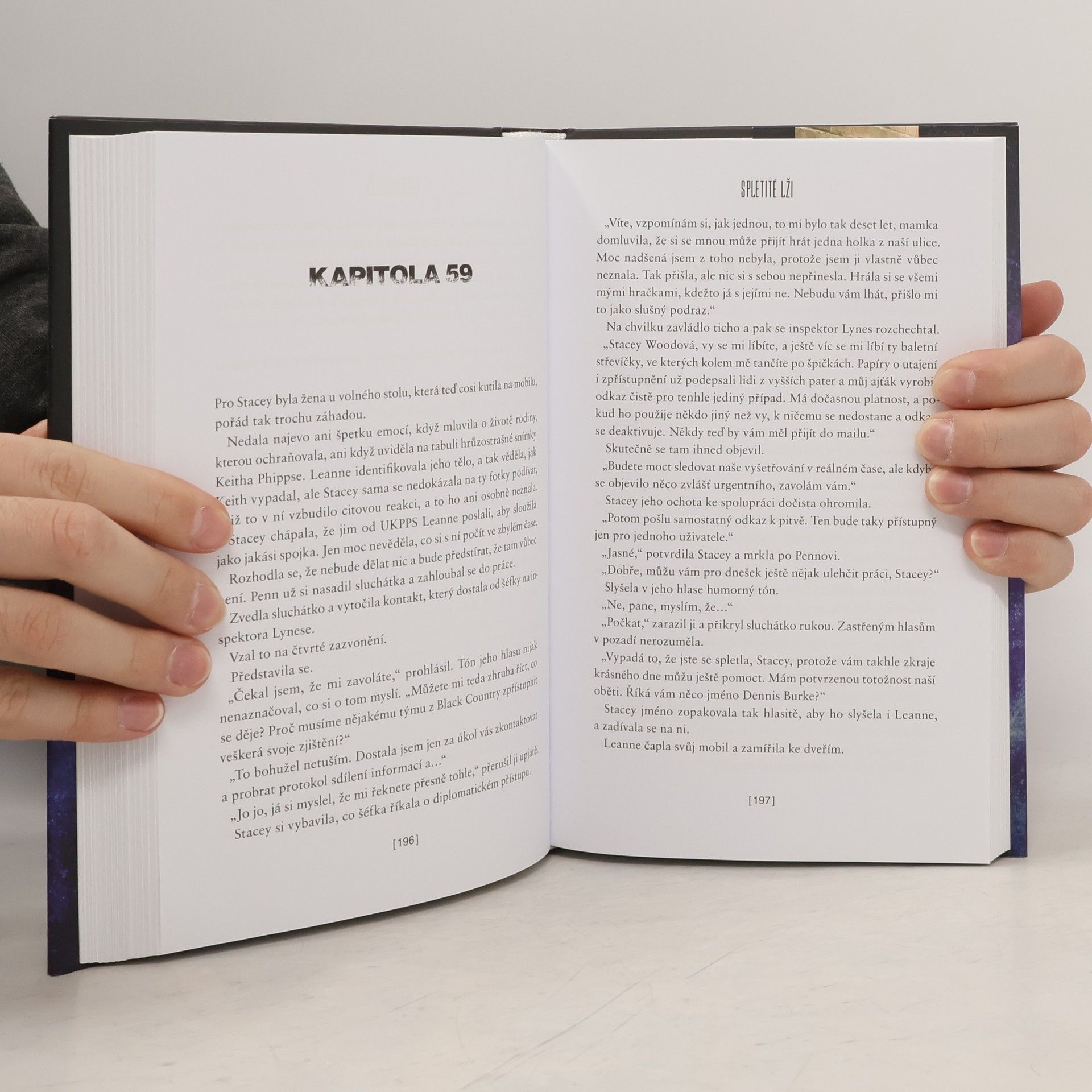 Další jedinečný, napínavý příběh od královny současné krimi. Inspektorka Kim Stoneová už viděla ledacos, ale pohled na oběť, která se našla v místní průmyslové zóně, vyrazí dech i jí. Když poté Kim oznámí zdrcující zprávu manželce zavražděného, Dianě Phippsové, nemůže se ubránit pocitu, že na ženině reakci něco nebylo v pořádku. A pak Diane a její rodina zmizí, v přírodní rezervaci je objevena další mrtvola a Kim se svým týmem narazí na stopu, která spojuje oba případy. Má to však háček – tajemství téhle stopy je přísně střeženo. Dokonce i některými z Kiminých kolegů…