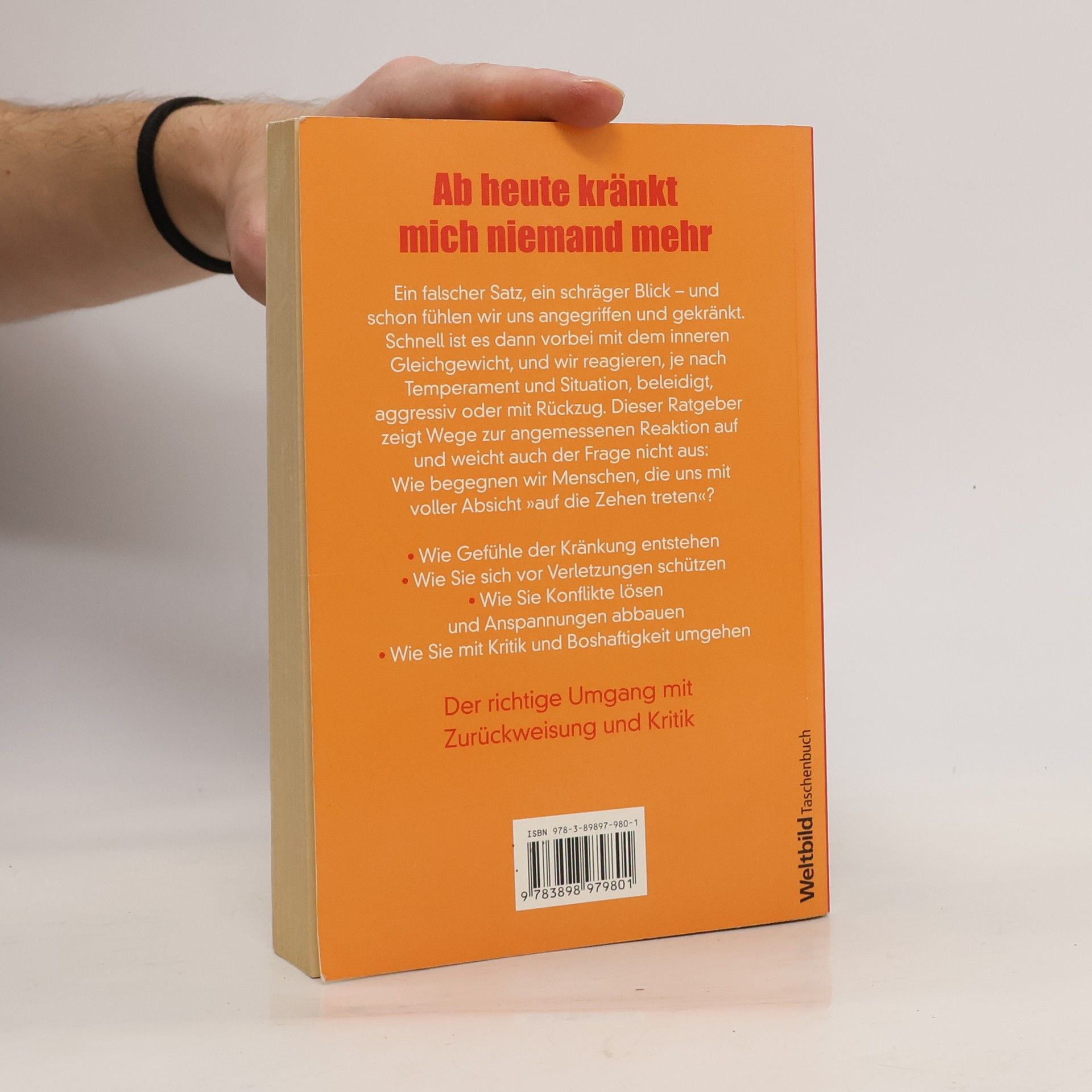 Kennen Sie Ihren wunden Punkt? In nur wenigen Sekunden kann ein Satz oder eine Geste das Selbstwertgefühl erschüttern. Gekränktheit stellt uns als Person in Frage und führt oft zu Rückzug oder Überreaktionen. Dr. Doris Wolf, Psychotherapeutin, erläutert in ihrem Ratgeber, warum bestimmte Dinge uns besonders treffen und bietet praktische Tipps, um Gedanken und Gefühle positiv zu beeinflussen. Sie behandelt Fragen wie: Bin ich zu empfindlich? Wie entsteht Gekränktheit und wie kann ich mich davor schützen? Ein ausführlicher Fragenkatalog zur Selbstanalyse hilft, persönliche Verwundbarkeiten zu erkennen. Praktische Übungen unterstützen dabei, typische Schockreaktionen und negative Gedanken zu überwinden. Zudem gibt es wirksame Strategien im Umgang mit schwierigen Menschen und Beleidigungen. Dr. Wolf zeigt, wie man Gefühle kontrolliert, besser mit Kritik umgeht und Konflikte löst. Ihre effektiven Selbsthilfetipps fördern Gelassenheit und Selbstbewusstsein. Egal, ob ungewollte Beleidigungen oder gezielte Kritik: Wir haben die Kontrolle über unsere Emotionen und Reaktionen. Schritt für Schritt lernen Sie, selbstzerstörerische Gedanken zu stoppen, Ihre Selbstachtung zu stärken und Ablehnung sowie Kritik gelassener zu begegnen.