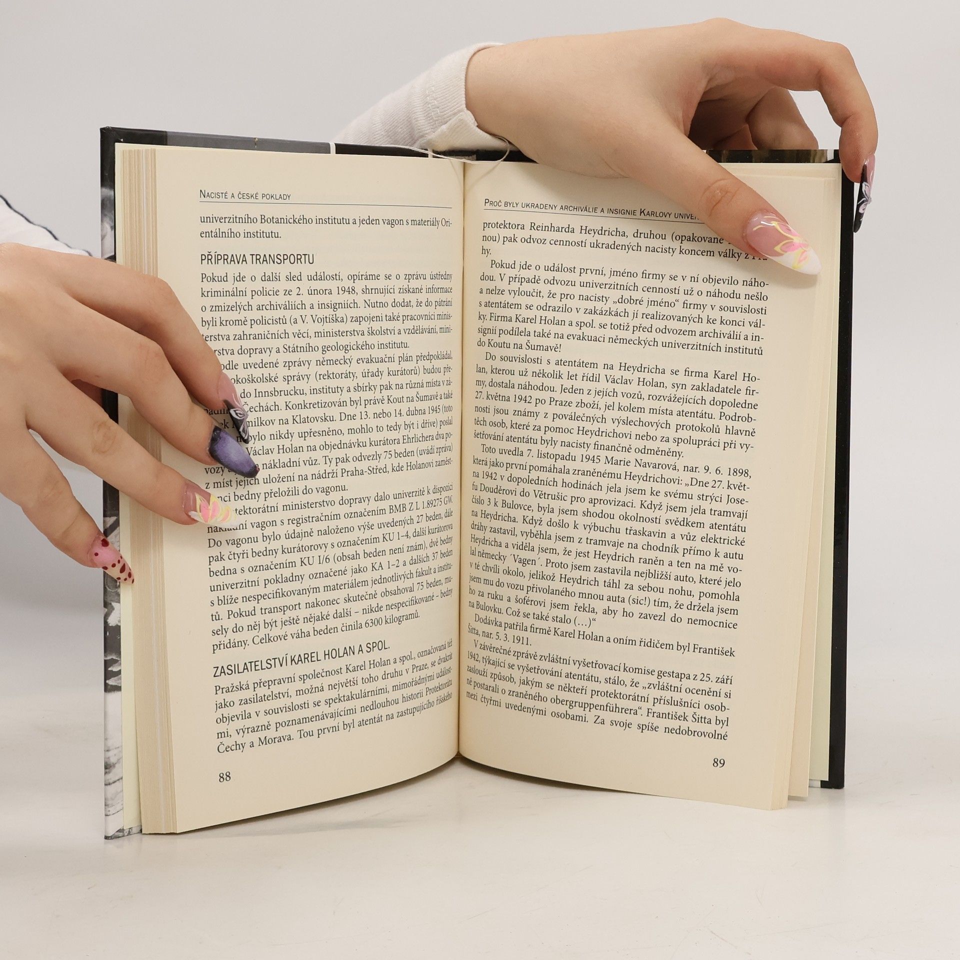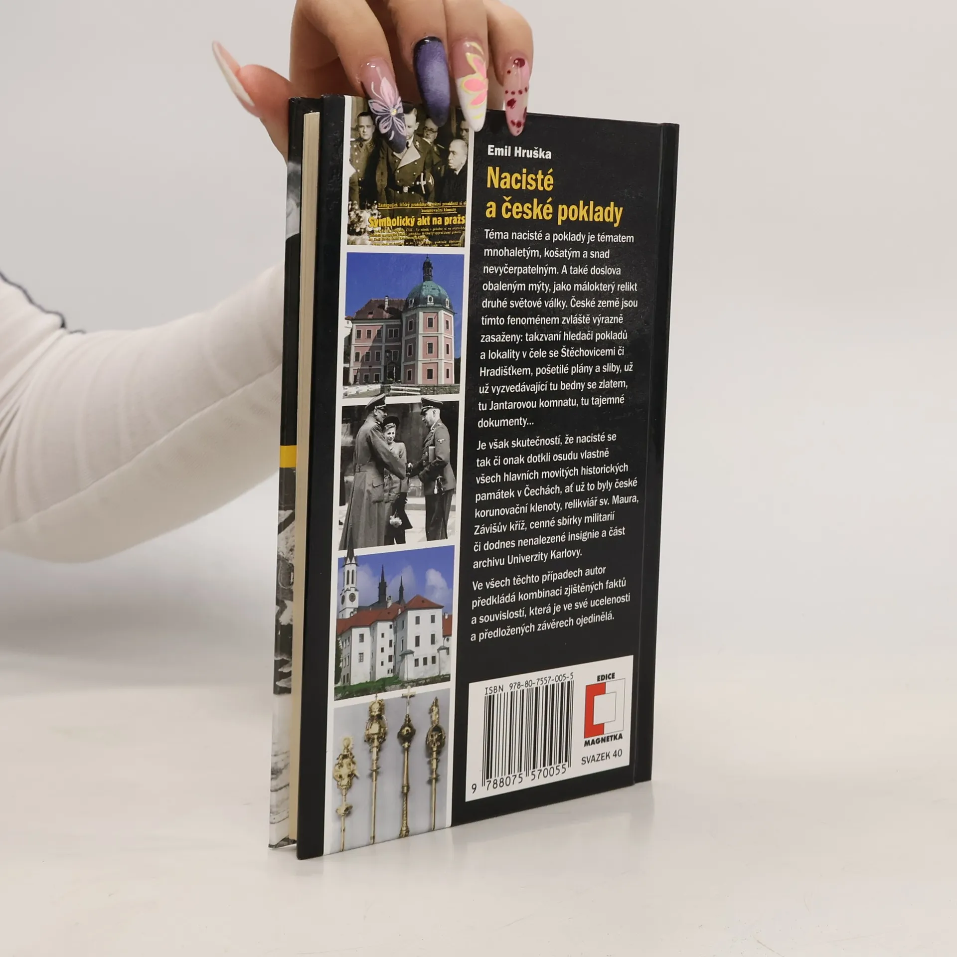Téma nacisté a poklady je tématem mnohaletým, košatým a snad nevyčerpatelným. A také doslova obaleným mýty, jako málokterý relikt druhé světové války. České země jsou tímto fenoménem zvláště výrazně zasaženy: takzvaní hledači pokladů a lokality v čele se Štěchovicemi či Hradišťkem, pošetilé plány a sliby, už už vyzvedávající tu bedny se zlatem, tu Jantarovou komnatu, tu tajemné dokumenty… Je však skutečností, že nacisté se tak či onak dotkli osudu vlastně všech hlavních movitých historických památek v Čechách, ať už to byly české korunovační klenoty, relikviář sv. Maura, Závišův kříž, cenné sbírky militarií či dodnes nenalezené insignie a část archivu Univerzity Karlovy. Ve všech těchto případech autor předkládá kombinaci zjištěných faktů a souvislostí, která je ve své kompaktnosti a předložených závěrech ojedinělá.