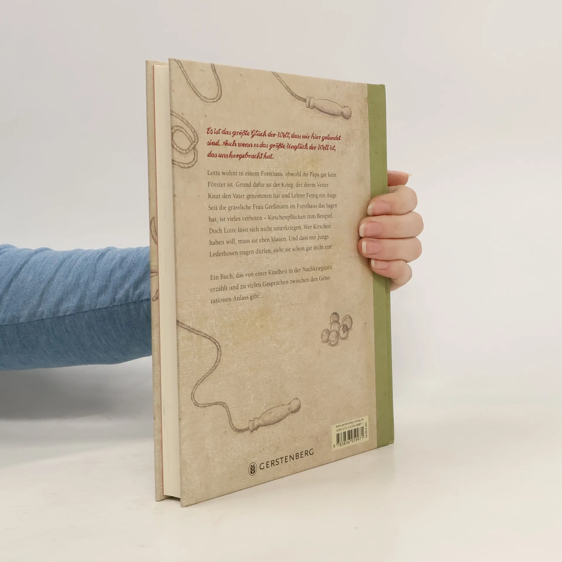 „Es ist das größte Glück der Welt, dass wir hier gelandet sind. Auch wenn es das größte Unglück der Welt ist, das uns hergebracht hat.“ Lotte wohnt in einem Forsthaus, obwohl ihr Papa gar kein Förster ist. Grund dafür ist der Krieg, der ihrem Vetter Knut den Vater genommen hat und Lehrer Fettig ein Auge. Seit die grässliche Frau Greßmann im Forsthaus das Sagen hat, ist vieles verboten - Kirschenpflücken zum Beispiel. Doch Lotte lässt sich nicht unterkriegen. Wer Kirschen haben will, muss sie eben klauen. Und dass nur Jungs Lederhosen tragen dürfen, sieht sie schon gar nicht ein! Ein Buch, das von einer Kindheit in der Nachkriegszeit erzählt und zu vielen Gesprächen zwischen den Generationen Anlass gibt.