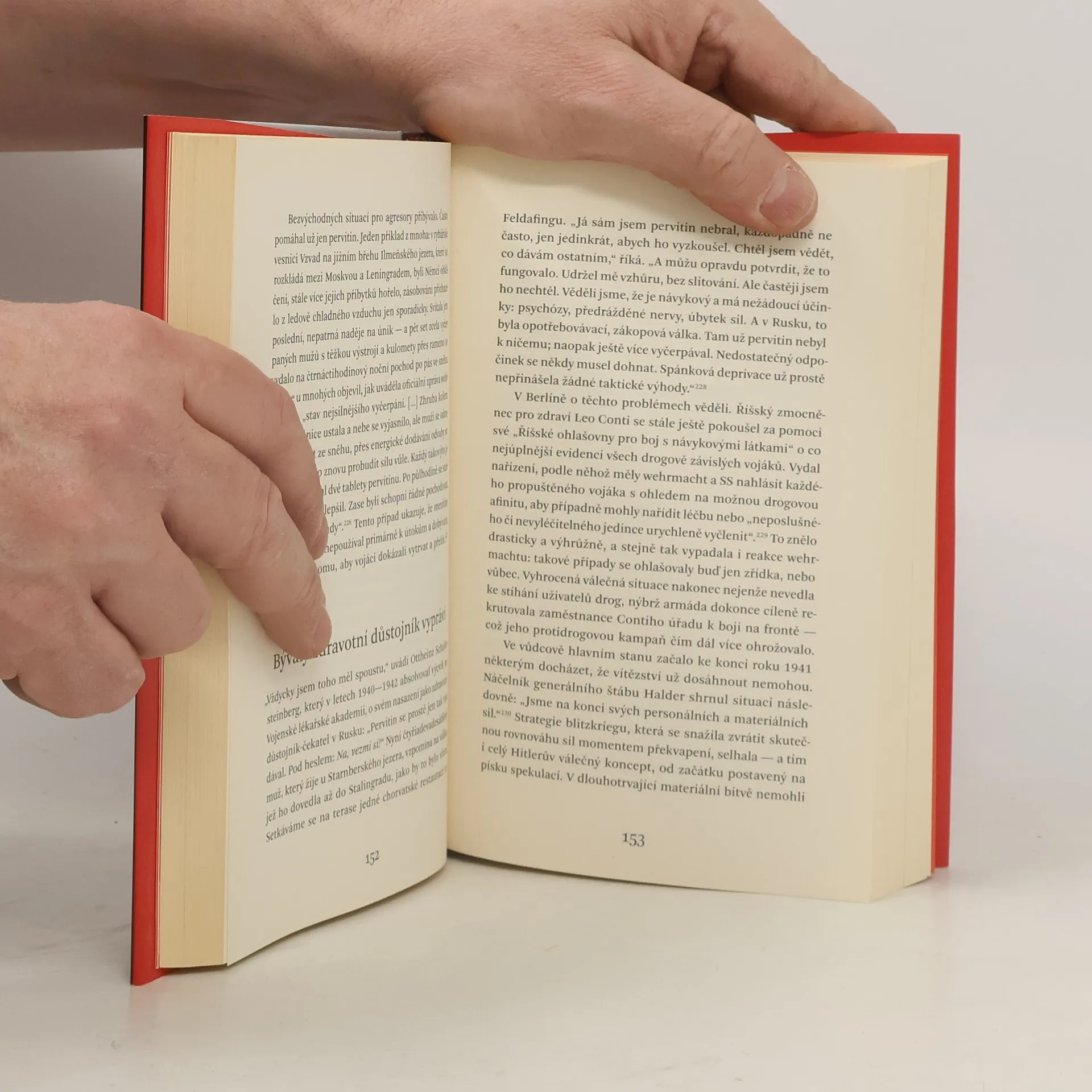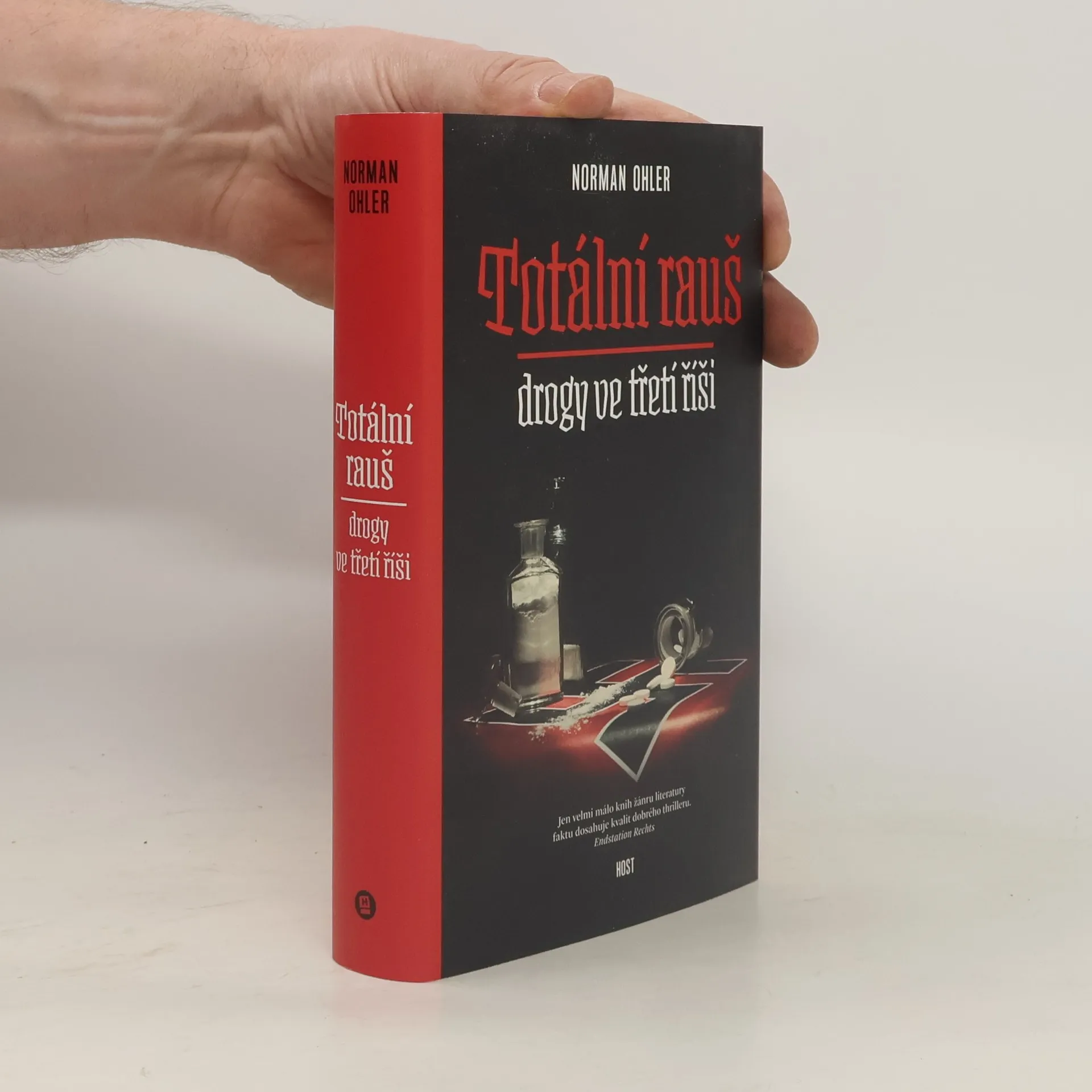 Strhující jako thriller – první komplexní studie drogové problematiky ve třetí říši. Když Němci v roce 1940 vtrhli do Francie, měli vojáci wehrmachtu k dispozici třicet pět milionů dávek pervitinu. Látka – dnes mezinárodně známá jako meth – byla tehdy k dostání v každé lékárně. Droga měla umožnit tzv. bleskovou válku a stala se běžnou součástí výbavy vojáků. Dokonce i údajný abstinent Hitler se rád uchyloval k farmaceutickým stimulantům. V době, kdy nařídil poslední ofenzivu v zimě roku 1944, nebyl čistý ani jeden den. Jeho osobní lékař Theo Morell jej zásoboval všemi druhy léků, hormonů i tvrdých drog. Pouze v tomto stavu mohl vůdce vydržet tak dlouho. Ohler prošel všechny materiály k tématu, hovořil s pamětníky, vojenskými historiky i lékaři. Na knize se podílel přední historik Hans Mommsen, který také napsal doslov.