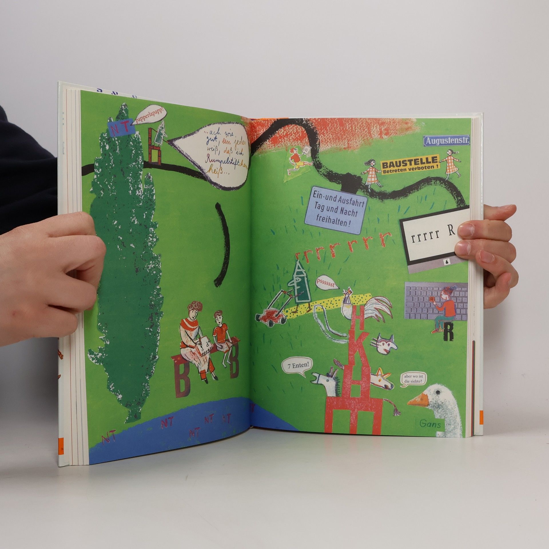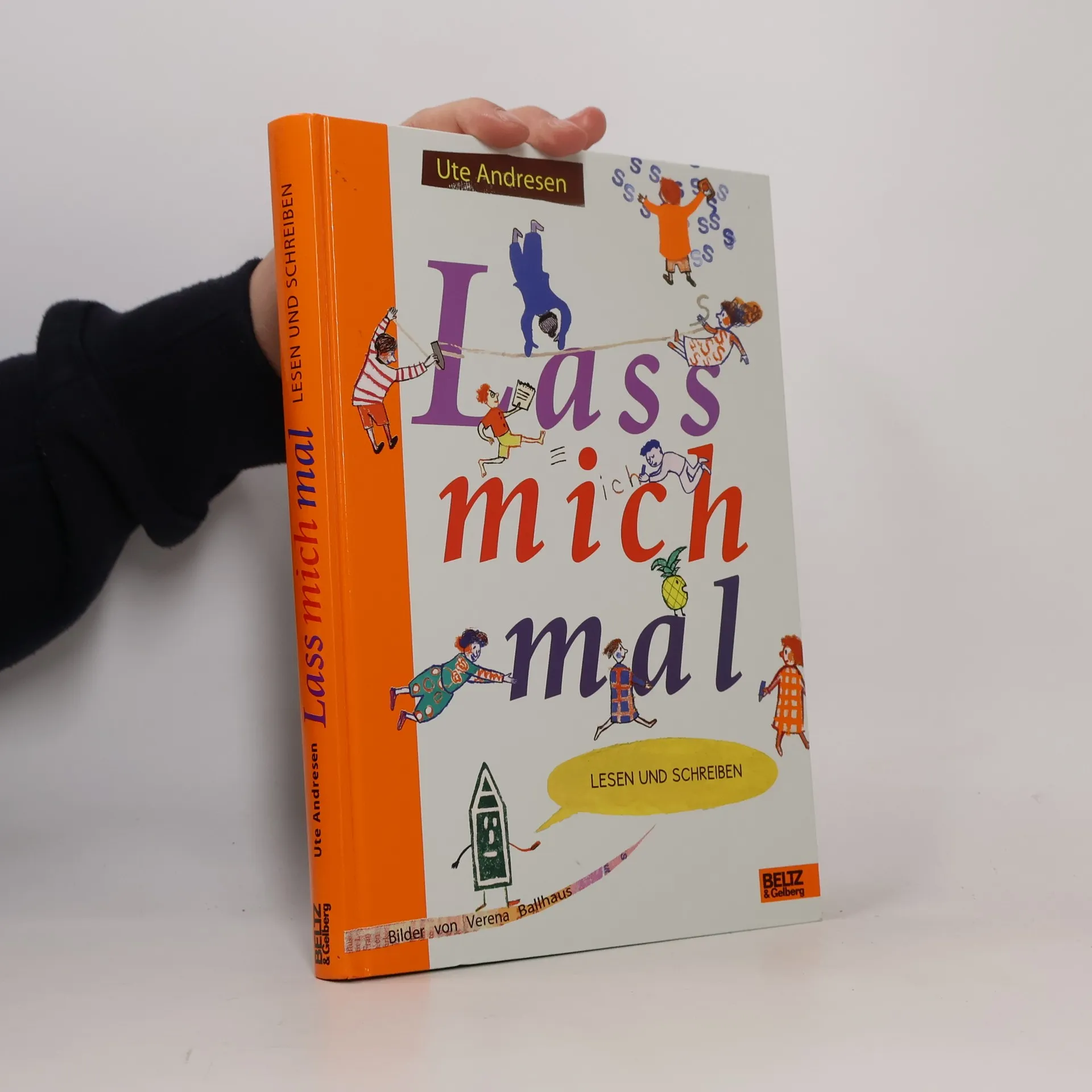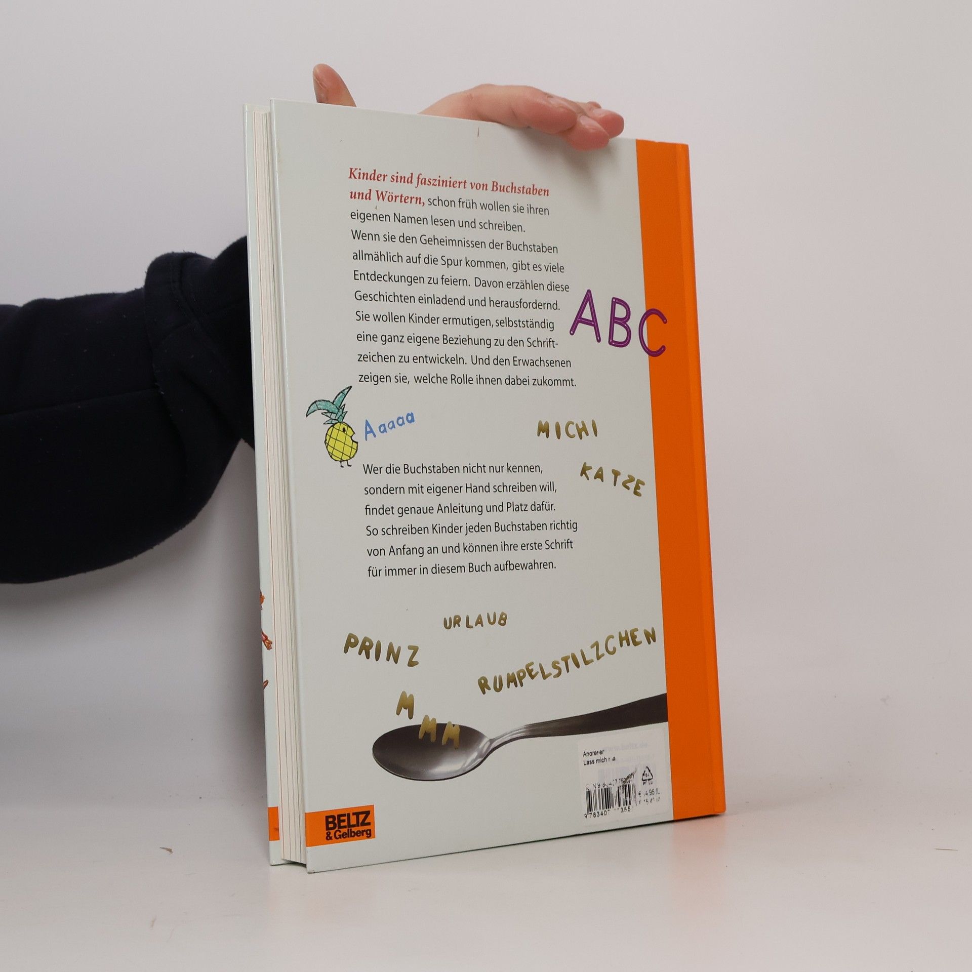 Kinder sind fasziniert von Buchstaben und Wörtern; schon früh wollen sie ihren eigenen Namen lesen und schreiben können. Und zwar richtig. Dieses originelle Geschichten-Sprach-Lern-Buchstaben-Buch trifft haargenau die kindliche Neugier. Kinder und Eltern erleben gemeinsam den Aufbruch in die Welten der Schrift: 27 Geschichten zum Vorlesen - kurze und lange, ernste und augenzwinkernde Geschichten rund um 27 Buchstaben, große und kleine Wörter, Kindernamen und überraschende Situationen im Alltag. Ob in der Buchstabensuppe oder im Straßenverkehr, immer wieder bieten sich Anlässe, über Wörter und Sprache zu sprechen und Schrift zu entziffern. Ute Andresen erzählt davon so realistisch wie poetisch, spielerisch verflochten mit Anregungen fürs eigene Lesen- und Schreibenlernen. Die Illustrationen und Collagen von Verena Ballhaus nehmen diese Lust an Sprache kongenial auf. 27 Extra-Seiten zeigen für jeden Buchstaben die richtige Schreibbewegung. In Kästchen und auf Linien kann jedes Kind sich darin üben.