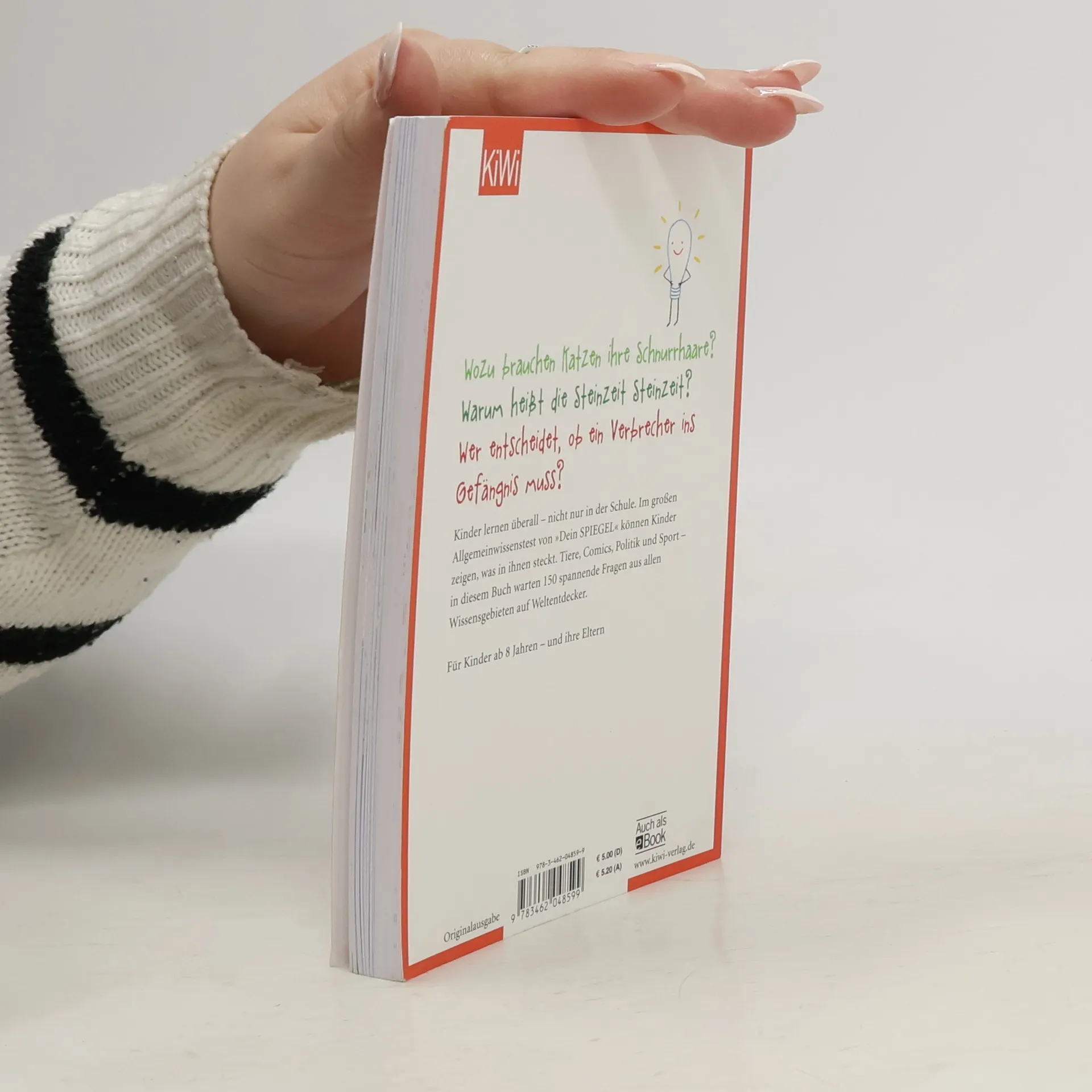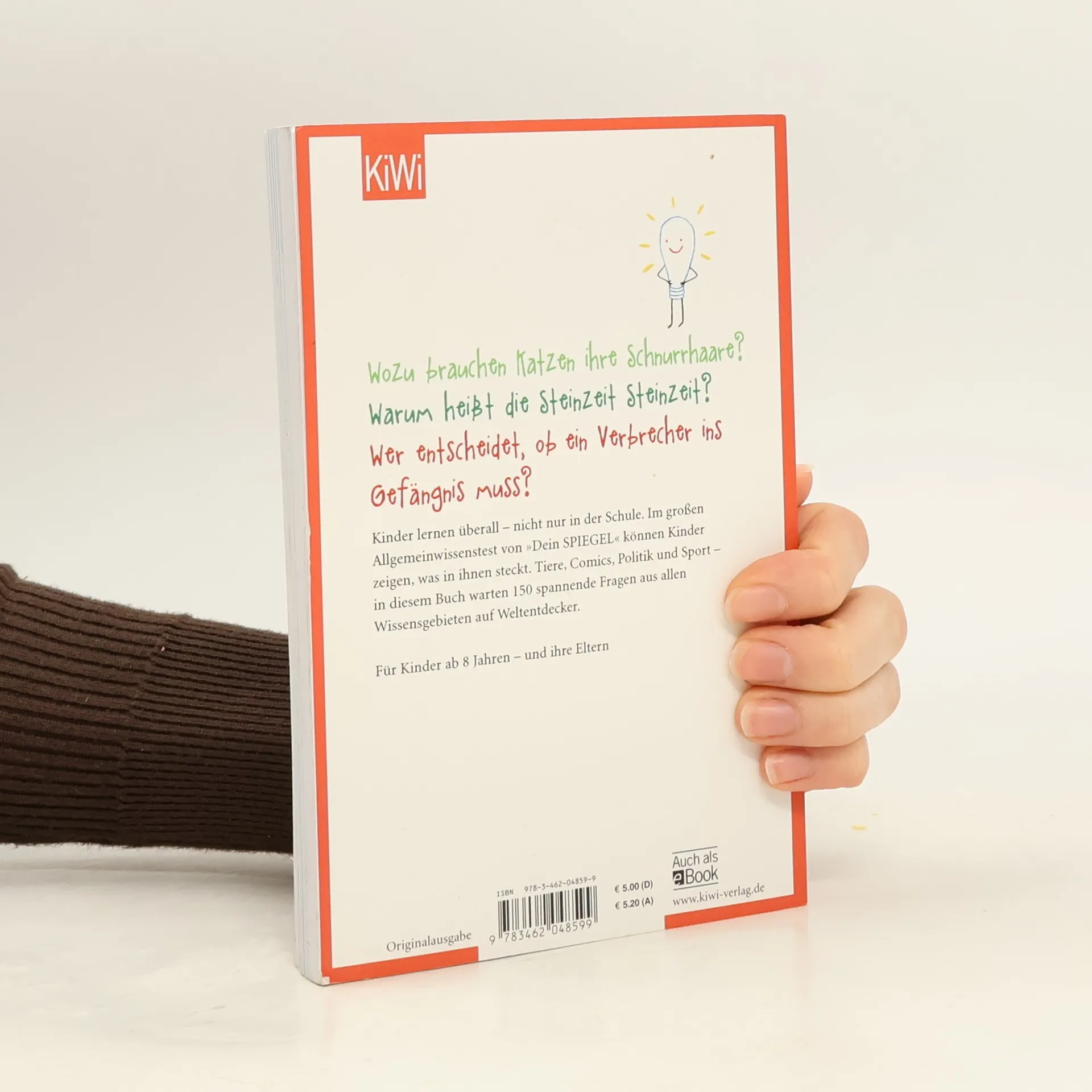 Das Weltwissen der Kinder – der große Wissenstest für Familien Was passiert mit einer Cola-Flasche im Eisfach? Wie wird man mit YouTube-Videos reich? Was tun Muslime im Ramadan? Diese Fragen kommen selten in der Schule vor, aber Kinder wissen oft trotzdem die Antworten – weil sie sich für alles Mögliche interessieren und überall Neues aufschnappen. Der große »Dein SPIEGEL«-Wissenstest für Kinder fragt nach Allgemeinwissen – also nach Dingen, die ein Kind wissen kann, vielleicht sogar wissen sollte, die aber nicht unbedingt im Lehrplan stehen. Ob man gute Noten hat, ist in diesem Test nicht wichtig, ob man sich für die Welt um einen herum interessiert, dagegen schon. 150 Fragen aus allen Wissensgebieten – von Comics über Weltraum bis zu Politik und Sport – warten auf Antworten: Zum Nachdenken, Rätseln, Herleiten, Weiterdenken, Spielen und natürlich, um zu zeigen, was man schon weiß. Hinzu kommen spannende Interviews – u. a. mit der Junioren-Gedächtnisweltmeisterin – und Tipps zum Lernen. Ein großer Wissensspaß für Kinder (ab 8 Jahren) und Eltern!