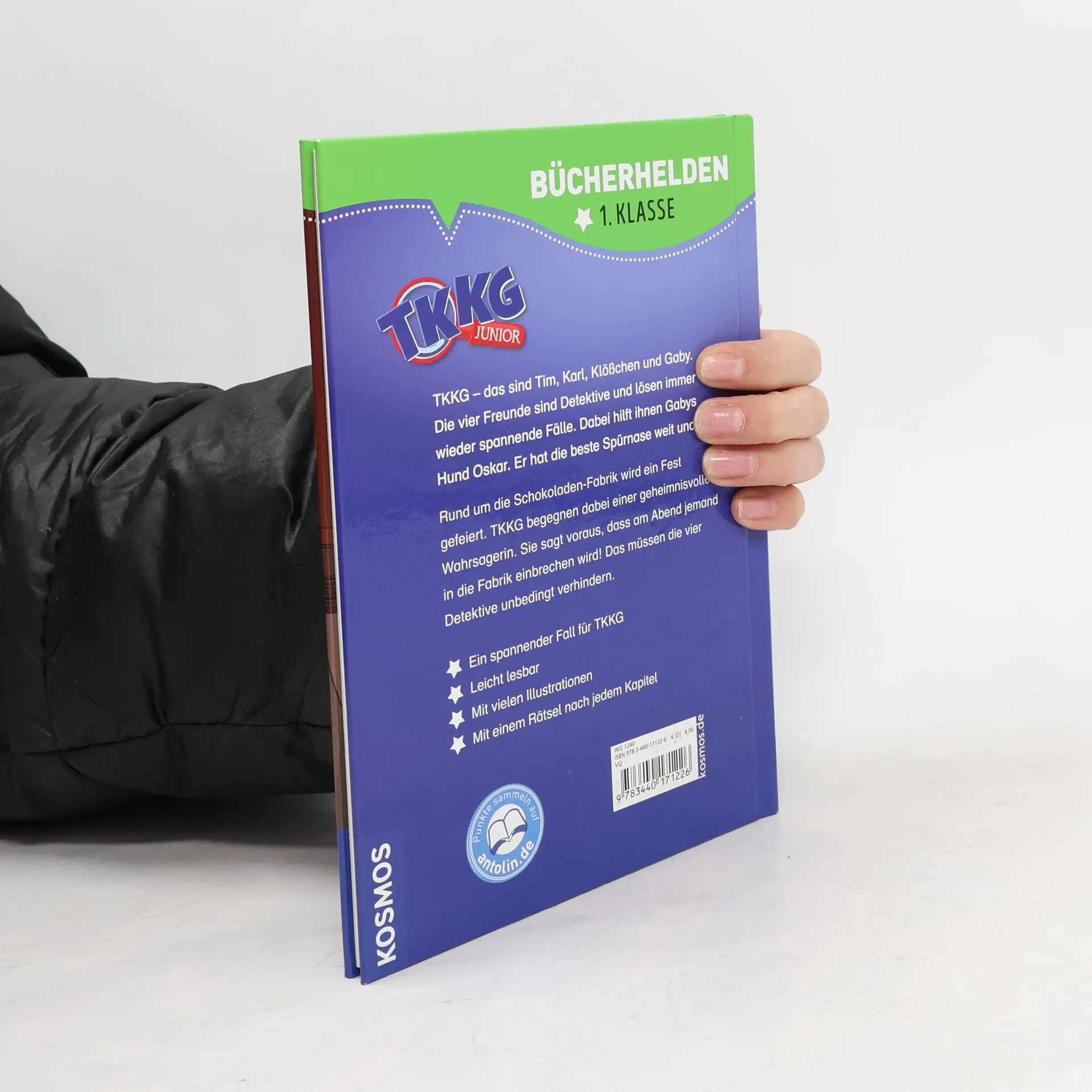 TKKG – das sind Tim, Karl, Klößchen und Gaby. Die vier Freunde lösen mutig jeden Fall und stürzen sich in spannende Abenteuer. Dabei darf Hund Oskar natürlich nicht fehlen. Die Schokoladen-Fabrik feiert ein Fest. Natürlich sind TKKG dabei und haben eine Menge Spaß – bis sie einer geheimnisvollen Wahrsagerin begegnen. Sie sagt voraus, dass am Abend jemand in die Fabrik einbrechen wird! Das müssen die vier Detektive unbedingt verhindern. Lesen lernen ist schwer? Nicht mit dieser spannenden Geschichte, die auch Leseanfänger ab Klassenstufe 1 leicht bewältigen können. Illustrationen und ein Leserätsel am Ende jedes Kapitels machen den Band abwechslungsreich, sorgen für Erfolgserlebnisse und erhöhen die Lese-Motivation. So macht der Einstieg ins selbstständige Bücherlesen einfach Spaß.