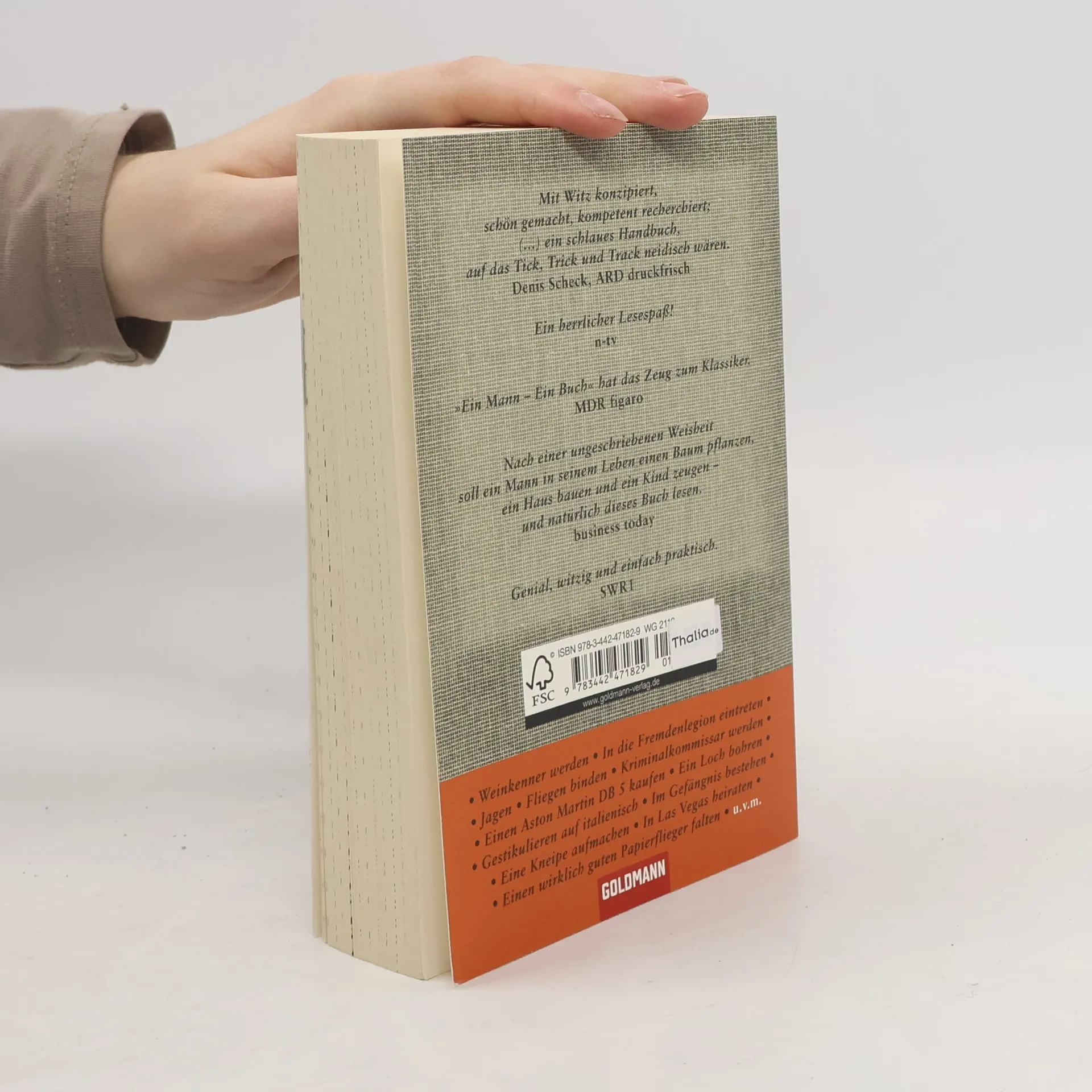 Männer pflegen andere Vorlieben und Interessen als Frauen. Wäre dies ein Buch für Frauen, müsste man einige Kapitel darin streichen, zum Beispiel: Wie man eine Boeing 747 landet, wie man in die Fremdenlegion eintritt, wie man eine Fliege oder eine Krawatte bindet, wie man einen Aston Martin oder immerhin einen guten Anzug kauft, wie man Kriminalkommissar wird, wie man ein Bier zu Hause braut, wie man ein ordentliches Loch bohrt, wie man Papst wird, wie man nach dem Sex wachbleibt oder wie man bei der Geburt eines Kindes dabei ist, obwohl man es nicht selbst zur Welt bringt. Ehrlich gesagt: Wäre dies ein Buch für Frauen, müsste man nicht nur einige, sondern alle Kapitel darin streichen, denn dies ist das Buch für Männer. Für Jäger und Sammler, für feine Geister, für schwere Jungs, für Anpacker und die, die gut zuhören können, für die Stillen und die Bescheidenen, für die Lauten, für die Schüchternen, für Karrieristen, für Hänger, für erstaunlich lässige Typen, für Denker, für Abenteurer und sogar für Herren.