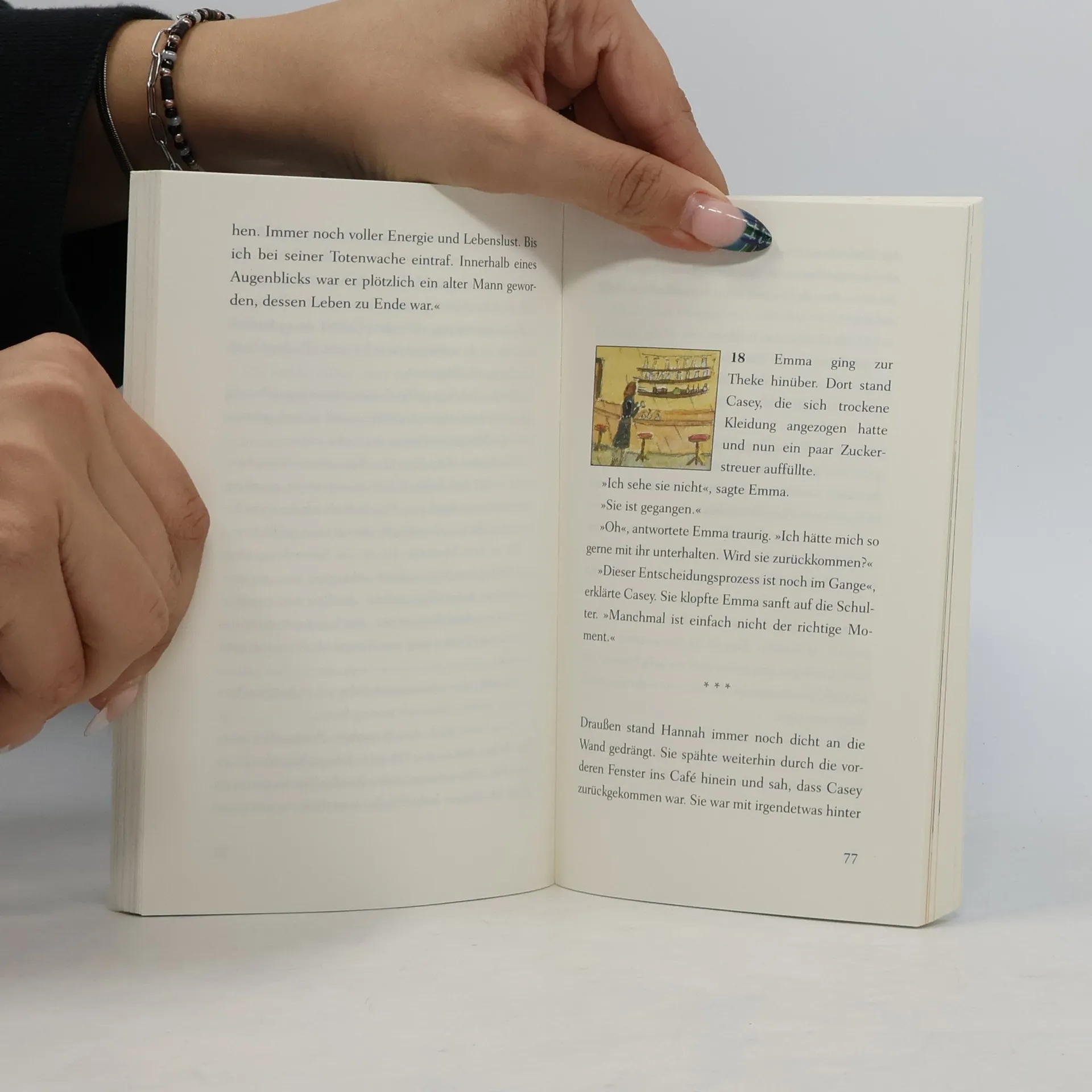 Für alle, die an einem Wendepunkt in ihrem Leben stehen Zehn Jahre sind seit Johns letztem Besuch im Café vergangen und die Unbeschwertheit der Jugend ist längst vorbei. John kämpft mit dem Älterwerden. Auf dem Rückweg von der Beerdigung seines geliebten Patenonkels sucht er vor einem Unwetter Zuflucht in einer Unterführung und begegnet der fünfzehnjährigen Hannah. Gemeinsam entdecken sie aufs Neue das Café am Rande der Welt. Sein erster Besuch dort hat John nachhaltig verändert. Sein großes Lebensziel zu reisen und viel von der Welt zu sehen, hat er verwirklicht. Nun ist er erneut an einem Wendepunkt. Die Zeit verfliegt: Seine Tochter wächst rasend schnell heran, morgen wird sie erwachsen sein. Gleichzeitig nehmen seine eigenen Möglichkeiten ab. John fühlt sich festgefahren, er steckt in der Midlife Crisis. Wer kann ihm in dieser Lebensphase neue Denkanstöße geben? Die Bedienung Casey hat da so eine Idee. Max, ein lebensweiser alter Mann, wird zu seinem Mentor. Er hilft ihm dabei, sich wieder auf den Weg zu machen, um eine Antwort auf die alles entscheidende Frage zu finden: Warum bin ich hier? Eine hinreißende Erzählung über Selbstfindung und Rückbesinnung, stimmungsvoll vierfarbig illustriert von Root Leeb.