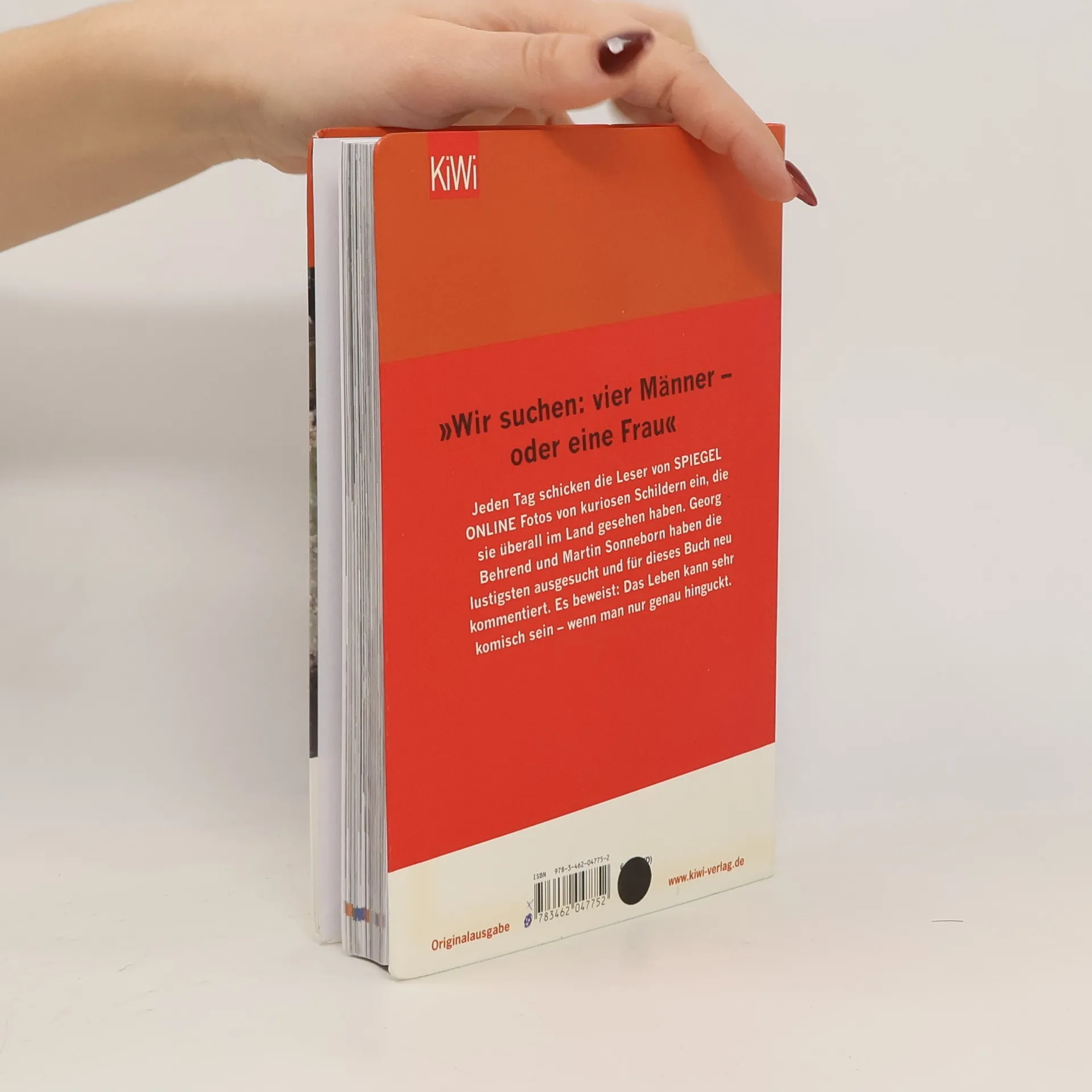 Ein Schild sagt mehr als 1000 Worte Bei SPIEGEL ONLINE gibt es jeden Tag etwas zu lachen. Die Satire-Rubrik SPAM veröffentlicht Fotos von Schildern, die den Irrsinn unserer Zeit zeigen – oder Kurzschlüsse im Kopf. Kioske werben ungeniert mit »Alkoholikerbedarf«, Telekom-Unternehmen melden »Internet – jetzt auch im Ausland«, eine offene Stelle soll so besetzt werden: »Wir suchen: vier Männer oder eine Frau«! Hunderttausende Leser lesen, kommentieren und schicken die Fotos an Freunde und Kollegen weiter – und senden selbst neue ein! Martin Sonneborn und Georg Behrend haben die Allerbesten ausgesucht und stellen sie in diesem Buch vor. Es beweist: Die besten Bilderwitze sind Schilderwitze.