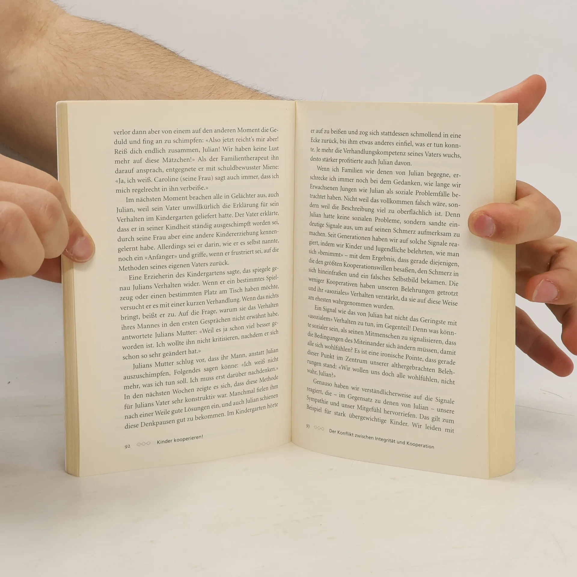 Auf der Suche nach neuen Werten für die Kindererziehung und eine moderne Familie ist eines deutlich geworden: Kinder haben von Anfang an eine eigene Persönlichkeit und sind damit menschlich und sozial kompetente Partner ihrer Eltern. Diese Kompetenz, die sich entsprechend der kindlichen Reife äußert, muss Kindern nicht erst durch Erziehung beigebracht werden. Sie müssen beobachten und experimentieren dürfen, dann fügen sie sich durch Nachahmung in die Kultur ein. So kooperieren Kinder, und Erwachsene müssen lernen, auch störendes Verhalten in Botschaften zu übersetzen. Denn Erziehung ist ein Entwicklungsprozess – für die Eltern ebenso wie für die Kinder.