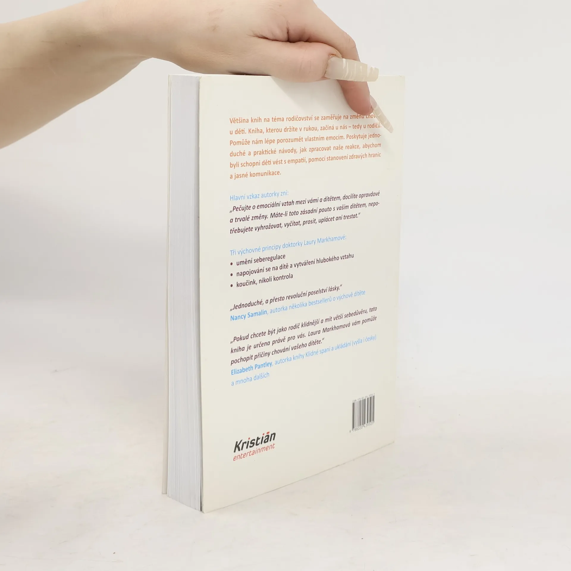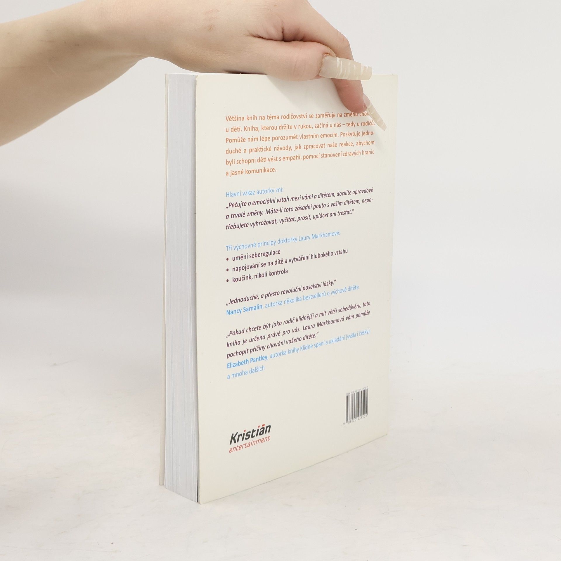 Většina knih na téma rodičovství se zaměřuje na změnu chování u dětí. Kniha, kterou držíte v rukou, začíná u nás – tedy u rodičů. Pomůže nám lépe porozumět vlastním emocím. Poskytuje jednoduché a praktické návody, jak zpracovat naše reakce, abychom byli schopni děti vést s empatií, pomocí stanovení zdravých hranic a jasné komunikace. Hlavní vzkaz autorky zní: „Pečujte o emociální vztah mezi vámi a dítětem, docílíte opravdové a trvalé změny. Máte-li toto zásadní pouto s vaším dítětem, nepotřebujete vyhrožovat, vyčítat, prosit, uplácet ani trestat.“ Tři principy doktorky Laury Markhamové: • umění seberegulace • napojování se na dítě a vytváření hlubokého vztahu • koučink, nikoli kontrola