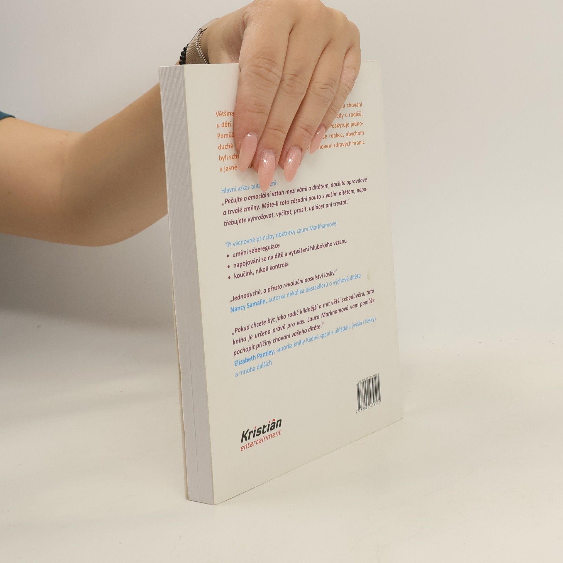 Většina knih na téma rodičovství se zaměřuje na změnu chování u dětí. Kniha, kterou držíte v rukou, začíná u nás – tedy u rodičů. Pomůže nám lépe porozumět vlastním emocím. Poskytuje jednoduché a praktické návody, jak zpracovat naše reakce, abychom byli schopni děti vést s empatií, pomocí stanovení zdravých hranic a jasné komunikace. Hlavní vzkaz autorky zní: „Pečujte o emociální vztah mezi vámi a dítětem, docílíte opravdové a trvalé změny. Máte-li toto zásadní pouto s vaším dítětem, nepotřebujete vyhrožovat, vyčítat, prosit, uplácet ani trestat.“ Tři principy doktorky Laury Markhamové: • umění seberegulace • napojování se na dítě a vytváření hlubokého vztahu • koučink, nikoli kontrola