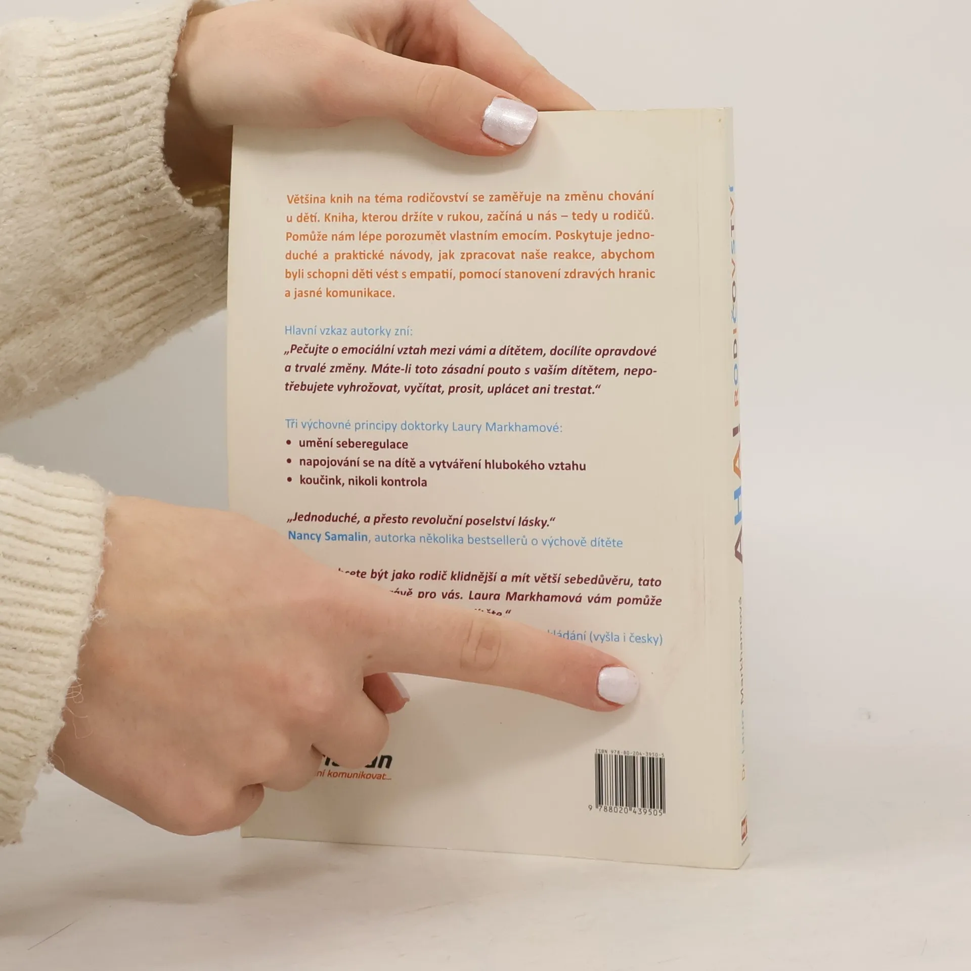Většina knih na téma rodičovství se zaměřuje na změnu chování u dětí. Kniha, kterou držíte v rukou, začíná u nás – tedy u rodičů. Pomůže nám lépe porozumět vlastním emocím. Poskytuje jednoduché a praktické návody, jak zpracovat naše reakce, abychom byli schopni děti vést s empatií, pomocí stanovení zdravých hranic a jasné komunikace. Hlavní vzkaz autorky zní: „Pečujte o emociální vztah mezi vámi a dítětem, docílíte opravdové a trvalé změny. Máte-li toto zásadní pouto s vaším dítětem, nepotřebujete vyhrožovat, vyčítat, prosit, uplácet ani trestat.“ Tři principy doktorky Laury Markhamové: • umění seberegulace • napojování se na dítě a vytváření hlubokého vztahu • koučink, nikoli kontrola